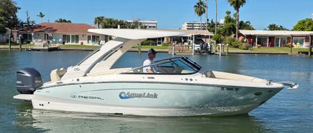 The Regal LX4 is a 24-foot outboard-powered bowrider. This 2022 is Powered by a Yamaha F250XB or V6 4.2L 250 outboard engine with under 70 hours, delivering a smooth acceleration, high speeds, and responsive handling