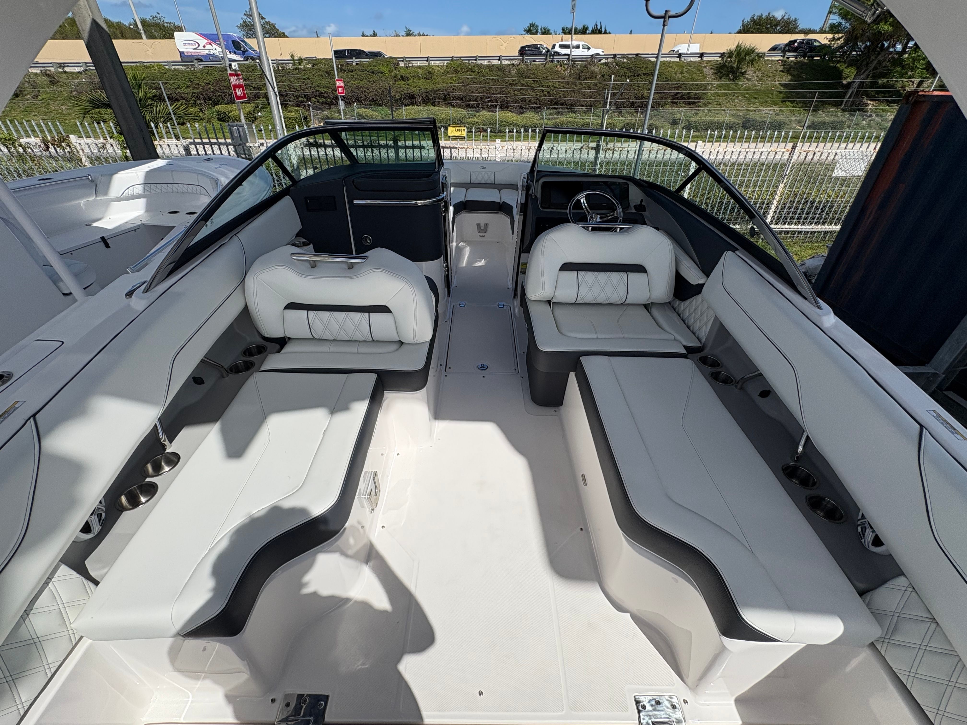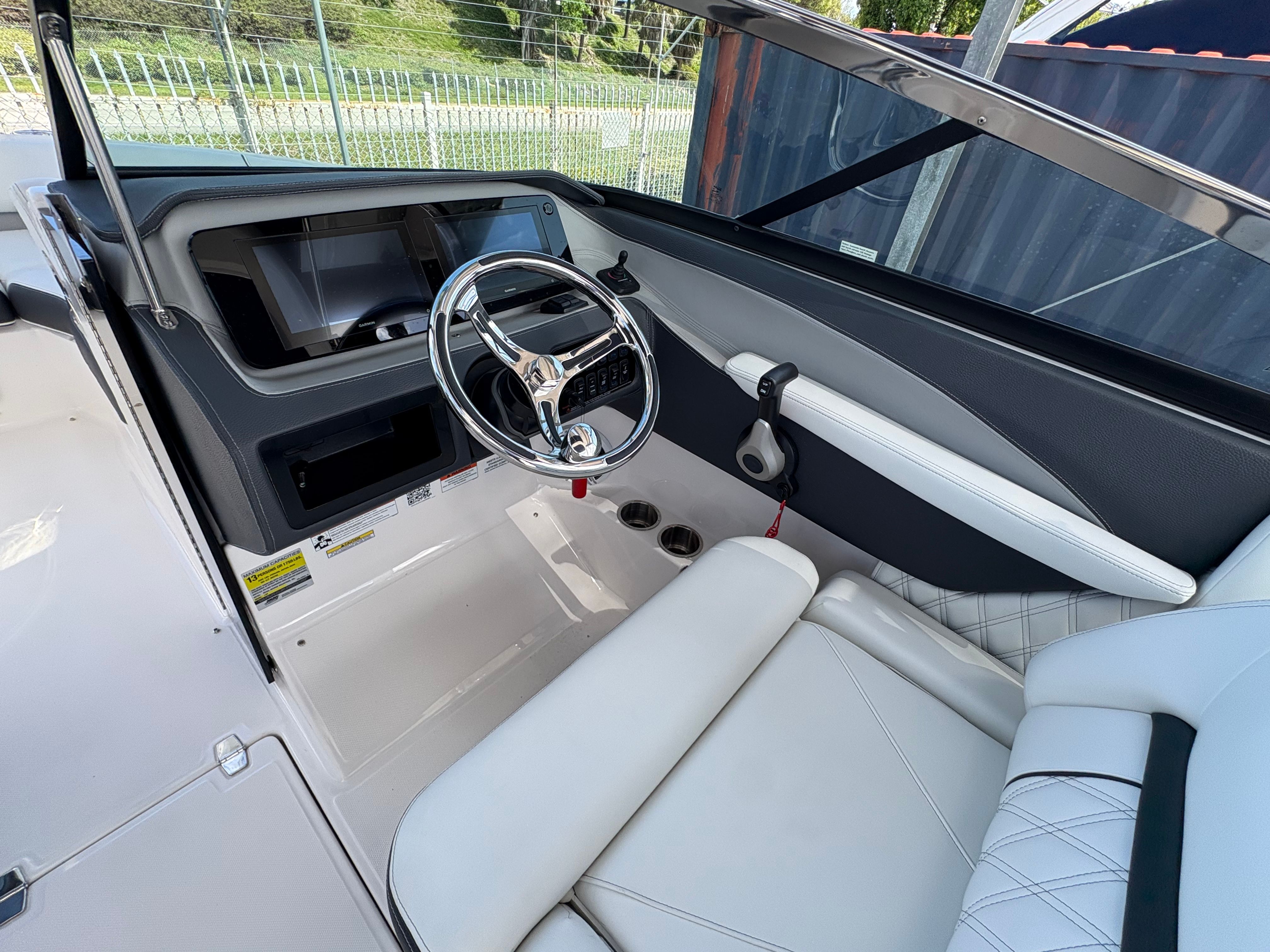 The Regal LX4 Bowrider is packed with special features that enhance both convenience and enjoyment. The Bow Sunshade System – Manual offers flexible protection from the sun, allowing you to relax in comfort during those hot summer days. Bow & Cockpit Covers keep your boat protected when not in use, preserving its pristine condition and making maintenance a breeze. The Mediterranean Blue canvas adds a touch of elegance, while the Cockpit Seagrass Mat provides a soft, stylish surface underfoot.For added peace of mind, the Dual Battery Switch with Tray and Cables ensures reliable power management, and the Battery Charger keeps your systems ready for action. Maneuvering in tight spaces is effortless thanks to the Bow Thruster, making docking and navigating marinas stress-free. The Transom Shower & Pressure Water Package offers convenient rinsing after swimming or watersports, and the trim tabs allow for precise control over your boat’s attitude and stability.