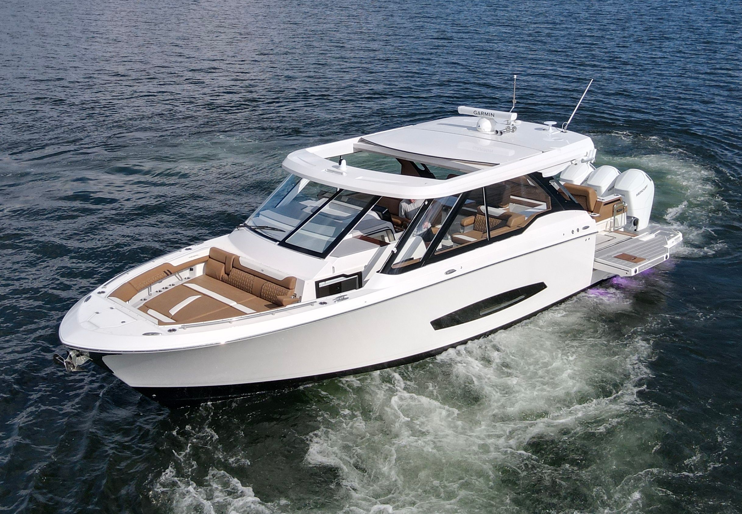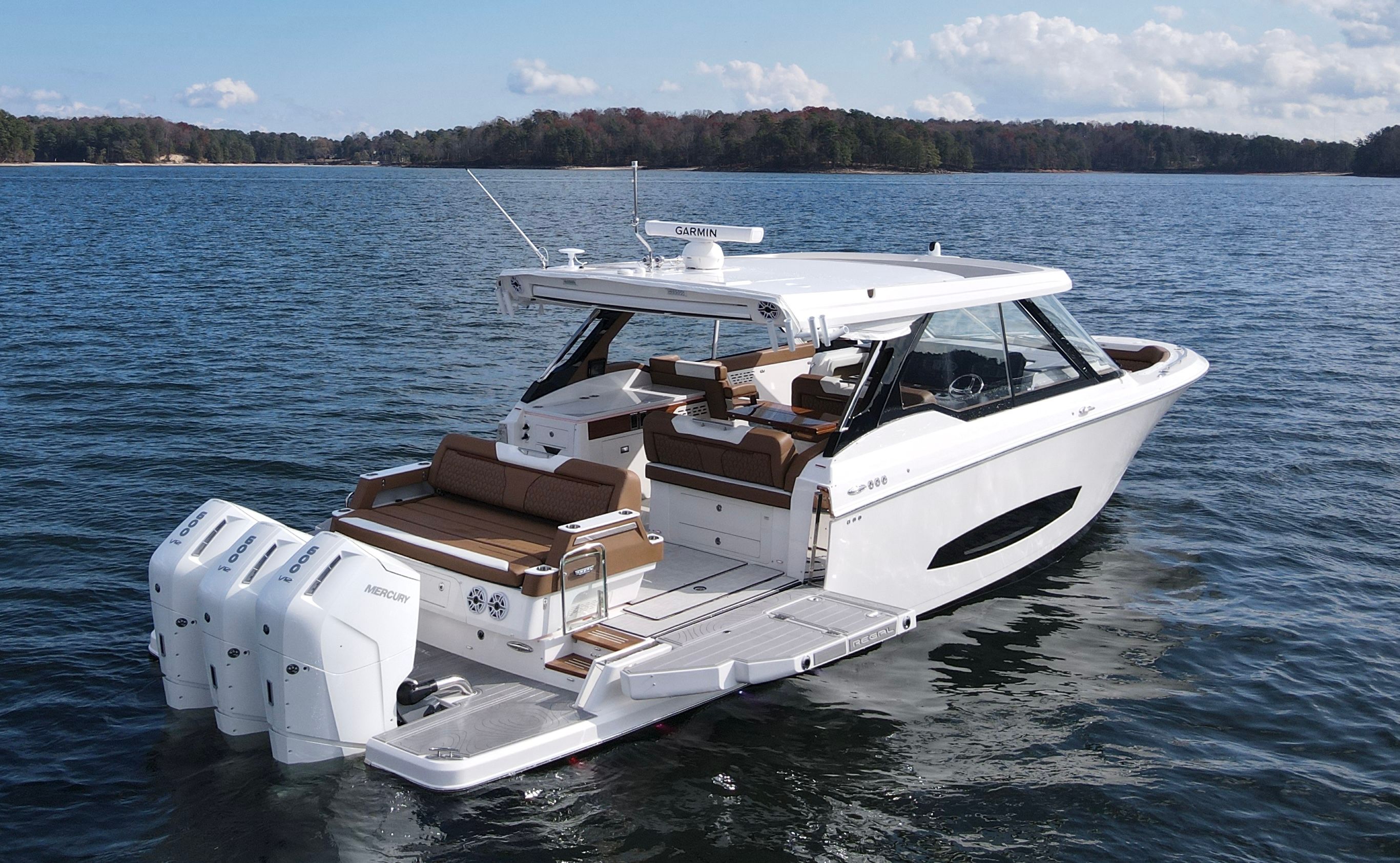 Owning the Regal LX43 means embracing a lifestyle of comfort, luxury, and endless fun on the water. The spacious layout is perfect for hosting family and friends, providing plenty of room for socializing, dining, and sunbathing. The yacht’s meticulously crafted seating areas, finished in premium Saddle Brown and Pure White materials, create a relaxing environment where you can unwind and enjoy the scenery. The advanced triple-engine configuration not only delivers impressive speed but also ensures a smooth and stable ride, making every journey enjoyable and stress-free. With its striking design and high-end finishes, the LX43 is a true statement piece that reflects your passion for boating and your appreciation for quality craftsmanship.
