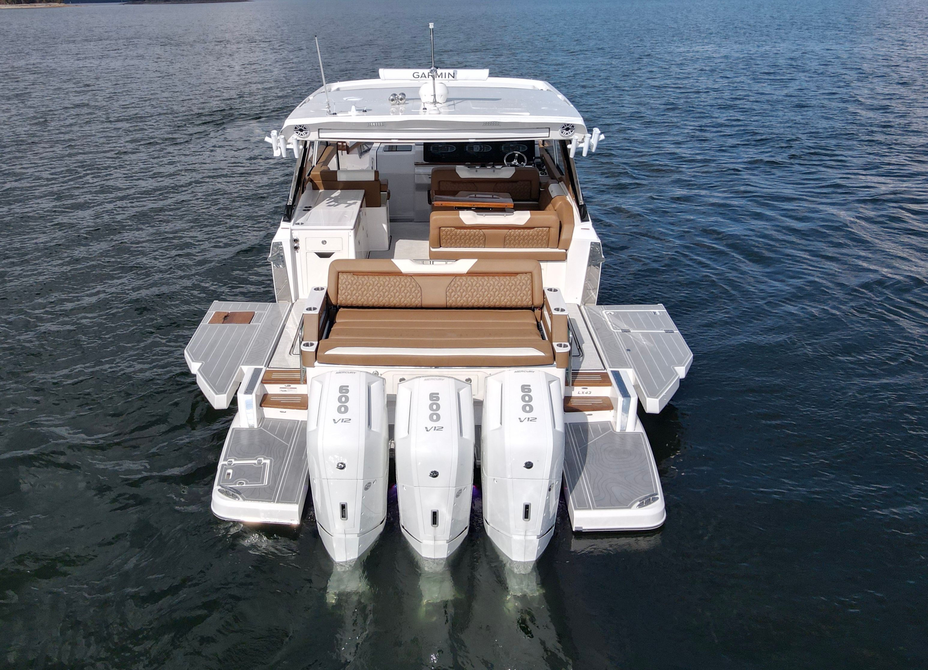 Powering the Regal LX43 are three robust Mercury 600 Verado engines, delivering a combined 1800 horsepower. This triple-engine setup ensures exhilarating acceleration, smooth cruising, and exceptional handling in a variety of conditions. Whether you’re navigating coastal waters or embarking on longer journeys, the LX43’s advanced propulsion system provides the reliability and power needed for a truly thrilling ride. The Mercury 600 Verado engines are renowned for their efficiency and quiet operation, allowing you to enjoy the serenity of the water without sacrificing performance.
