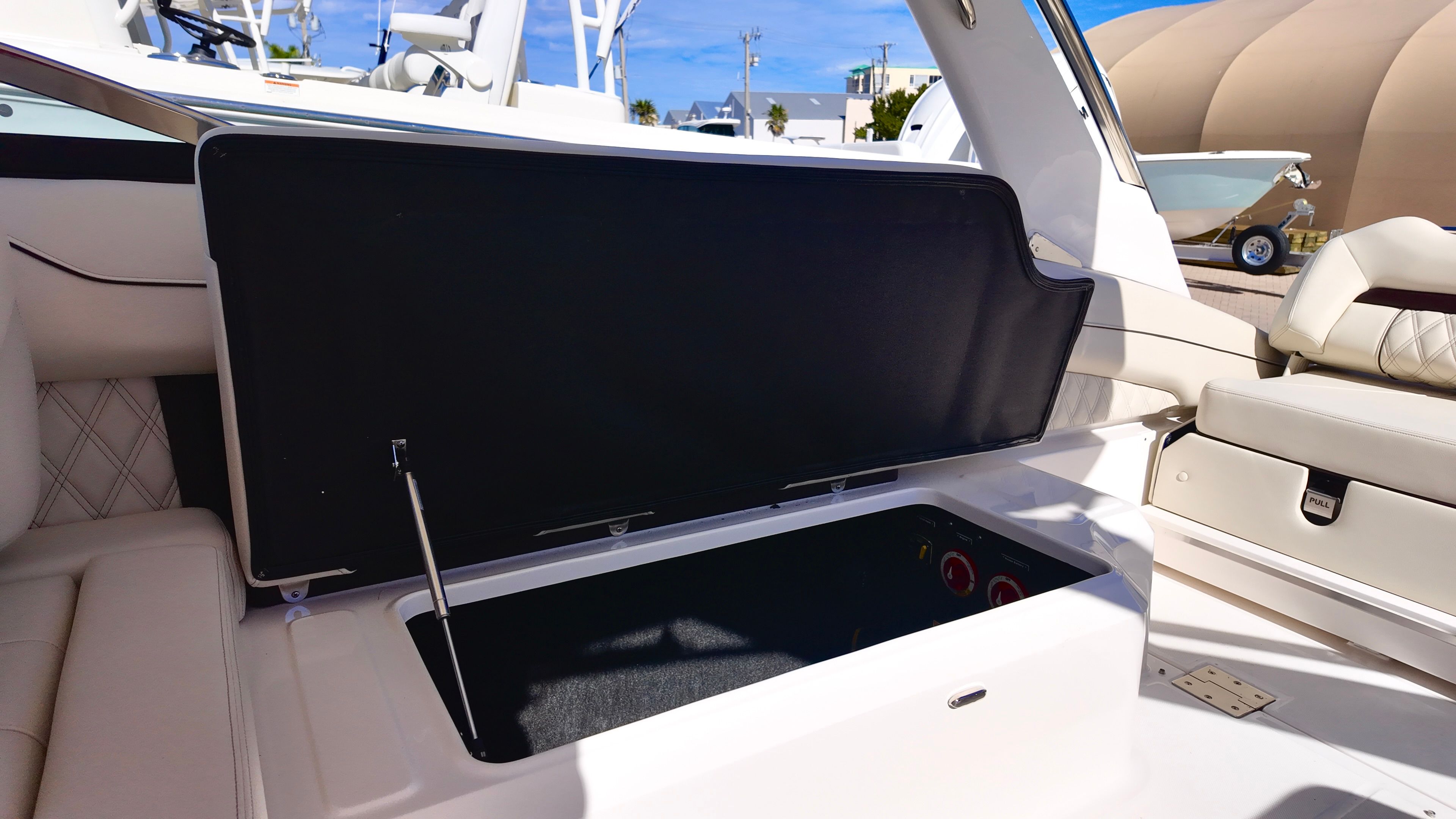 Practicality meets luxury in the Regal LX6 Bowrider. The fender clips simplify docking, allowing you to secure your boat quickly and efficiently. The trim tabs offer precise control over the boat’s performance, ensuring a smooth and comfortable ride regardless of water conditions. Storage solutions are thoughtfully integrated throughout the vessel, providing ample space for gear, water toys, and personal items without compromising on style or comfort.The Yamaha F350XSA2 engine’s fuel efficiency means you can spend more time enjoying the water and less time refueling. The dual Garmin displays and B60 transducer make navigation and fish finding effortless, whether you’re exploring new waterways or returning to your favorite fishing spot. The Regal LX6 Bowrider is designed to make ownership easy, enjoyable, and stress-free.