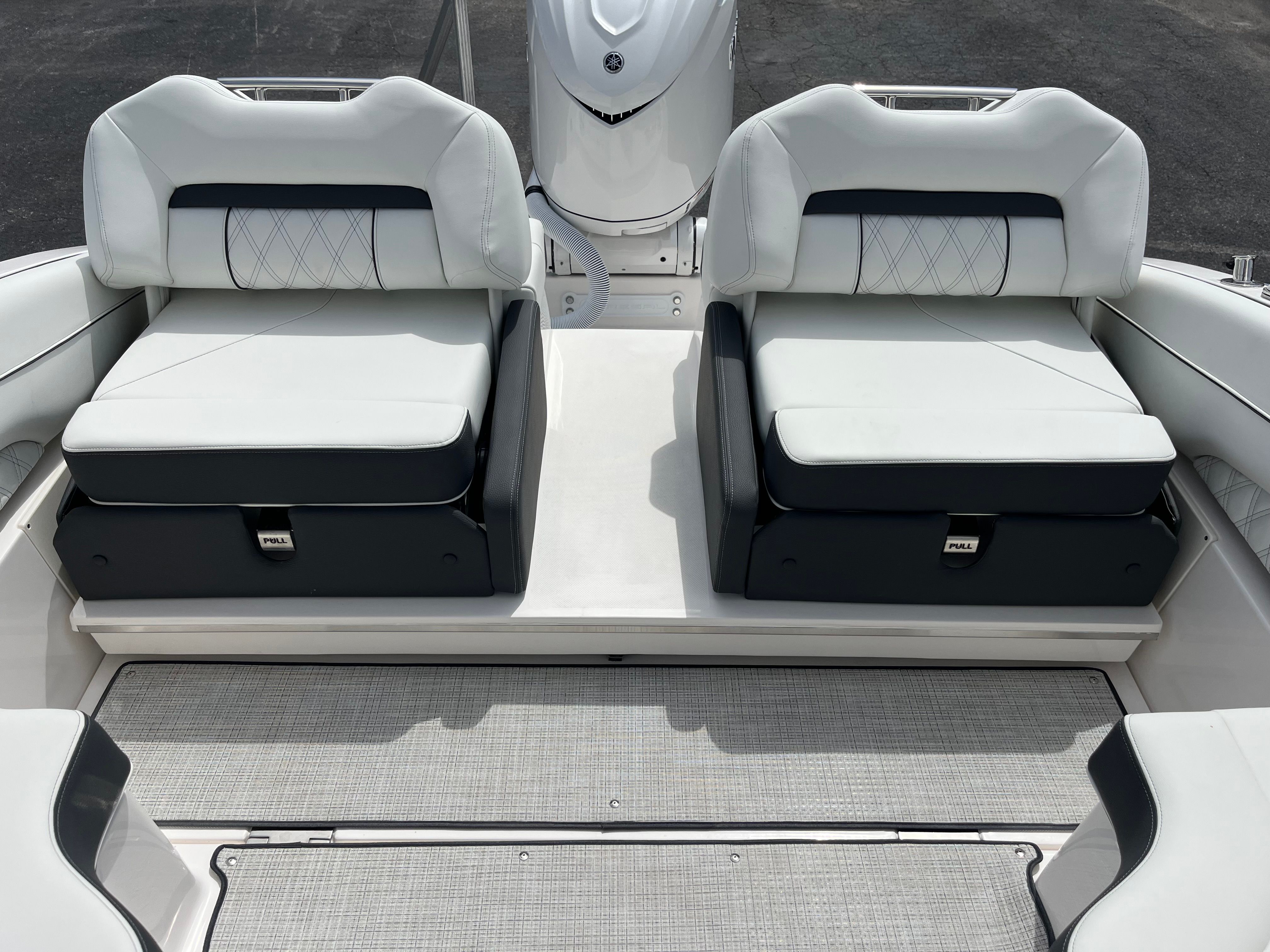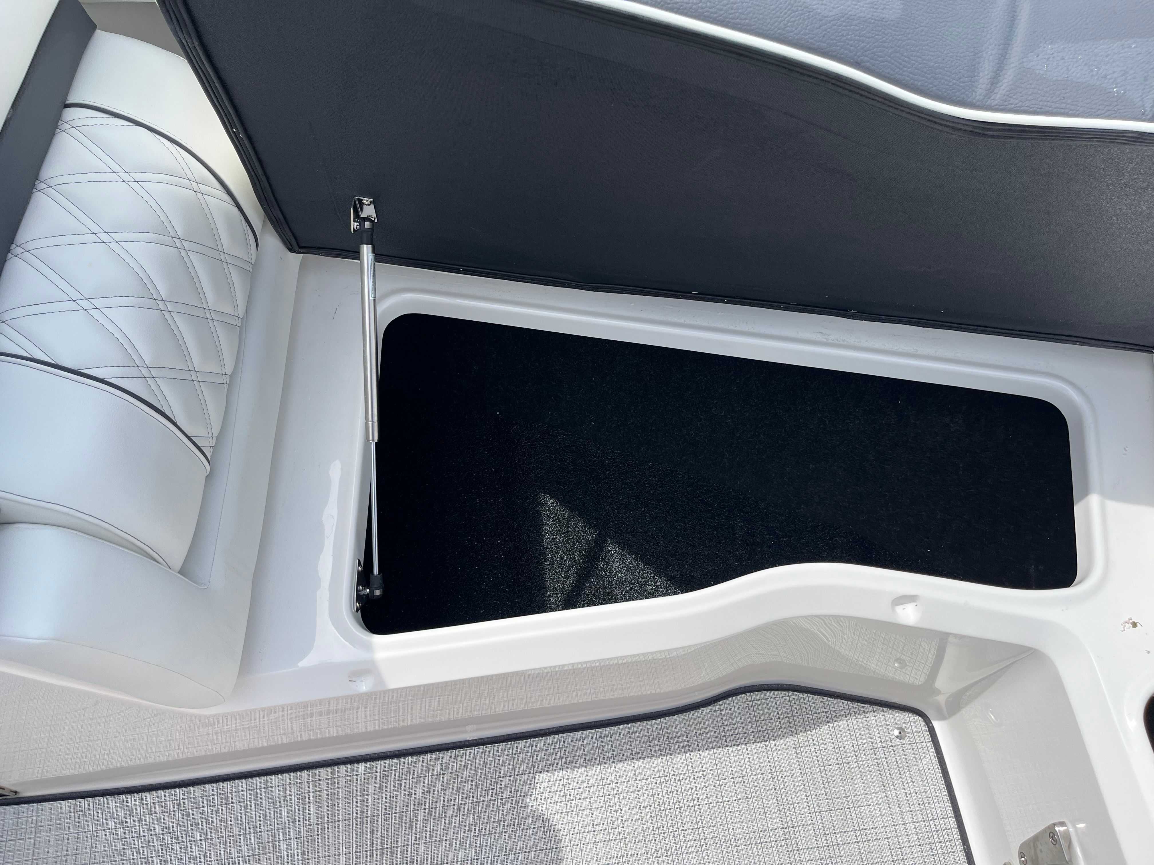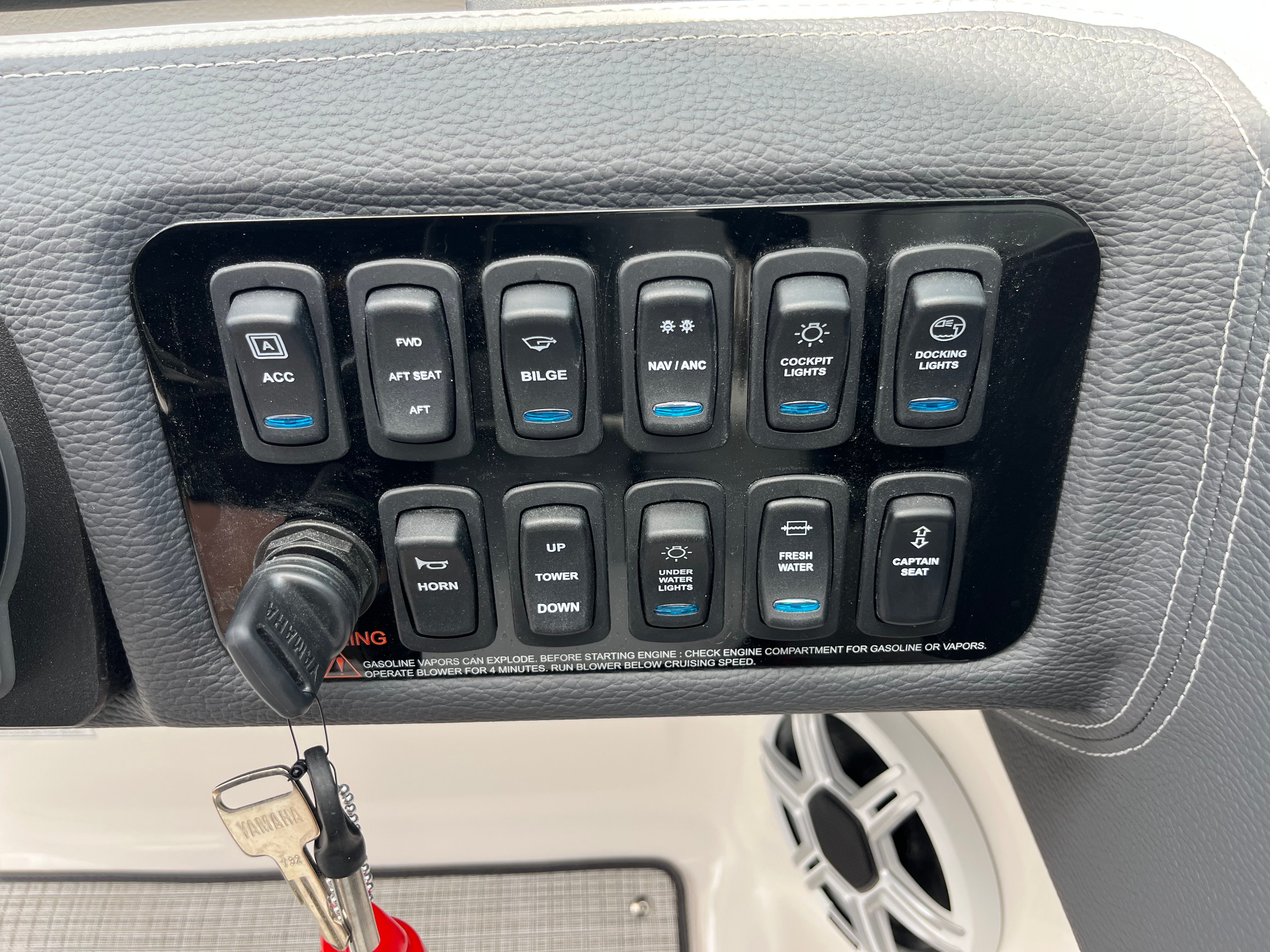 Practicality is at the core of the Regal LX6’s design. The dual battery system and charger ensure that you have dependable power for extended outings, while the bow thruster simplifies docking, even in challenging conditions. The trim tabs allow you to adjust the boat’s attitude for a smoother ride, improving fuel efficiency and comfort. The bow and cockpit covers protect your investment from sun and weather, reducing maintenance and preserving the boat’s appearance.The transom shower and pressure water package add a touch of luxury, making it easy to rinse off after swimming or clean up before heading home. The cockpit seagrass mat is not only stylish but also easy to clean, ensuring your boat stays looking its best with minimal effort. Every feature is designed to make ownership enjoyable and hassle-free, so you can spend more time on the water and less time worrying about upkeep.