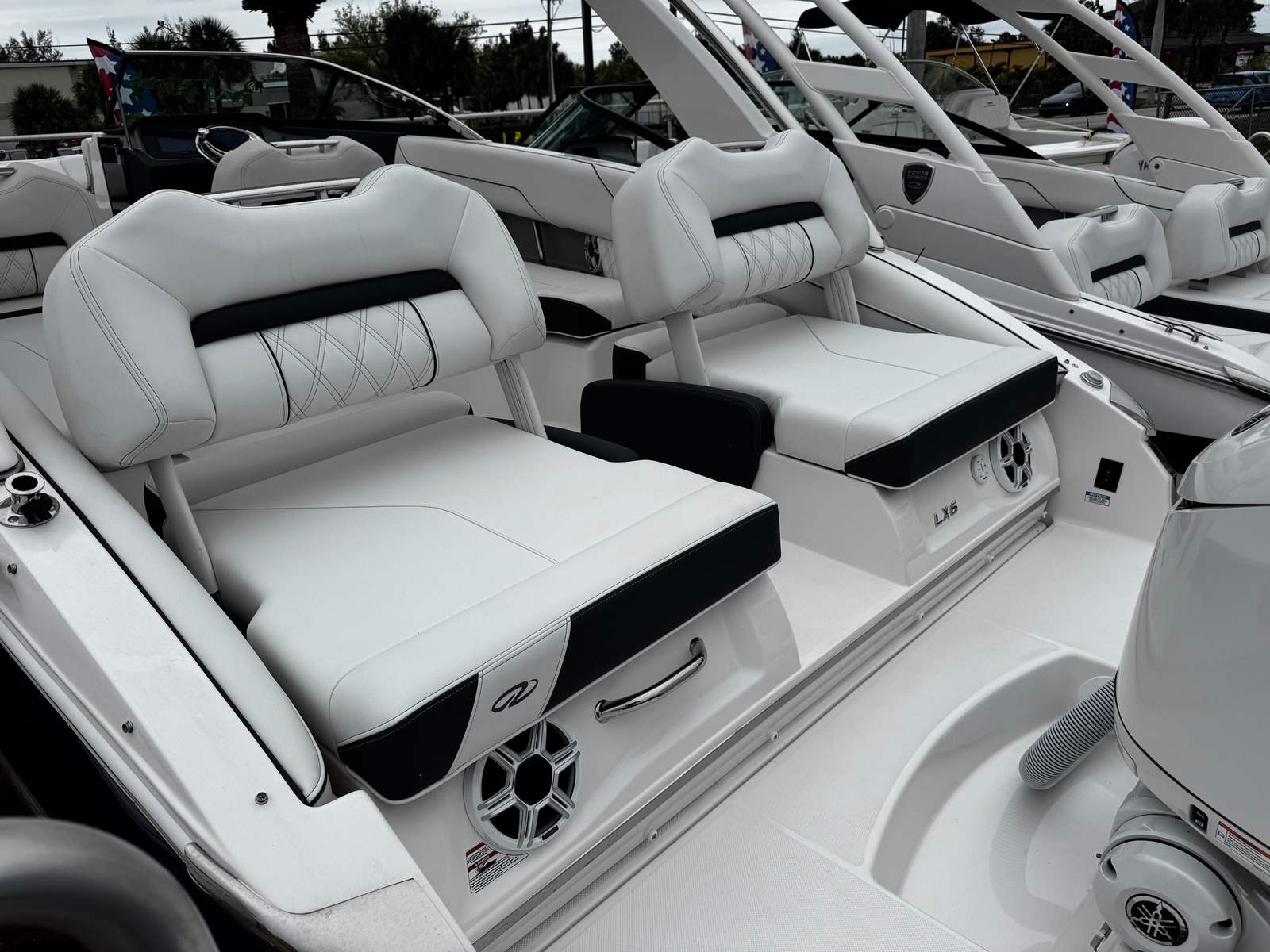 Owning the Regal LX6 Bowrider means embracing a lifestyle filled with excitement, relaxation, and social connection. The spacious layout is perfect for hosting family and friends, with plenty of room to stretch out, sunbathe, or engage in lively conversation. The ergonomic seating and thoughtfully designed cockpit make every journey comfortable, whether you’re cruising at sunset or anchoring for a swim.The LX6’s vibrant color scheme and premium finishes create an inviting atmosphere that enhances every moment on board. The teak cockpit table is ideal for sharing meals, playing games, or enjoying drinks, while the transom shower adds convenience after a dip in the water. The advanced battery system and bow thruster simplify operation, making this Regal boat for sale a joy to own and operate.