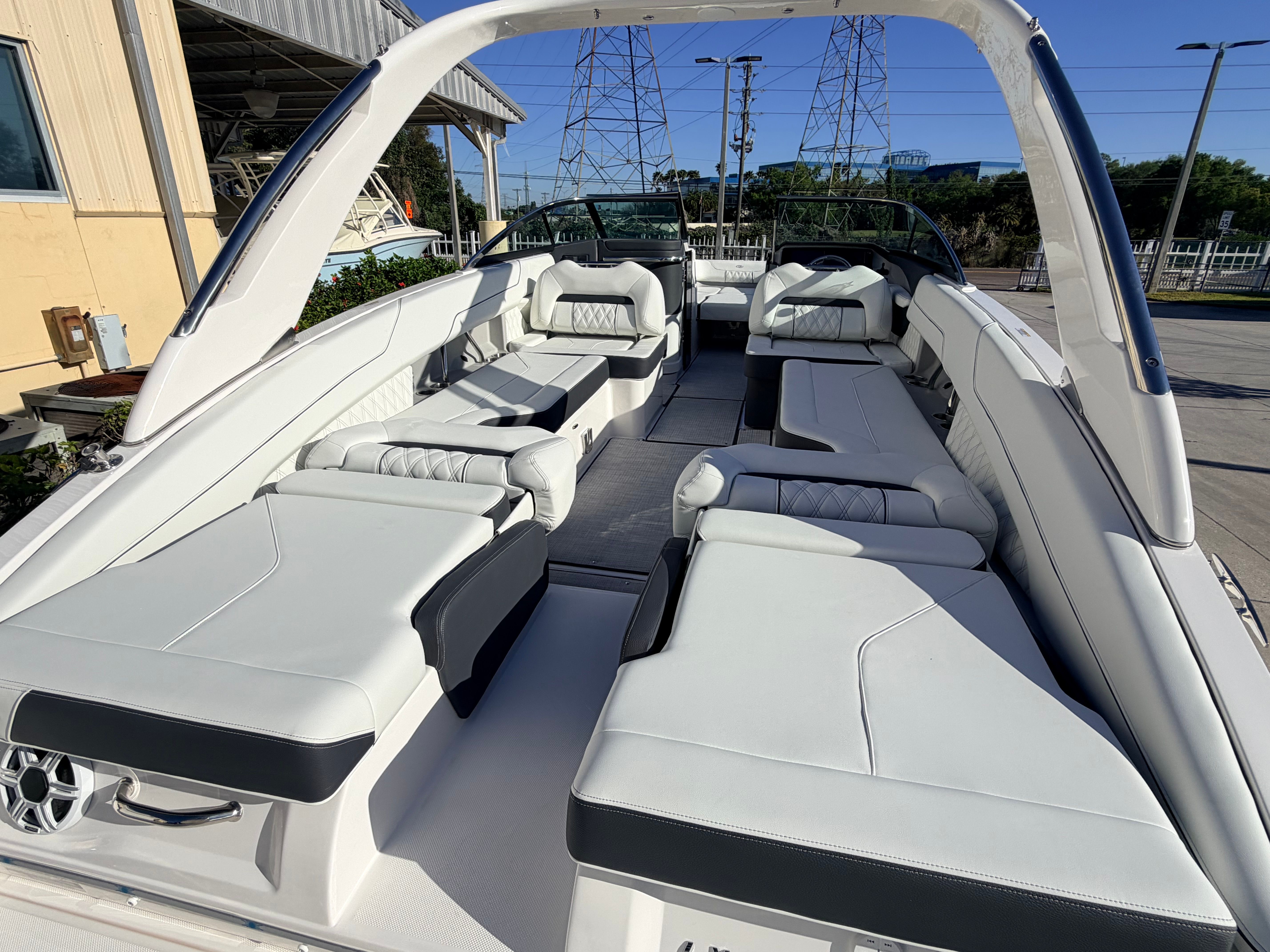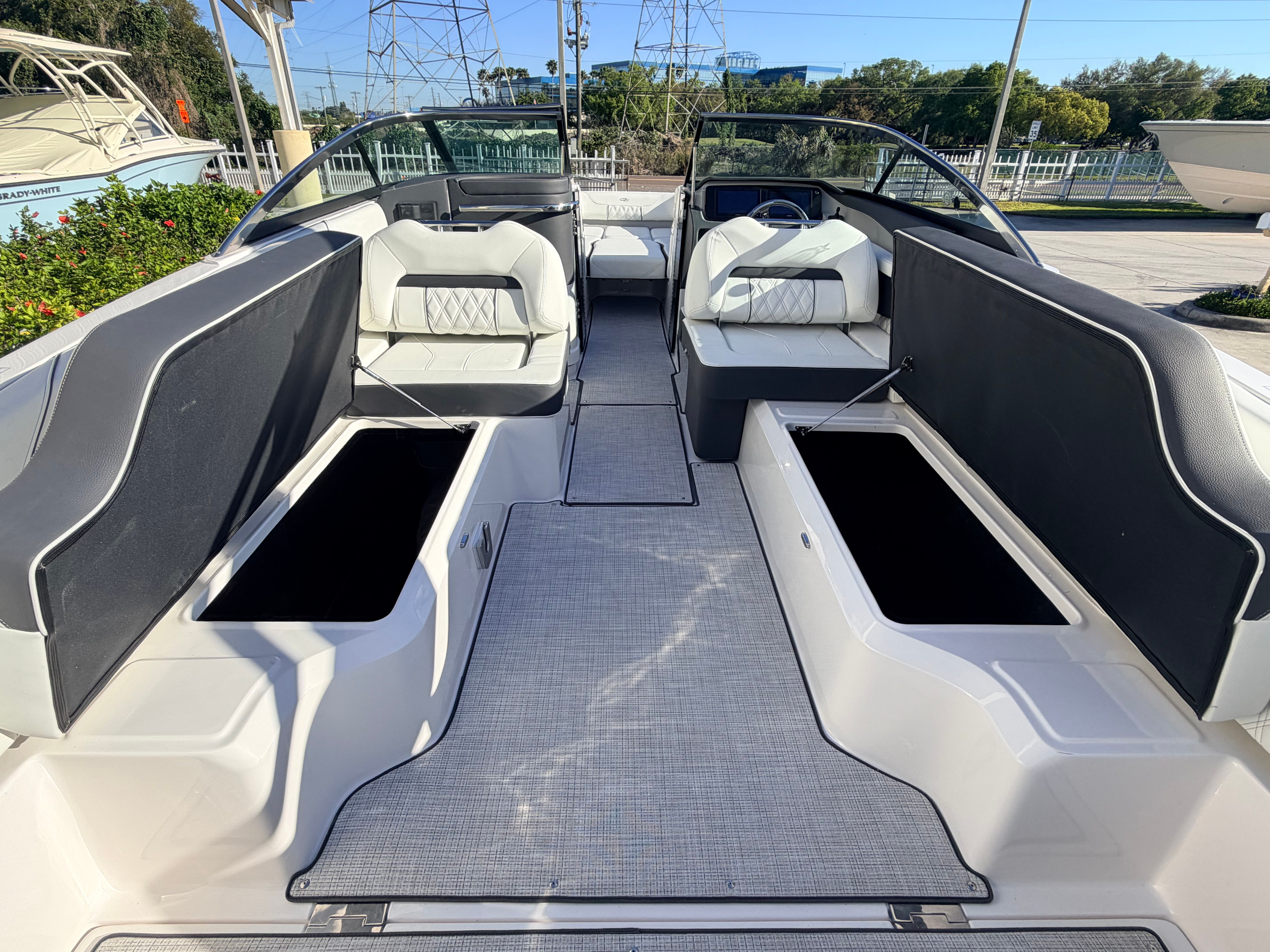 The Regal LX6 is as practical as it is beautiful. The dual battery system and charger mean you’ll always have reliable power, whether you’re running the stereo, navigation lights, or other electronics. The bow thruster makes docking a breeze, reducing stress and making it easy to handle the boat solo or with a small crew.The cockpit seagrass mat not only adds comfort but also makes cleaning up after a day on the water quick and simple. The bow and cockpit covers help protect your investment, reducing maintenance and ensuring your boat stays in top condition. With its manageable length of 26.25 feet, the LX6 is easy to trailer, store, and dock, making it a practical choice for both new and experienced boaters.