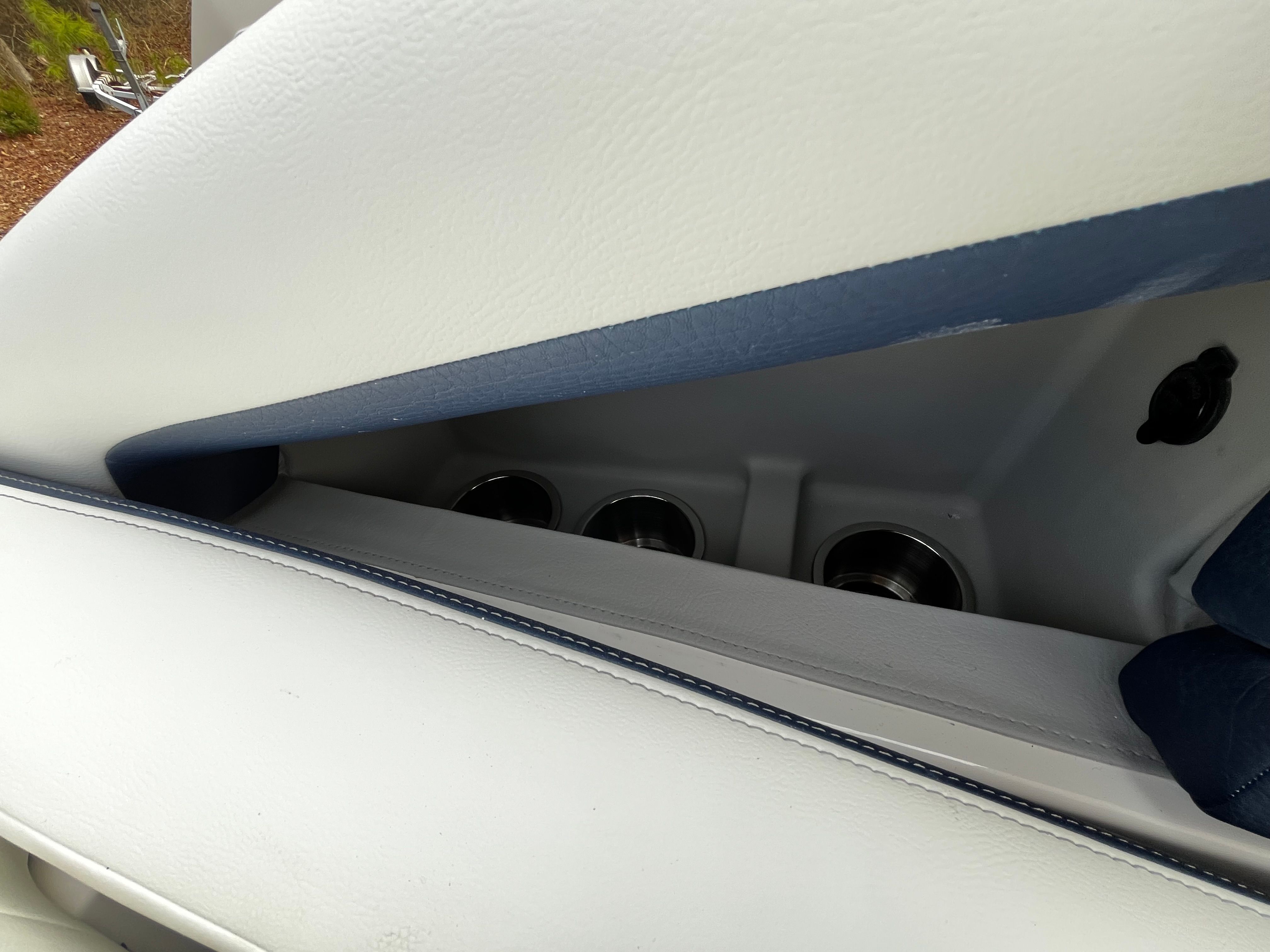 Interior – Pure White with Mediterranean Blue Accents: Premium Chil upholstery offers both comfort and cooling touch technology.