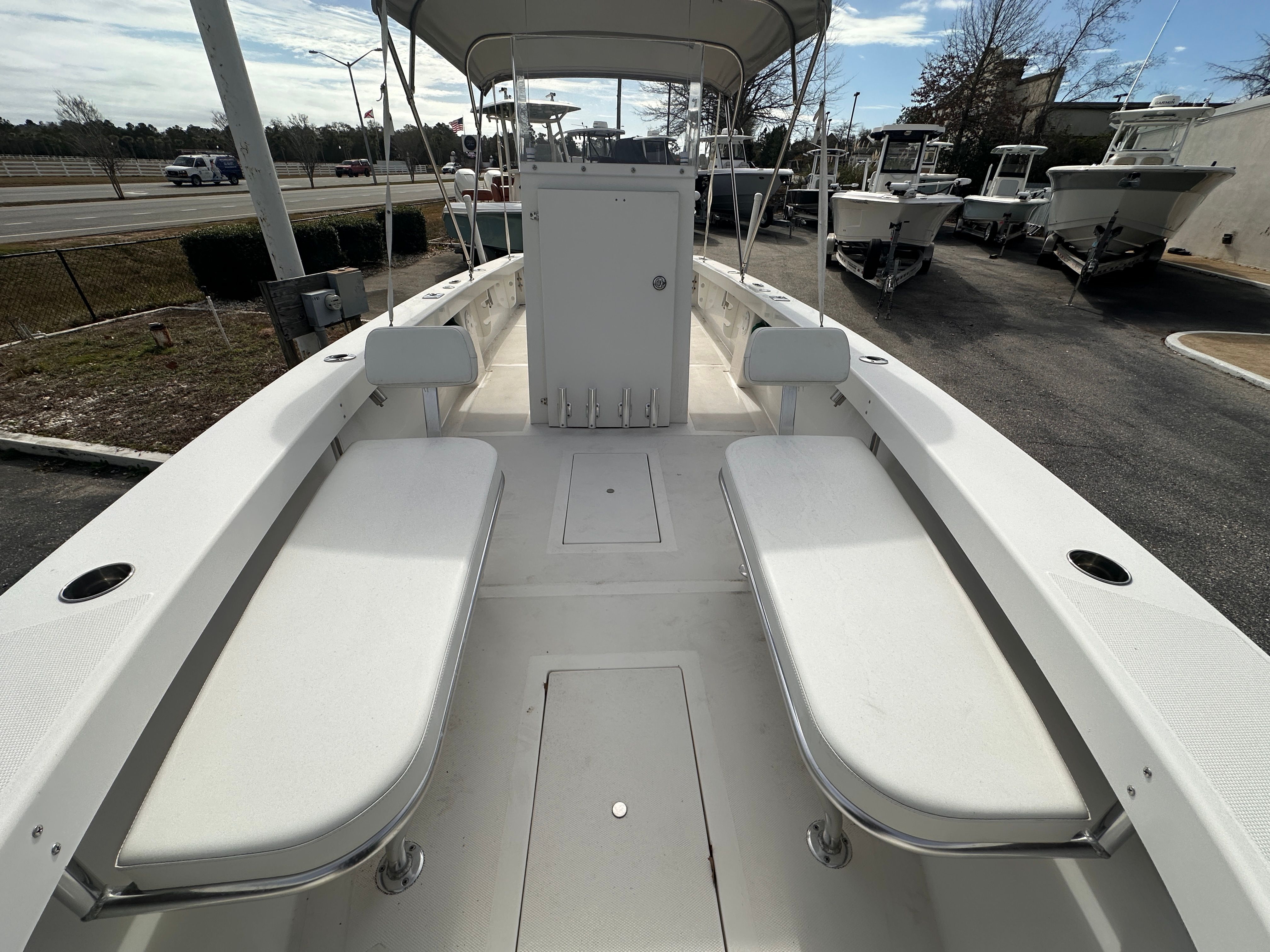 The Rhino Rambo 27 CC is designed with practicality in mind, offering features that make ownership easy and enjoyable. The spacious deck provides plenty of room for storing fishing gear, coolers, and other essentials, while the intuitive layout ensures that everything is within easy reach. The boat’s manageable size makes docking and trailering a breeze, allowing you to explore new waterways with confidence.Fuel efficiency is another key benefit of the Rambo 27 CC, thanks to its single 300 horsepower engine. This allows you to spend more time on the water and less time at the fuel dock, making it a cost-effective choice for avid boaters. The durable construction and low-maintenance design also mean that you can spend more time enjoying your boat and less time on upkeep.