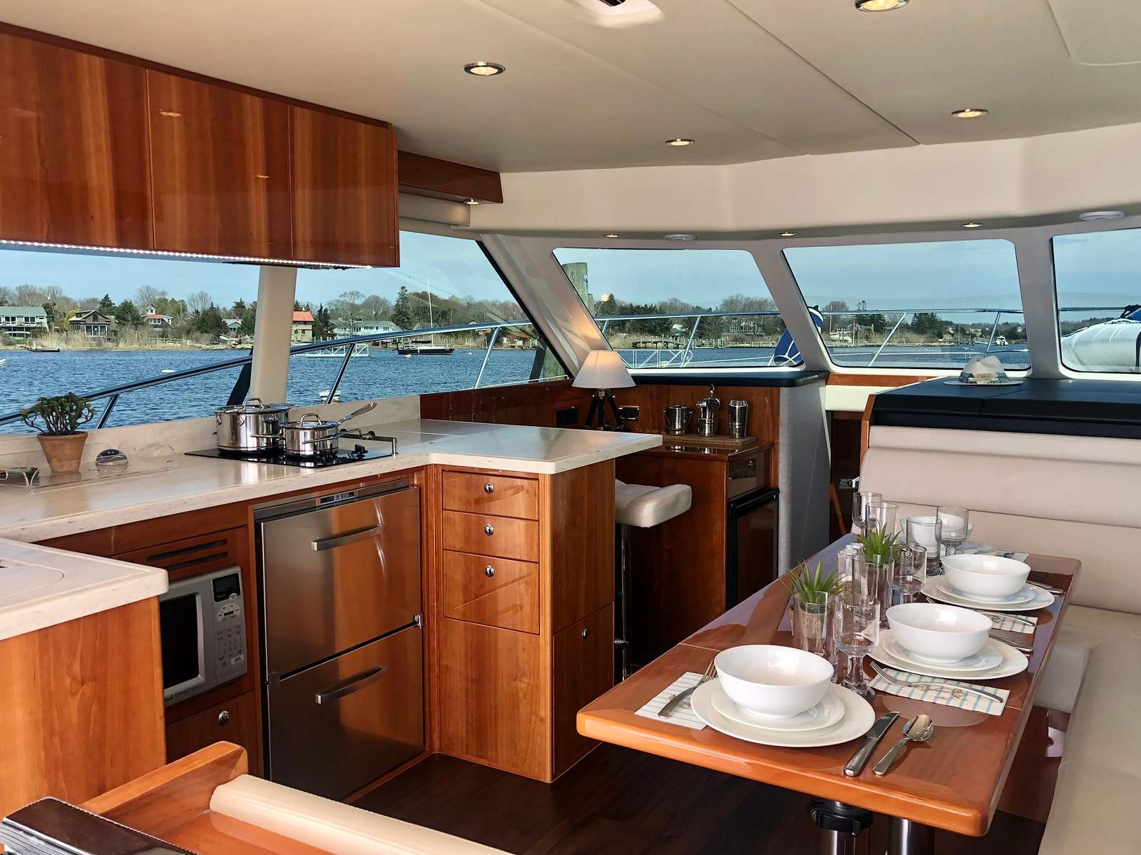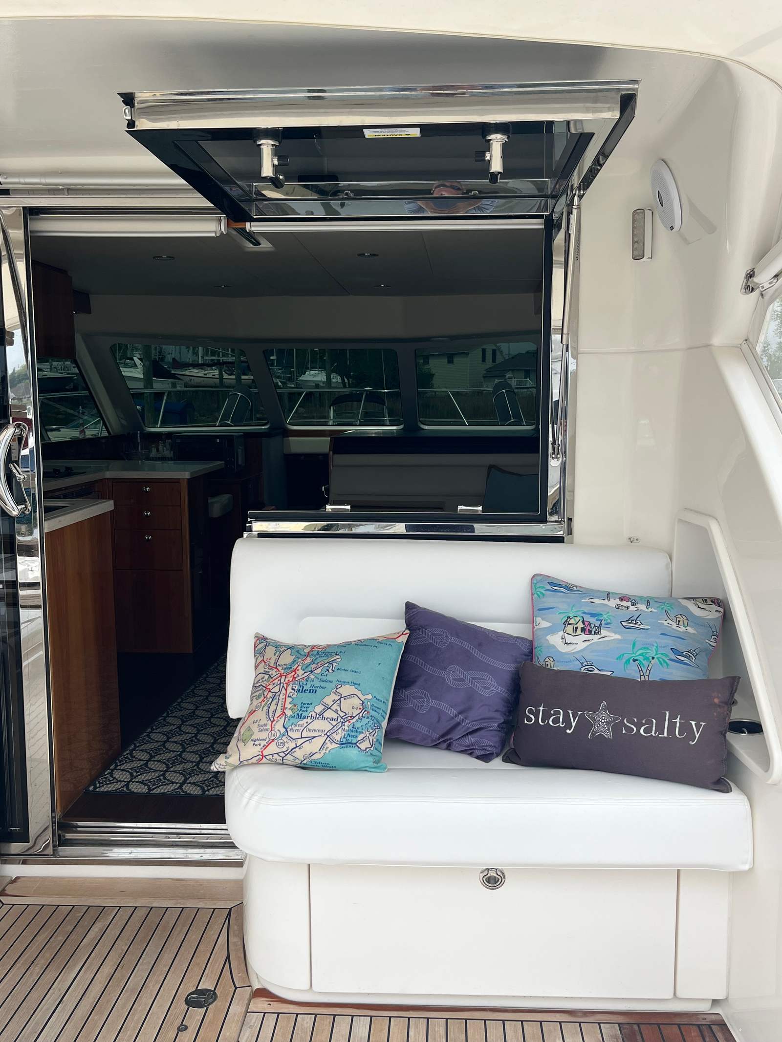 Hardtop Flybridge Wetbar, Lounge Seating, Refrigerator, Carpet