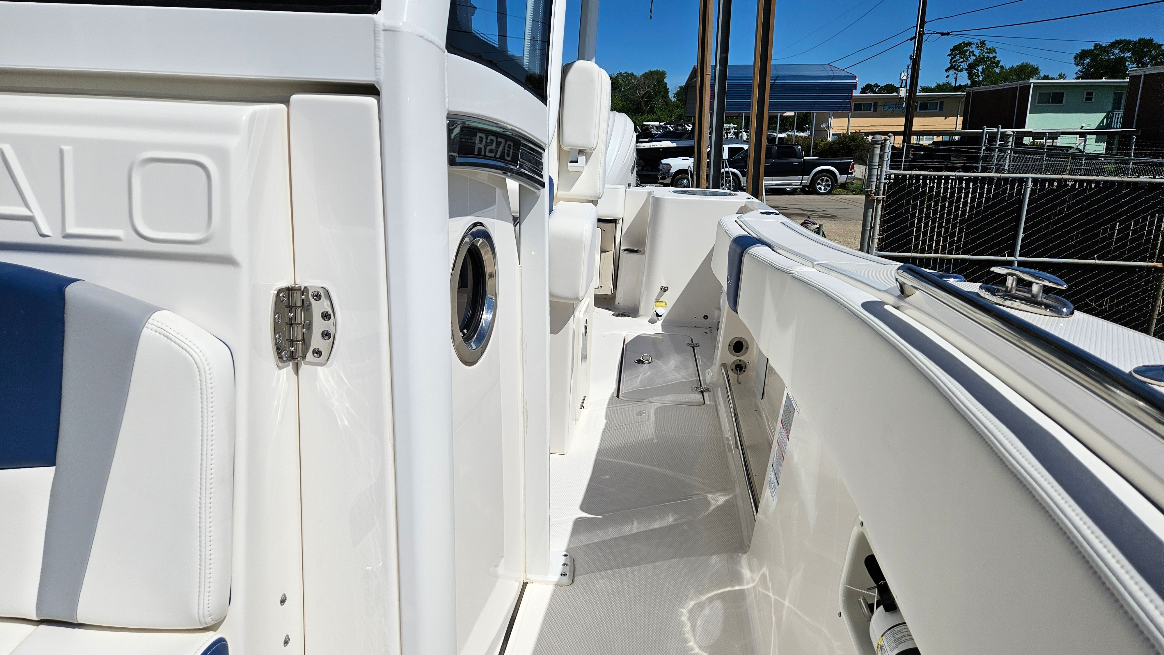 This Robalo boat for sale is loaded with features that cater to both serious anglers and those who love to entertain. The Center Console layout provides 360-degree access around the boat, making it ideal for casting lines or reeling in the catch of the day. The spacious deck offers plenty of room for guests to move comfortably, while the ergonomic helm station puts all controls within easy reach for the captain.The 27-foot length provides a stable and smooth ride, even in rougher waters, and the high-quality construction ensures durability and longevity. The boat’s design incorporates ample storage solutions for gear, tackle, and personal items, keeping the deck clutter-free and organized. With its modern styling and attention to detail, the Robalo 270 CC stands out as a premium Center Console boat for sale.