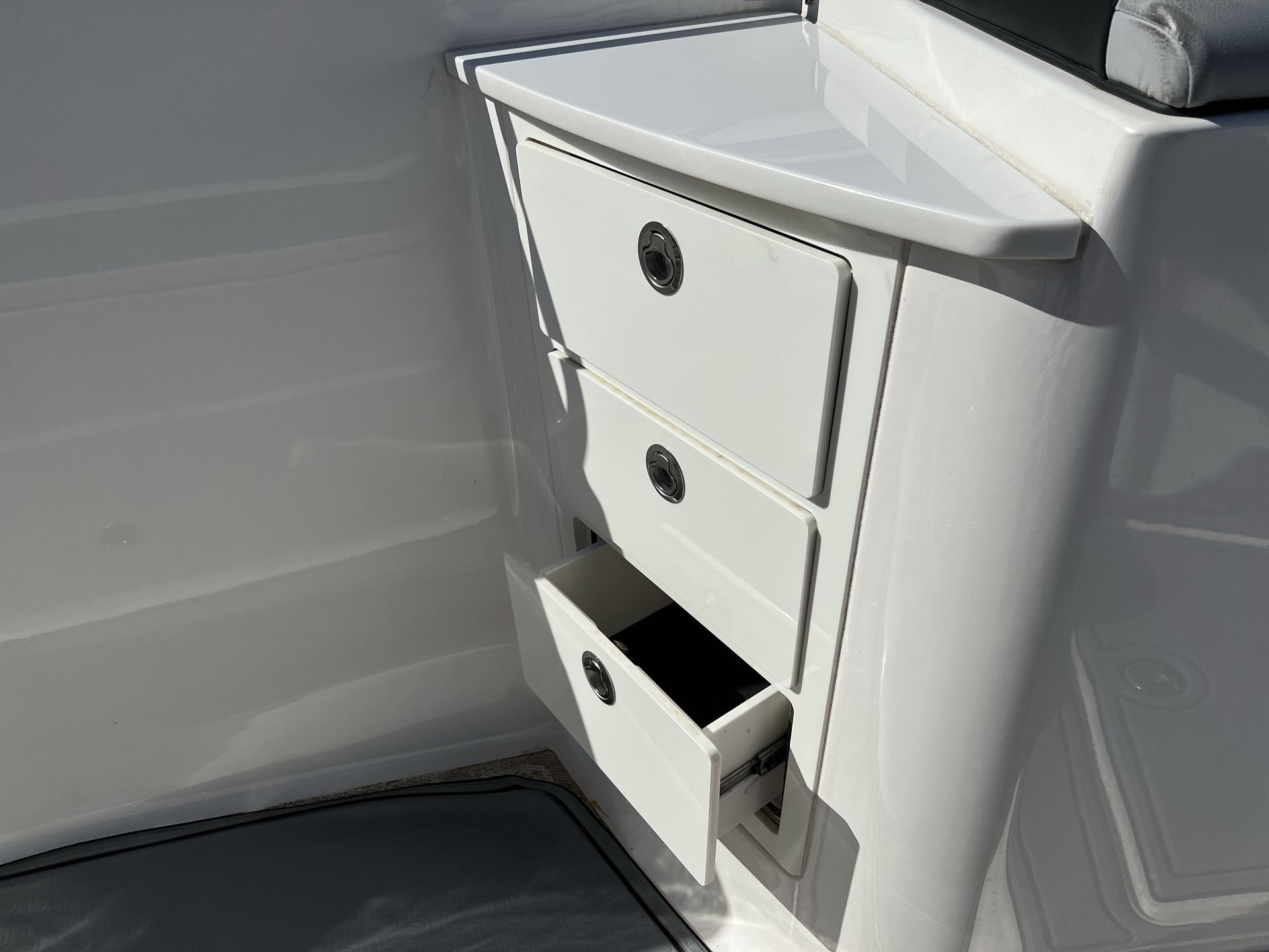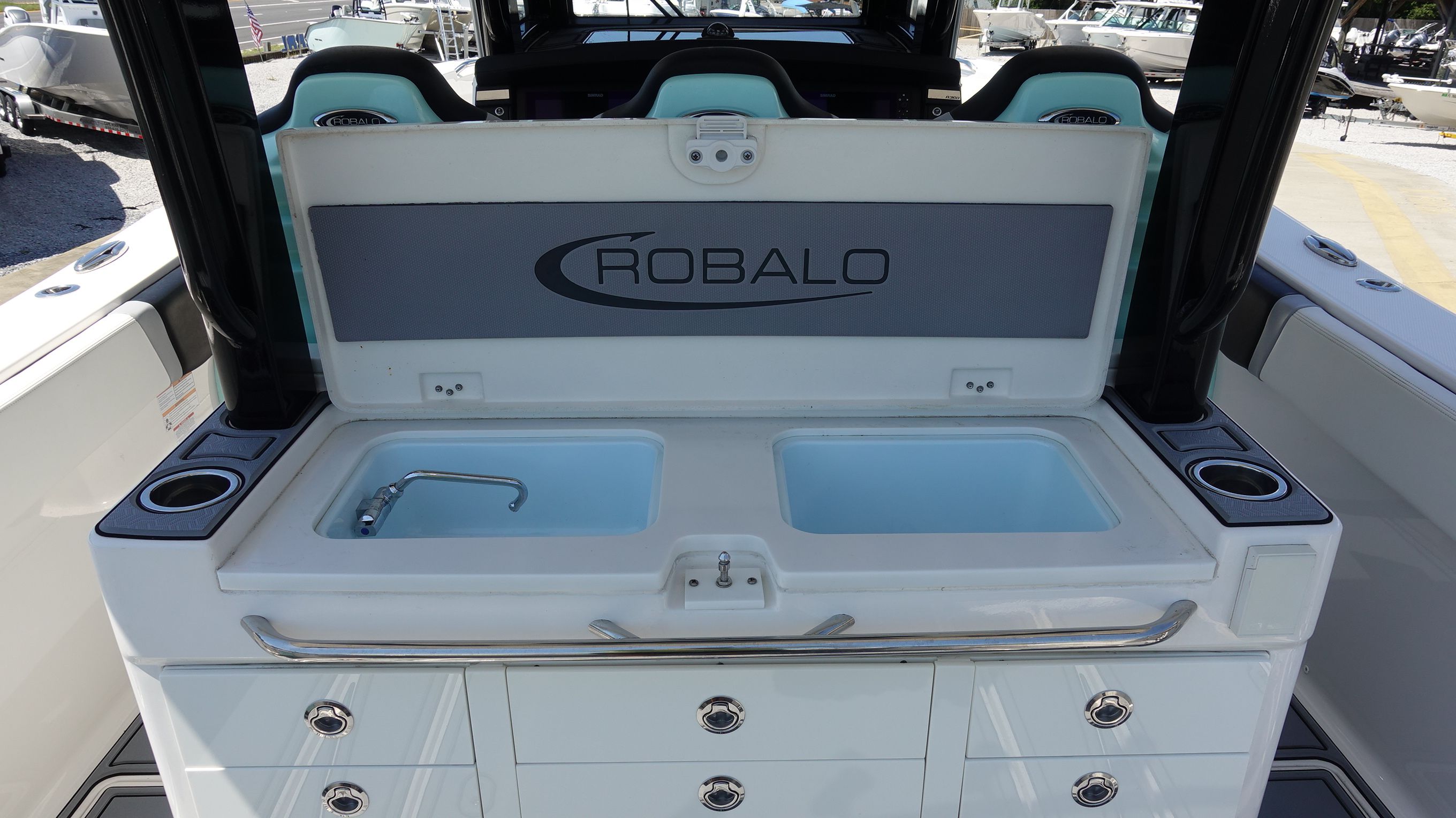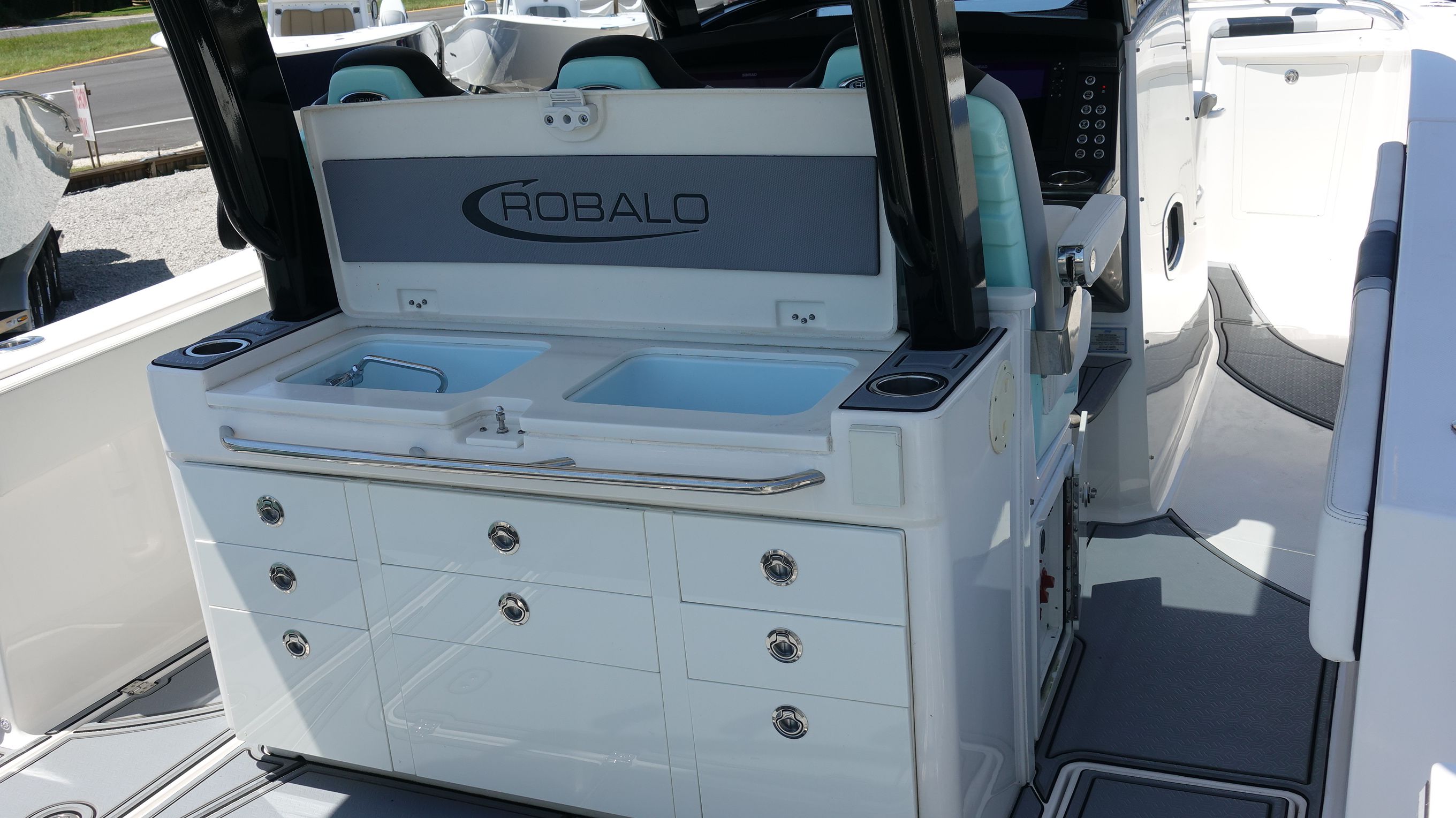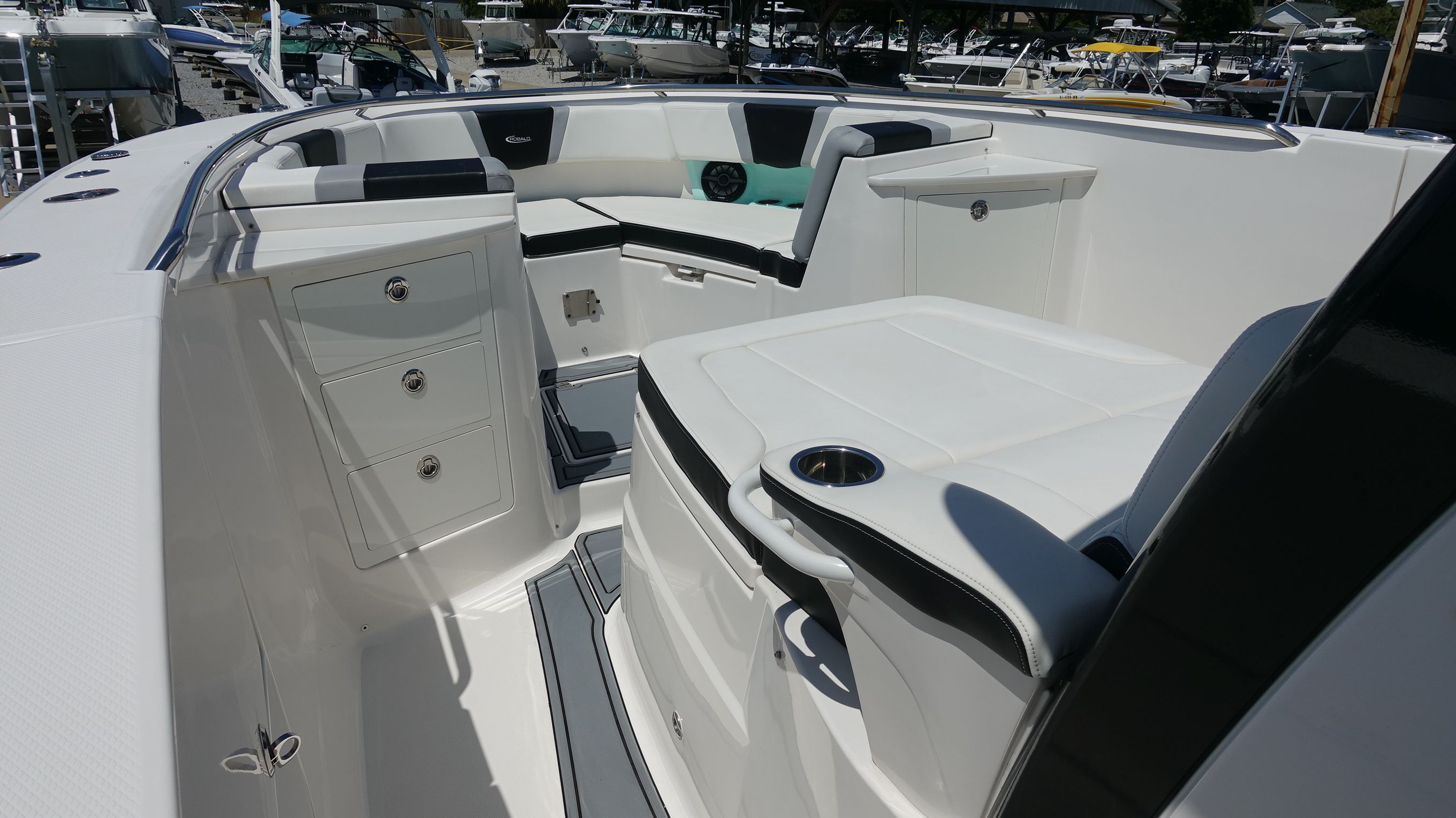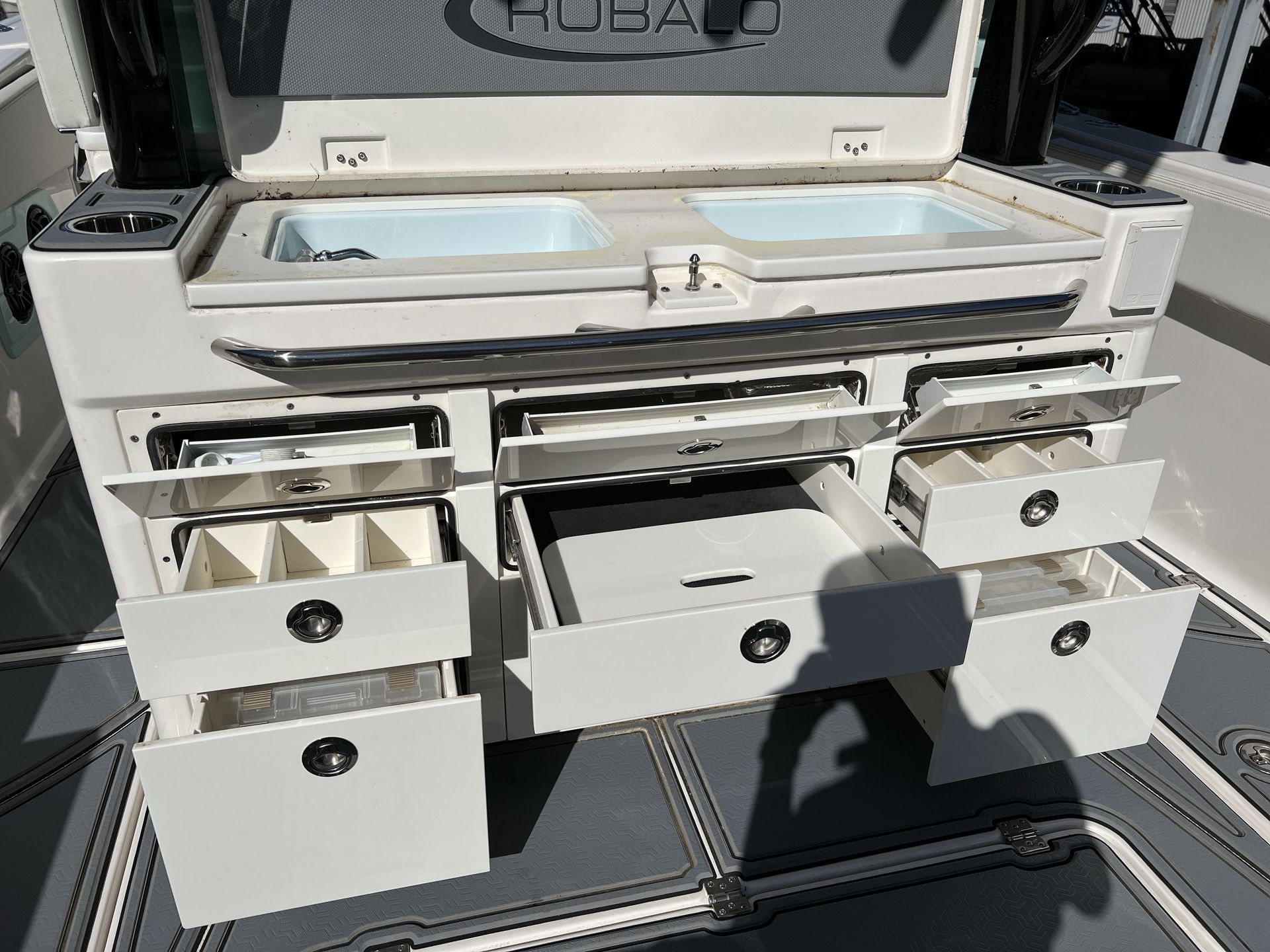 Practicality is at the heart of the Robalo 360 CC’s design. The boat’s ample storage compartments keep gear organized and out of the way, while the efficient layout makes docking and maneuvering a breeze. Triple engines not only deliver outstanding performance but also provide redundancy for added peace of mind during longer journeys. The boat’s fuel-efficient design helps you go further without frequent stops, maximizing your time on the water.Whether you’re heading out for a weekend fishing trip, planning a family outing, or hosting a waterfront party, the Robalo 360 CC adapts to your lifestyle. Its robust construction and reliable systems make maintenance straightforward, so you can spend more time enjoying your boat and less time worrying about upkeep.