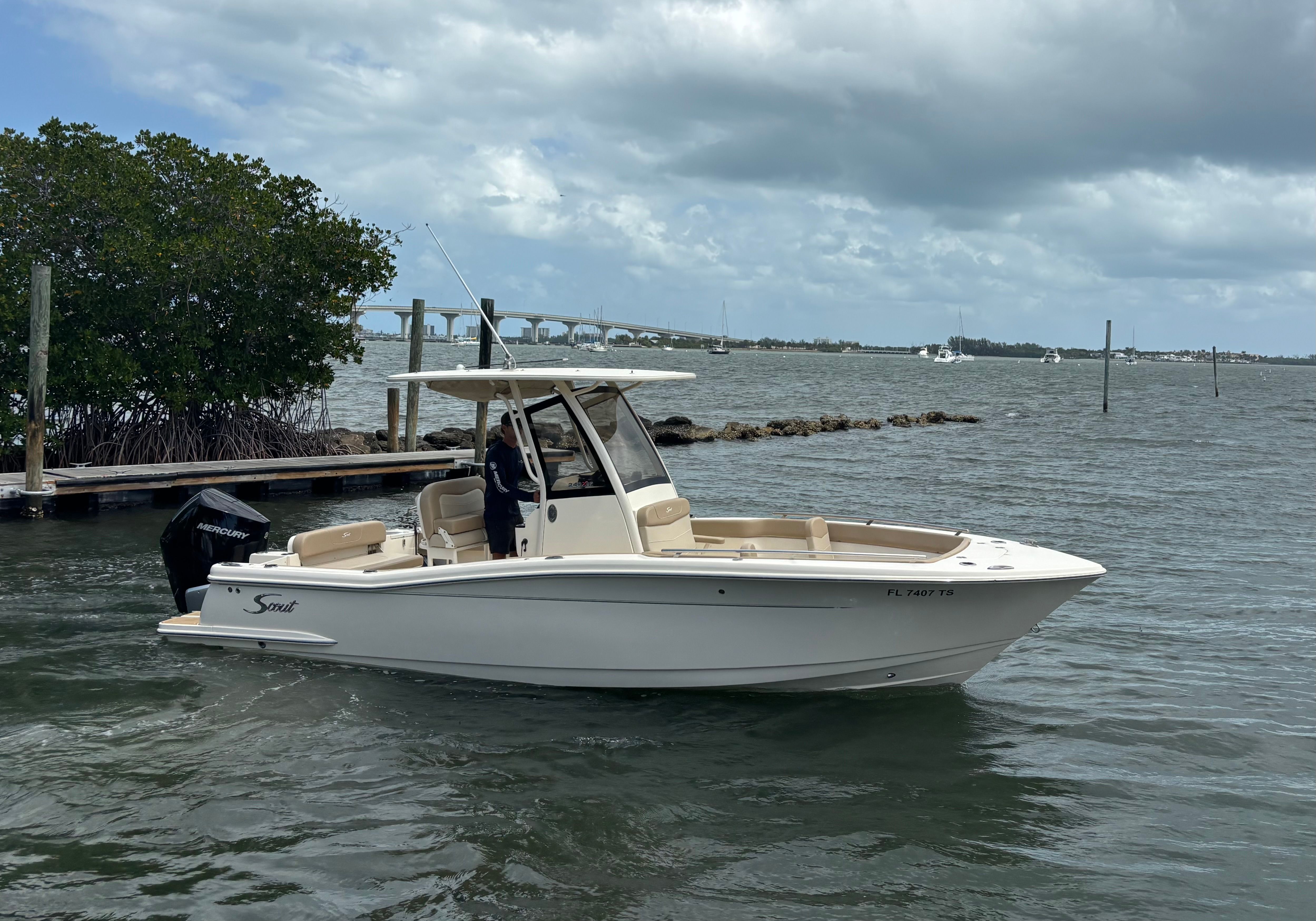 Practicality is at the core of the Scout 240XSF’s design. The center console configuration allows for efficient storage solutions, keeping your gear organized and out of the way. Docking is a breeze thanks to the boat’s responsive handling and well-balanced hull, making it easy to maneuver in tight spaces or busy marinas. The single-engine setup not only simplifies maintenance but also contributes to fuel efficiency, helping you make the most of every outing.Whether you’re planning a quick day trip or a longer excursion, the Scout 240XSF offers the versatility and reliability you need. Its user-friendly features make it accessible for boaters of all experience levels, while its robust construction ensures peace of mind on every journey.