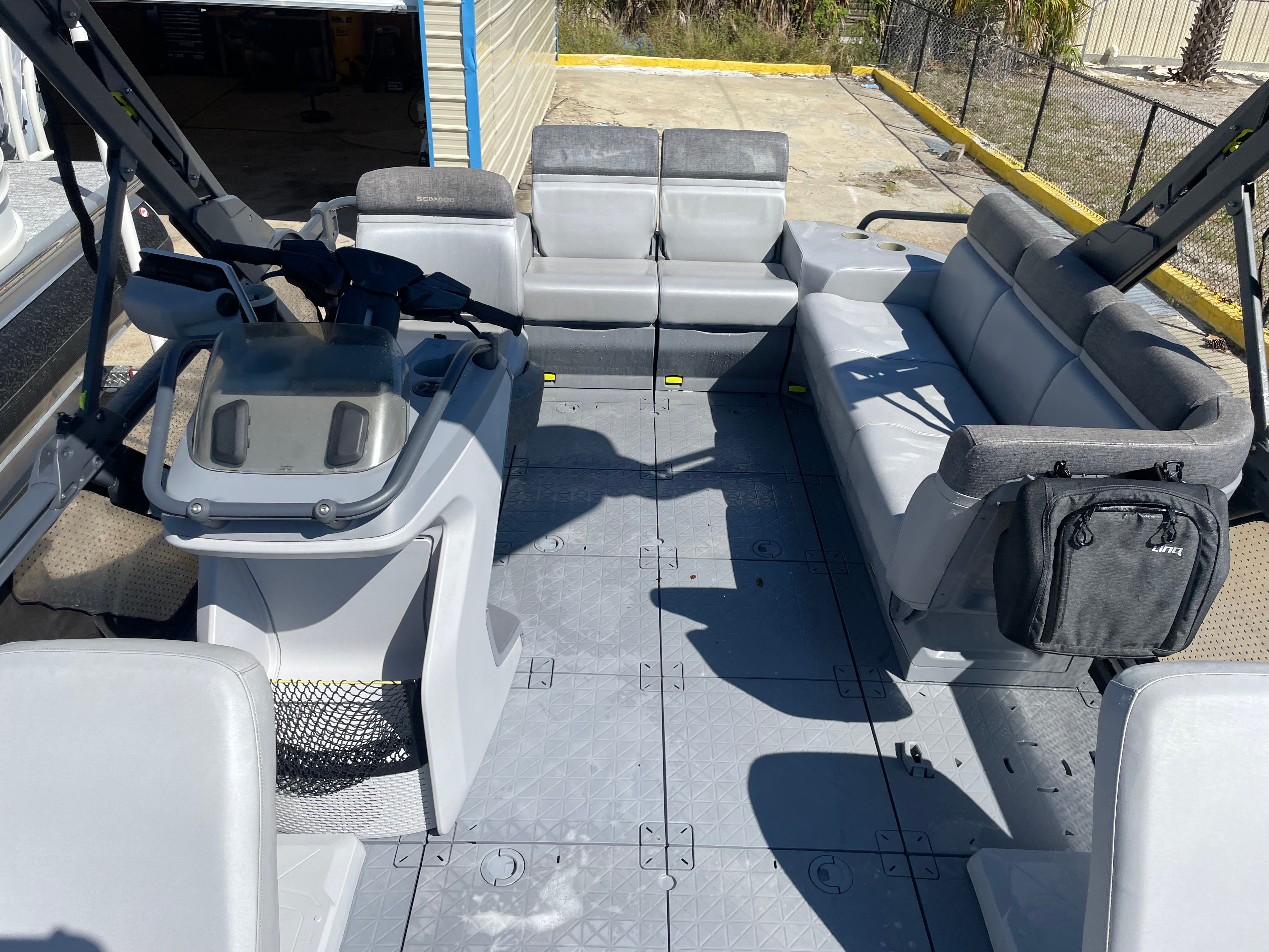The Sea-Doo Switch 18 Sport is thoughtfully designed to enhance your boating experience. Its spacious deck layout provides plenty of room for passengers to move, relax, and socialize, making it ideal for group outings and family gatherings. The pontoon’s modular design allows for flexible seating arrangements and easy customization, so you can tailor the space to suit your needs. The 2022 model’s sporty aesthetic is complemented by durable construction and high-quality materials, ensuring longevity and low maintenance.Special features of the Switch 18 Sport include a unique modular deck system, which allows you to reconfigure seating and accessories to match your activity—whether it’s sunbathing, fishing, or hosting a picnic on the water. The intuitive helm station puts you in control, with easy-to-read gauges and ergonomic controls for a comfortable driving experience. The pontoon’s stable platform ensures a smooth ride, even in choppy conditions, while the open layout makes it easy to access all areas of the boat.