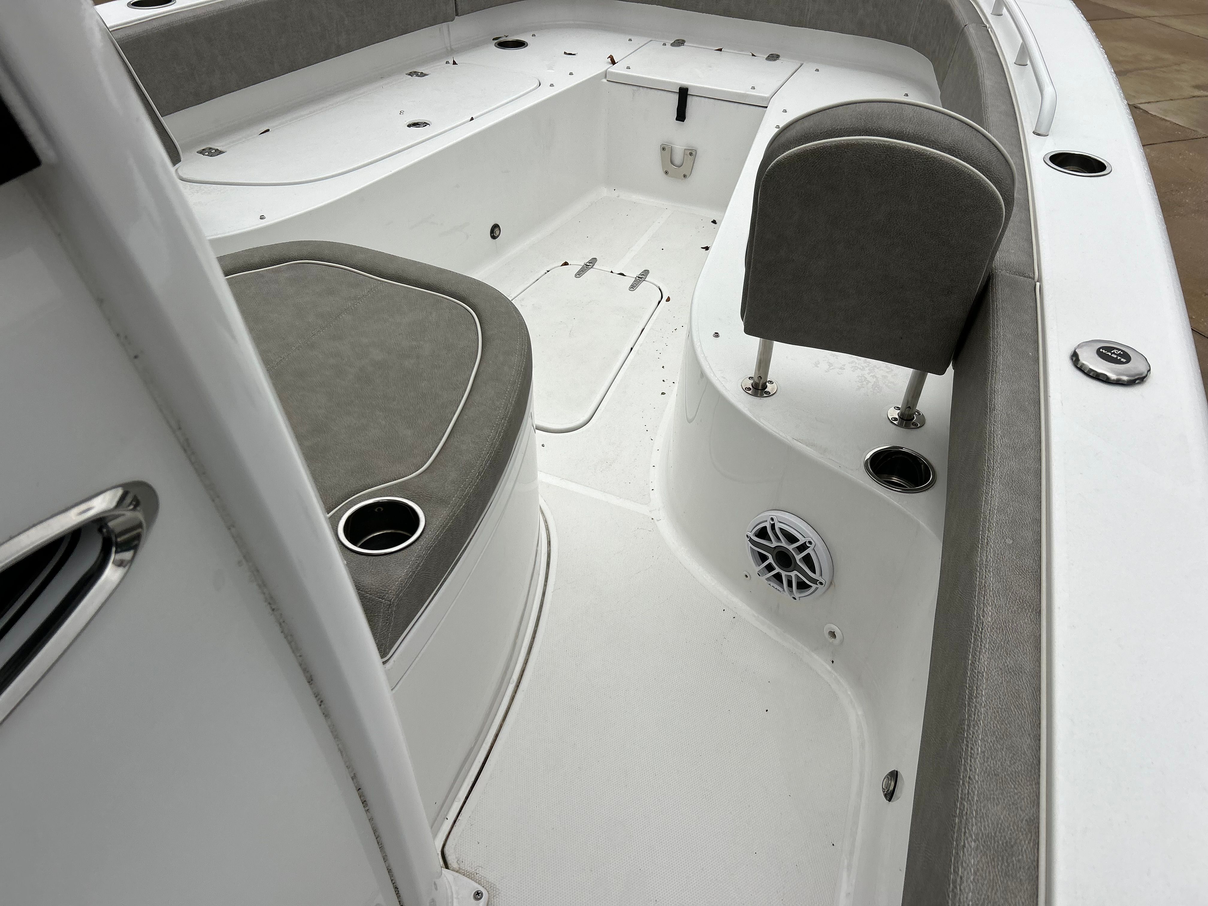 Practicality is a hallmark of the Sea Hunt 28 Escape. The Center Console design offers excellent visibility and maneuverability, making docking and navigation a breeze. The boat’s size strikes the perfect balance between spaciousness and ease of handling, ensuring that both seasoned captains and newcomers can operate it with confidence.Storage is thoughtfully integrated throughout the boat, providing plenty of space for gear, supplies, and personal items. Whether you’re packing for a day trip or a weekend getaway, you’ll appreciate the convenience and organization that the Sea Hunt 28 Escape offers. The efficient twin engines not only deliver impressive performance but also contribute to fuel economy, allowing you to spend more time enjoying the water and less time refueling.