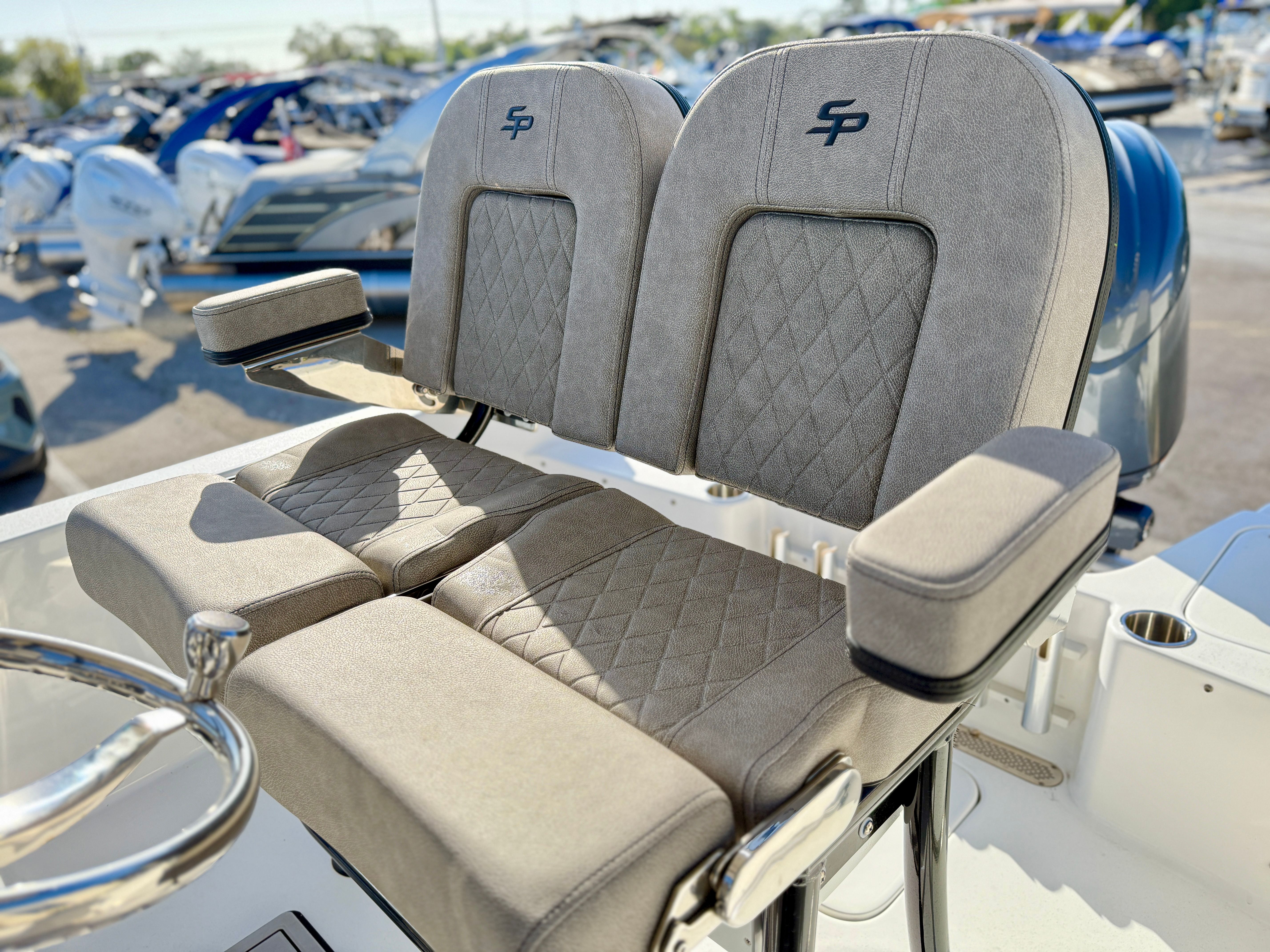 The 2024 Sea Pro 202 CC is loaded with features that enhance both its functionality and its visual appeal. The Platinum color scheme extends from the hull sides to the console and upholstery, creating a cohesive and upscale aesthetic. The Powder Coat - Black finish adds a touch of elegance and durability to the boat’s hardware, while the Standard White hull bottom and underside maintain a classic, clean look.One of the standout features is the fiberglass hard top, which offers superior protection from the sun and elements, allowing you to enjoy longer days on the water in comfort. The hard top’s Standard White color complements the overall design, while providing a sturdy platform for mounting electronics or additional accessories. Every detail, from the rigging to the upholstery, has been carefully selected to ensure maximum comfort, durability, and style.