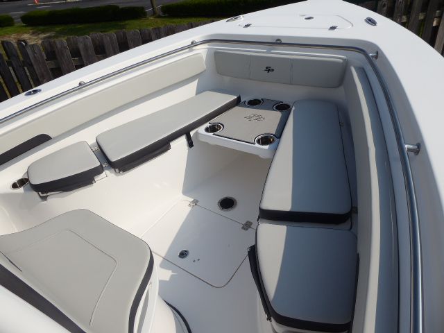 The Sea Pro 222 CC is loaded with features that enhance both functionality and comfort. The stainless steel cup and rod holders (four in total) provide convenient storage for your beverages and fishing gear, while the additional six stainless steel cup holders ensure everyone on board has a secure place for their drinks. The stern sandbar table attachment is a standout feature, transforming the rear of the boat into a perfect spot for socializing, snacking, or simply enjoying the view when anchored at your favorite sandbar.The helm pad in Titanium offers both comfort and durability, making long days at the helm more enjoyable. The B60 transducer is a valuable addition for anglers, providing accurate depth and fish-finding capabilities to help you make the most of every outing. The hard top, with its Shark Skin Gray underside, not only adds to the boat's striking appearance but also provides essential shade and protection from the elements.