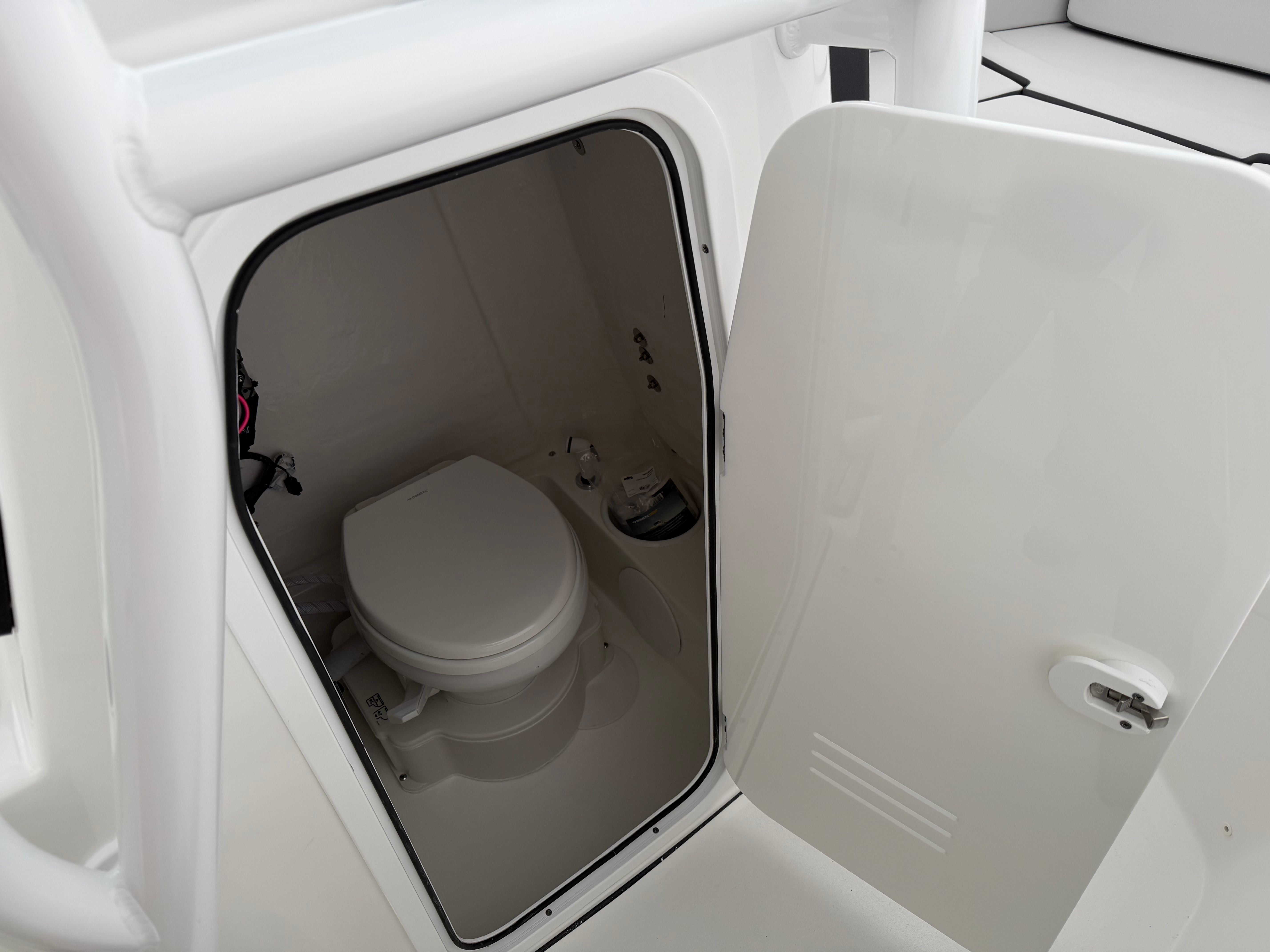 The Sea Pro 225 Flxr is packed with features that enhance both functionality and comfort. The Standard White FGLP color scheme extends across the console and hull bottom, creating a cohesive and stylish appearance. The Yamaha Digital rigging provides advanced control and monitoring, giving you confidence at the helm. For added convenience, the boat includes a pump-out head, making longer trips more comfortable for everyone on board. The fish box macerator is a valuable addition for anglers, ensuring easy cleanup after a successful day on the water.Four stainless steel cup/rod holders are strategically placed for both fishing and leisure, allowing you to keep your favorite beverage or fishing rod within easy reach. The 12/24-volt battery charging system ensures your electronics and accessories stay powered throughout your adventures. At the helm, a wireless phone charger and holder keep your devices secure and charged, while the light bar for the hard top enhances visibility during early morning or late evening outings.