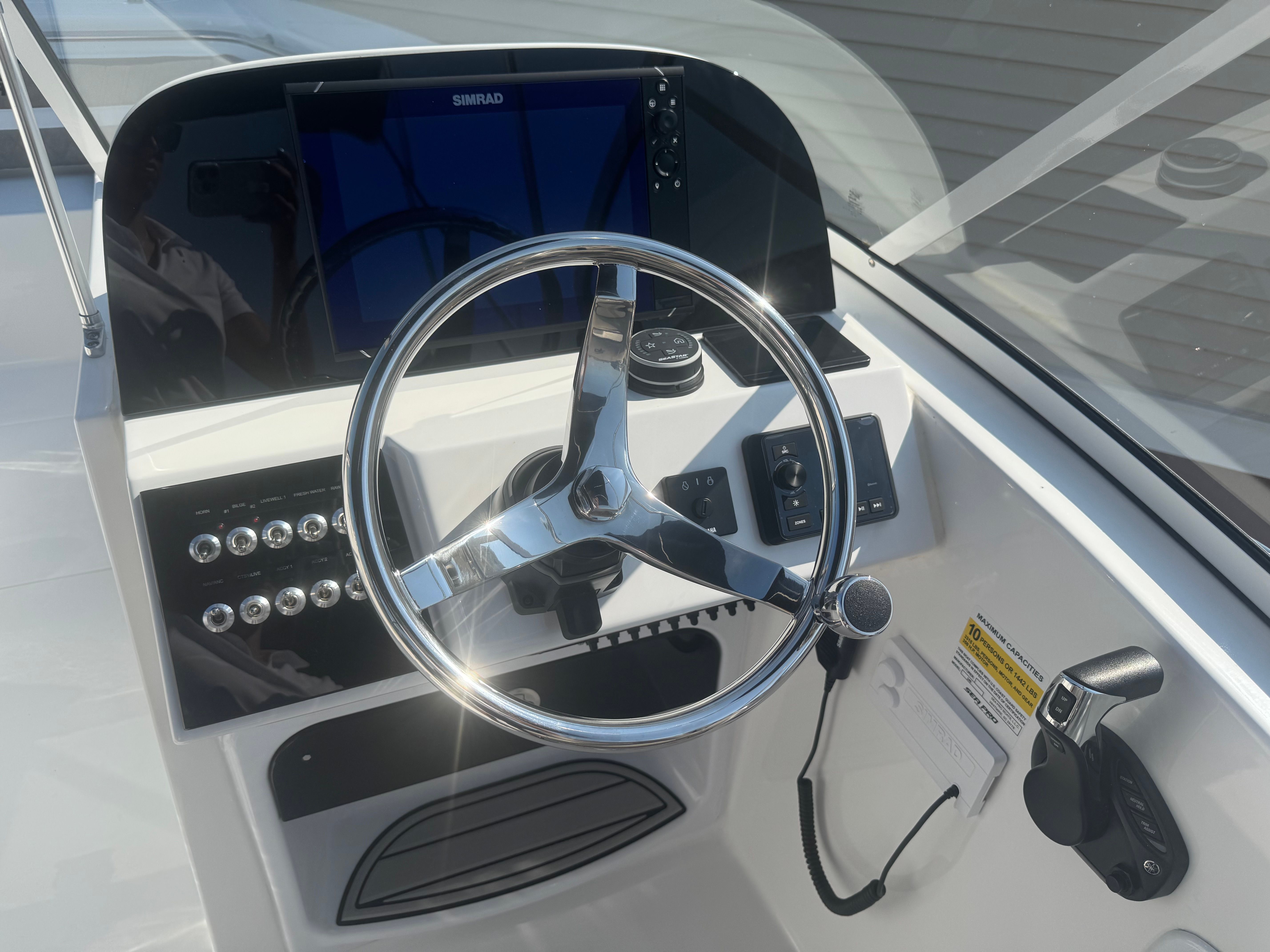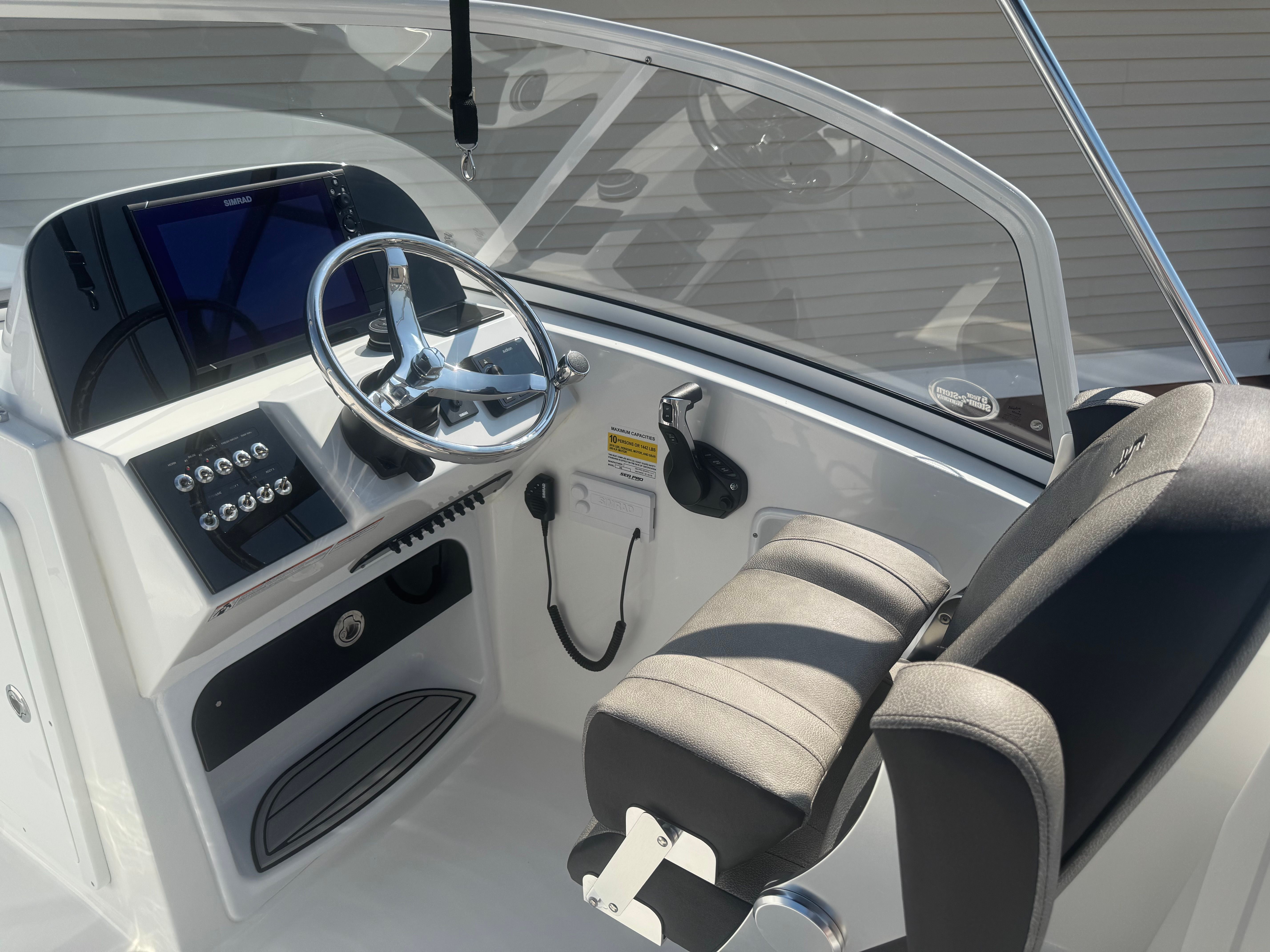 The Sea Pro 240 DLX is as practical as it is stylish. Its center console design provides easy access around the entire boat, making docking and maneuvering a breeze. The efficient Yamaha F300XSB engine offers impressive fuel economy, allowing you to spend more time on the water and less time at the fuel dock. The inclusion of trim tabs ensures smooth handling and stability, even in challenging conditions, while the VHF radio adds an extra layer of safety and peace of mind.Storage is thoughtfully integrated throughout the boat, providing ample space for gear, supplies, and personal items. The bow and cockpit covers protect your investment from the elements, keeping the interior clean and ready for your next adventure. The bimini top offers quick and easy shade, making it simple to stay comfortable during long days under the sun.
