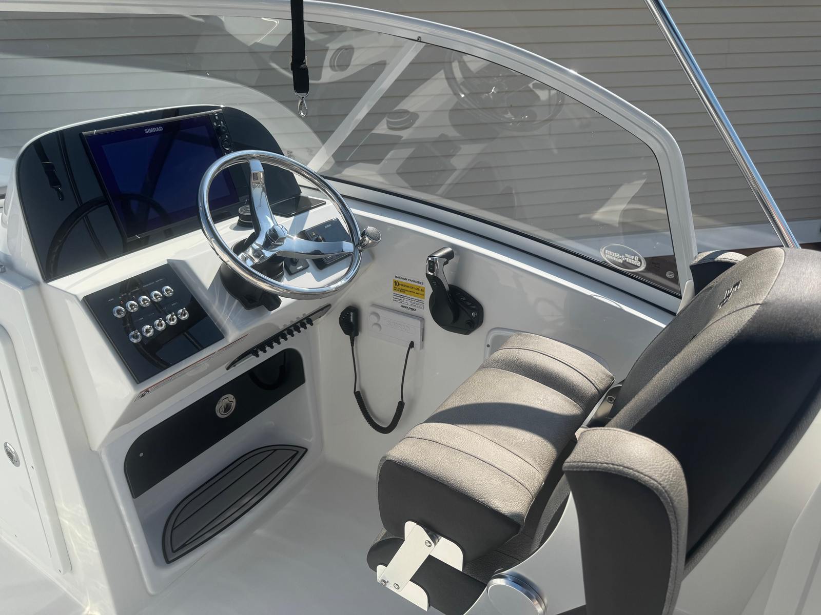 The Sea Pro 240 DLX is packed with features designed to elevate your boating experience. The hull side is finished in a classic standard white, exuding timeless elegance and complementing the boat’s modern silhouette. The white powder coat adds a layer of durability and style, while the platinum upholstery color creates a luxurious and inviting atmosphere on board. The complete bolster package ensures maximum comfort for you and your guests, providing plush seating and support during long days on the water.For protection from the elements, the Sea Pro 240 DLX comes equipped with a bow cover and a cockpit cover, both crafted from high-quality canvas. The bimini top, complete with a convenient storage bag, offers shade and shelter when needed, making it easy to adapt to changing weather conditions. Communication and safety are enhanced by the VHF Radio RS20, ensuring you stay connected wherever your adventures take you.