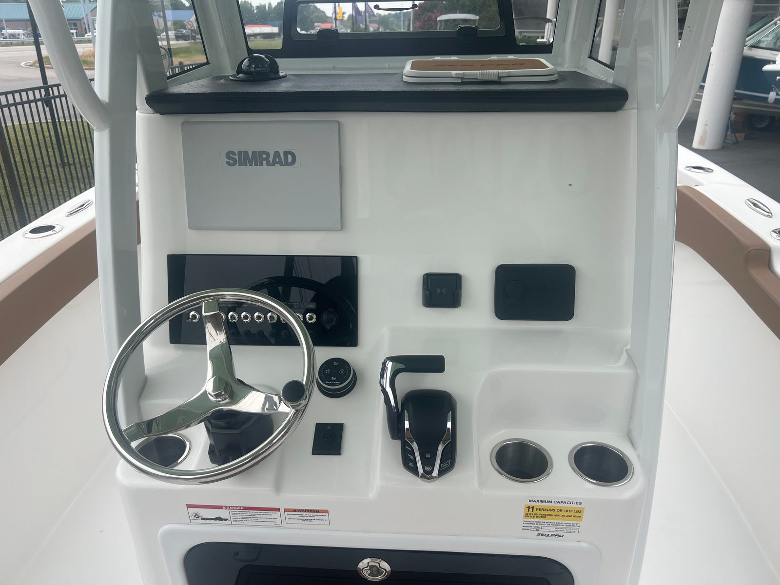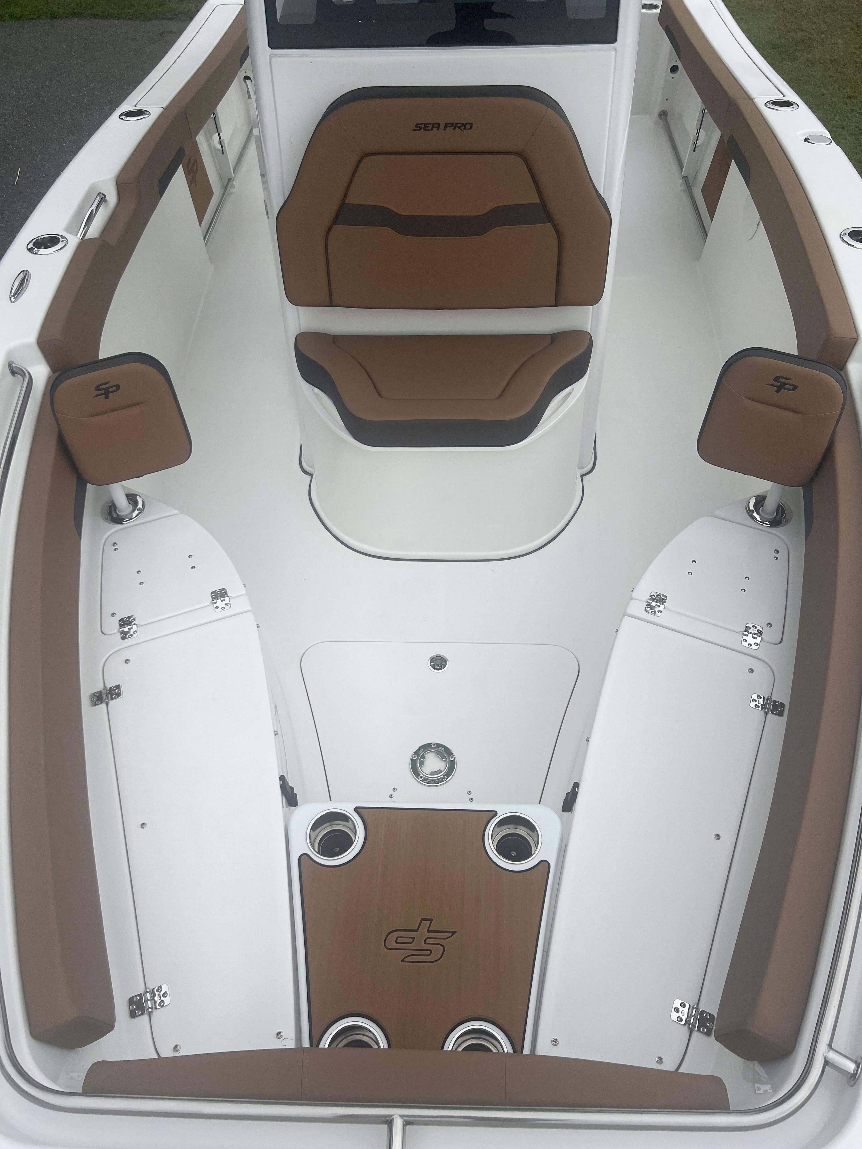 The Sea Pro 242 Sport is loaded with features that enhance both functionality and comfort. The hard top with windshield enclosure offers excellent protection from the elements, allowing you to enjoy your time on the water regardless of the weather. The white powder-coated accents add a touch of elegance and durability, while the stainless steel cup holders (seven in total) ensure that refreshments are always within reach for you and your guests.The hull’s Seafoam color not only looks fantastic but also contributes to the boat’s modern appeal. The Cafe Brown upholstery provides a warm, inviting seating area that is both stylish and comfortable. For added convenience, the fresh water wash down system makes it easy to keep your boat clean after a day of fun.Navigation and connectivity are top-notch, thanks to the Simrad NSX12 unit, which offers advanced chart plotting and fish-finding capabilities. The Sea Pro Connect App brings smart technology to your fingertips, allowing you to monitor and manage key boat functions directly from your mobile device. The hard top is further enhanced by a powerful light bar, ensuring excellent visibility during early morning departures or evening returns.