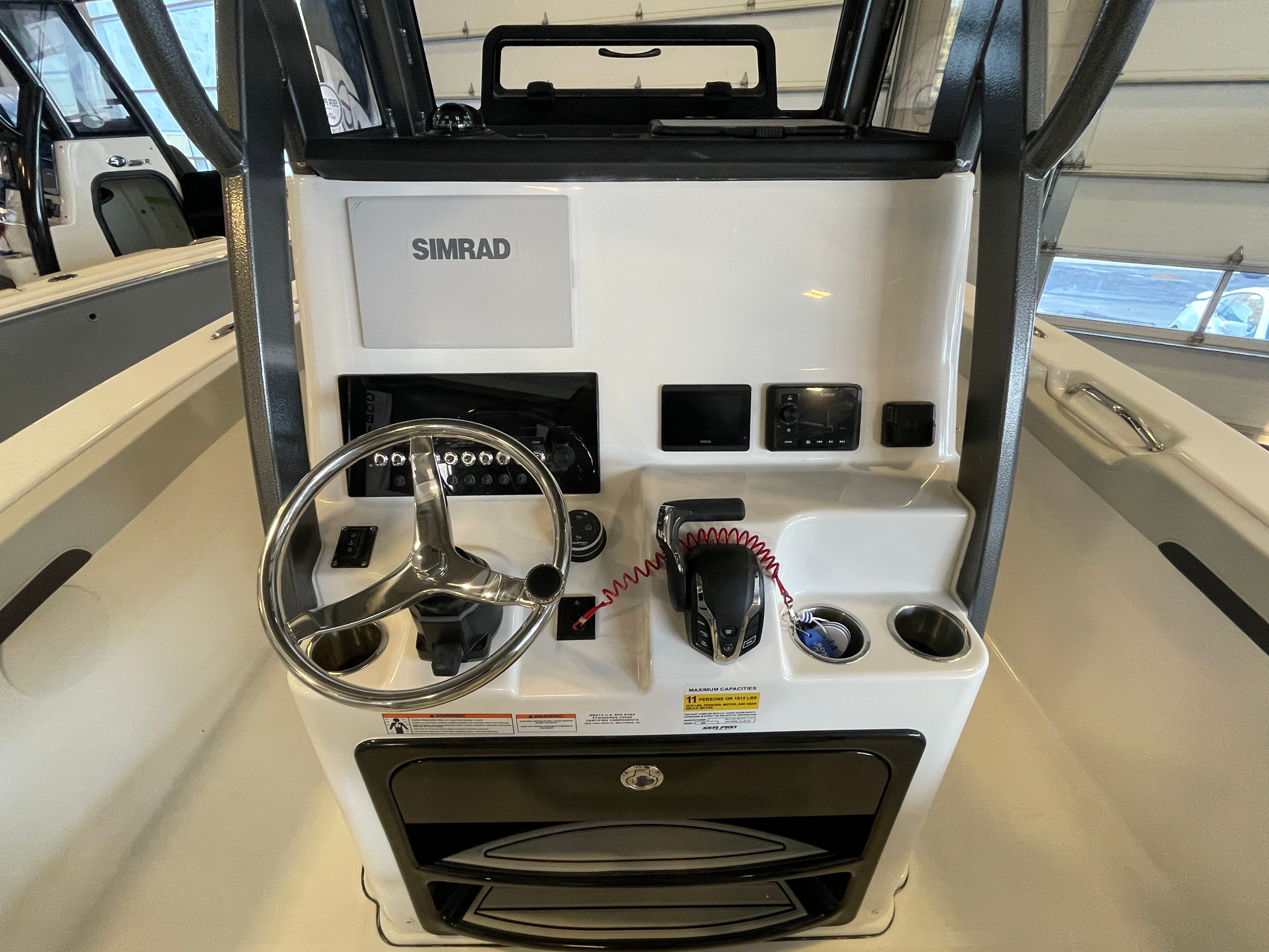 The Sea Pro 242 DLX comes equipped with a host of special features that enhance both functionality and comfort. The Yamaha Digital system provides state-of-the-art engine management, giving you real-time data and seamless integration for a superior boating experience. The Lewmar Thru-Hull Windlass Pro-Fish 1000 anchoring system offers reliable and effortless anchoring, making it easy to secure your position whether you are fishing or relaxing at your favorite spot.For added protection and style, this center console boat features a Canvas Dash Panel Cover, Canvas Leaning Post Cover, and Canvas Console Seat Cover, ensuring your investment stays in pristine condition. The Deluxe Leaning Post offers ergonomic support and comfort, perfect for long days on the water. The Hammer Gray powder coat adds a touch of sophistication, while the Platinum upholstery color and Standard White hull and console create a clean, modern aesthetic that is sure to turn heads at the marina.