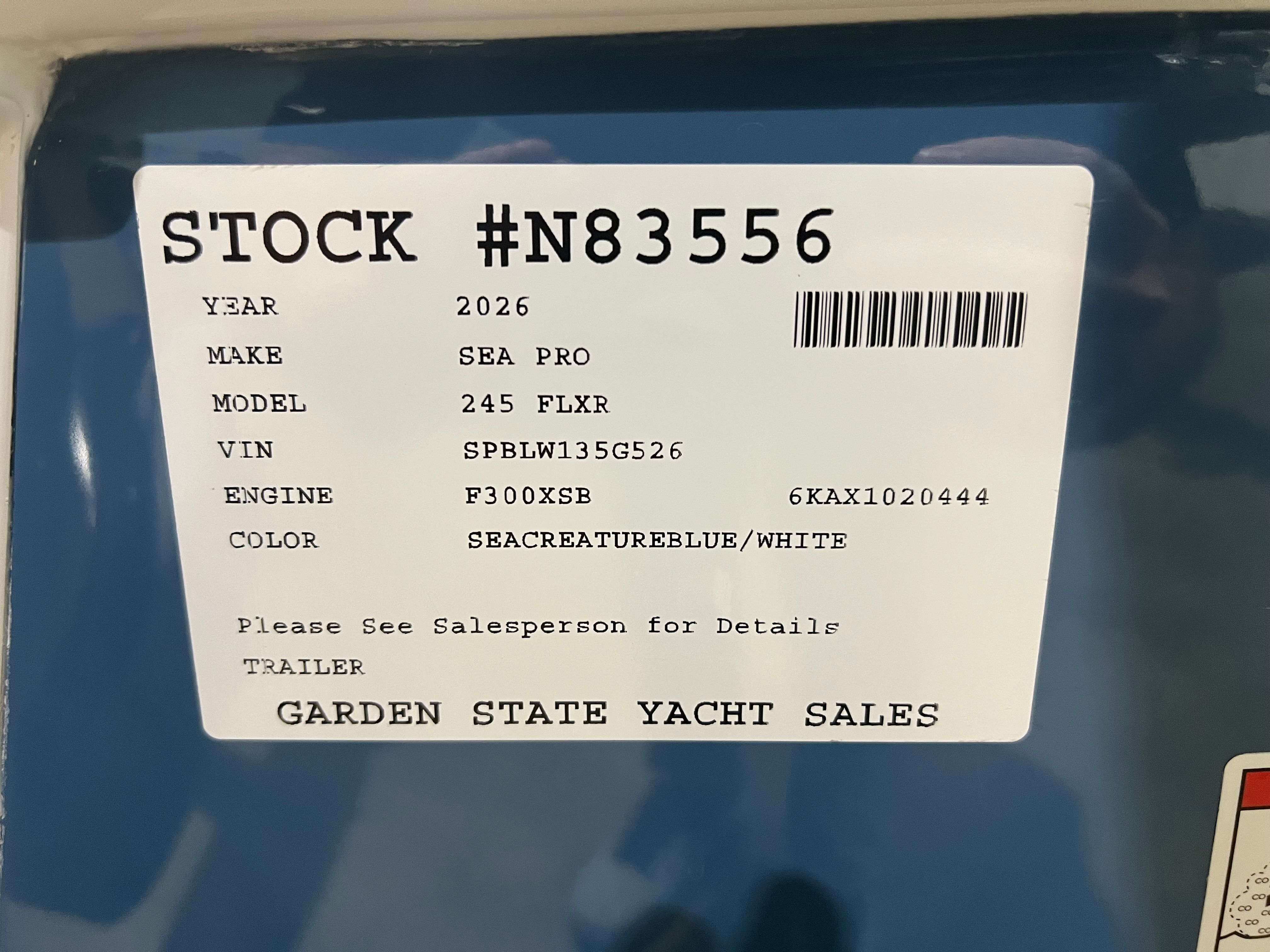 The 2026 Sea Pro 245 Flxr Center Console is a standout choice for anyone seeking a new Center Console boat for sale that combines style, performance, and versatility. With its powerful Yamaha F300XSB engine, striking Sea Creature (Blue) hull, and a host of premium features—including the Complete Bolster Package, Lewmar Thru-Hull Windlass Pro-Fish 1000, Sun Shade Bow, upgraded audio system, VHF Radio RS20, hard top light bar, wireless phone charger, and COAST GUARD KIT NO ANCHORING—this Sea Pro boat for sale is ready to deliver unforgettable experiences on the water.Whether you’re planning family adventures, fishing excursions, or relaxing getaways, the Sea Pro 245 Flxr offers the perfect blend of comfort, convenience, and excitement. Don’t miss your chance to own this exceptional Center Console boat—contact the dealer today to learn more and start your next boating journey.