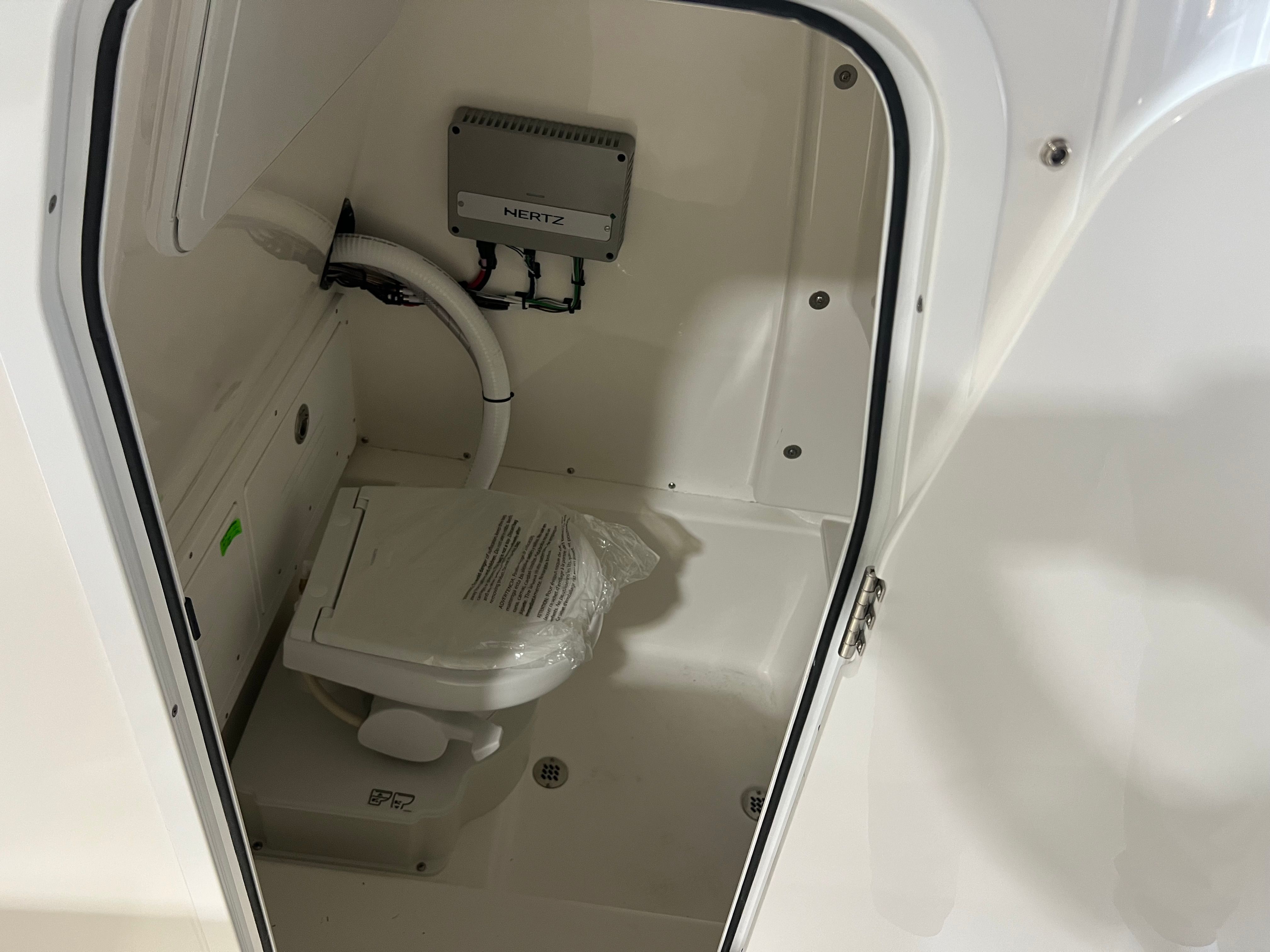The Sea Pro 245 Flxr Center Console is packed with features that enhance both comfort and functionality. The Complete Bolster Package upholstery provides plush seating and support, ensuring a comfortable experience for you and your guests during long days on the water. The Lewmar Thru-Hull Windlass Pro-Fish 1000 anchoring system offers effortless anchoring, allowing you to secure your position with confidence and ease.For sun protection and added versatility, the Sun Shade Bow (including two rod holders) creates a shaded area at the front of the boat, perfect for relaxing or casting a line. The upgraded audio system, featuring an amplifier, subwoofer, and six speakers, transforms your outings into lively social gatherings with crystal-clear sound. Communication is seamless with the VHF Radio RS20, keeping you connected for safety and convenience.The hard top is equipped with a light bar, enhancing visibility during early morning departures or evening cruises. Additionally, the wireless phone charger and holder at the helm ensure your devices stay powered and accessible throughout your journey. The COAST GUARD KIT NO ANCHORING adds an extra layer of safety, providing peace of mind for every trip.