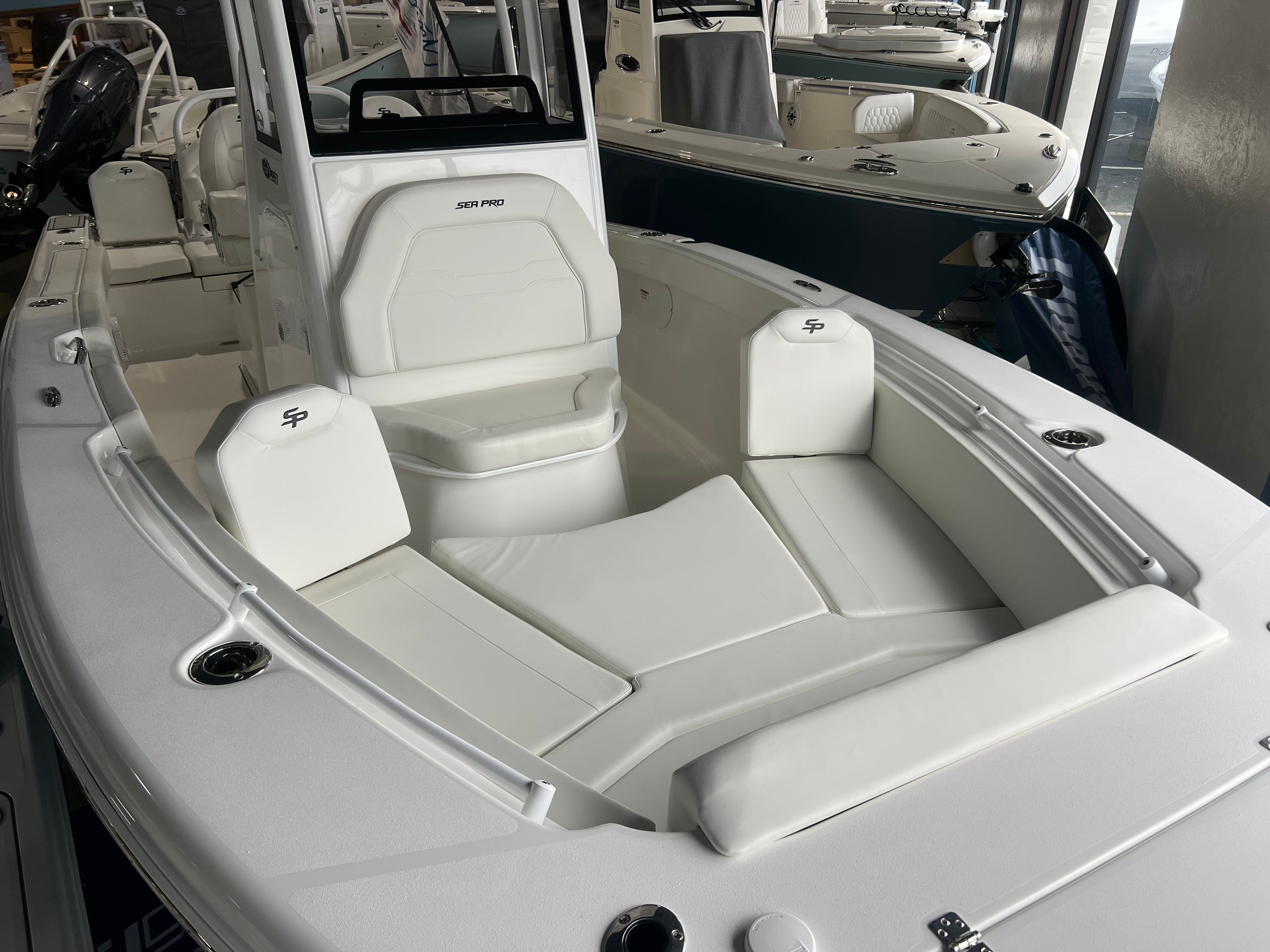 The Sea Pro 245 Flxr Center Console is the ultimate companion for a variety of on-water adventures. Its versatile design makes it perfect for family outings, offering plenty of seating and shade for passengers of all ages. Anglers will appreciate the rod holders and spacious deck, which provide an ideal setup for casting and reeling in the day’s catch.For those seeking luxury getaways, the plush upholstery and upgraded audio system create a refined atmosphere for entertaining guests or enjoying romantic evenings on the water. The boat’s ample storage and practical features make it equally suited for day trips, watersports, or exploring hidden coves along the coastline.