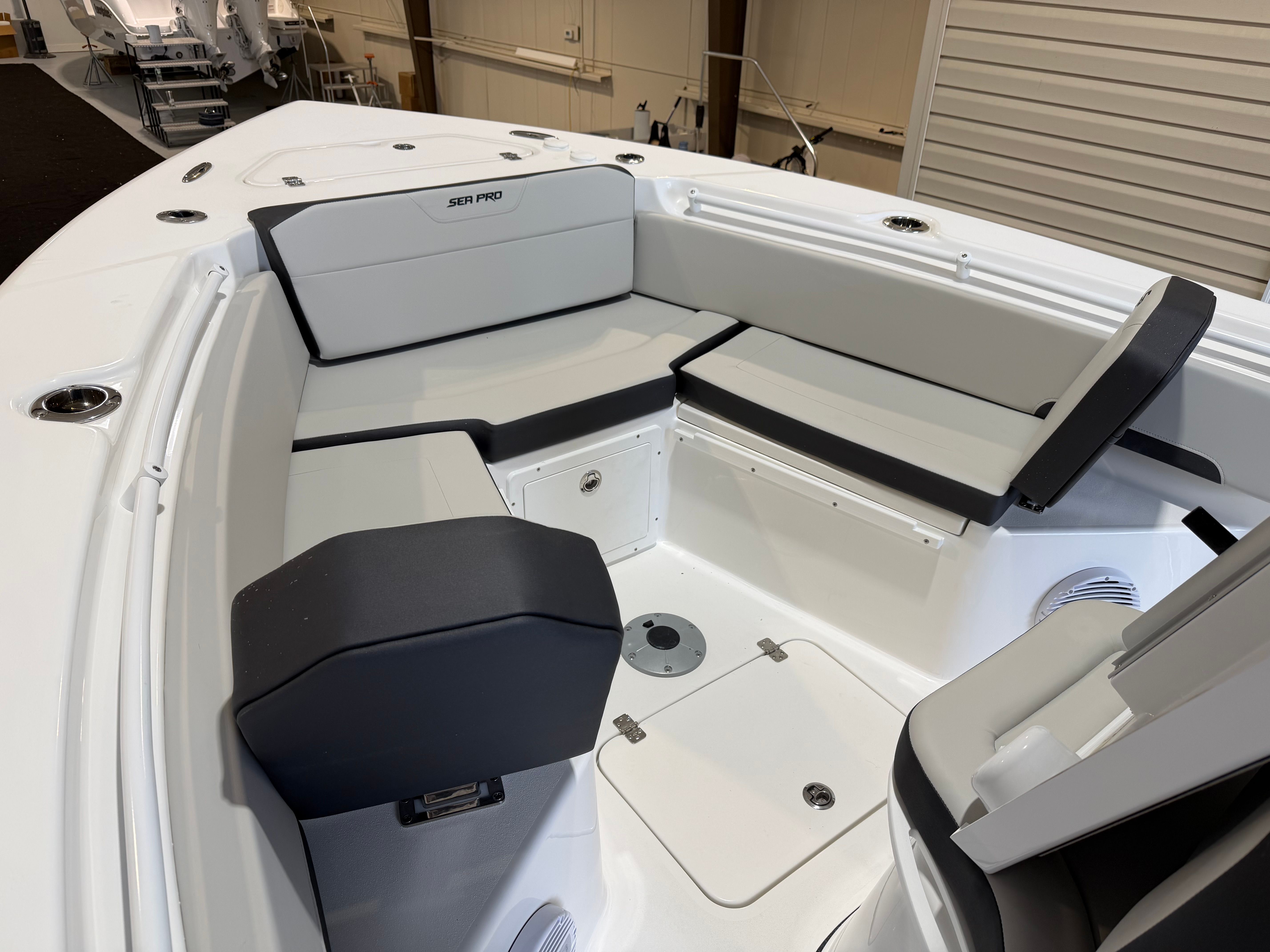 The Sea Pro 245 Flxr is packed with special features that elevate your boating experience. The Complete Bolster Package offers enhanced comfort and support, making long days on the water enjoyable for everyone on board. The Titanium helm pad provides a luxurious touch and superior grip, ensuring confident control at the helm. Anchoring is effortless with the Lewmar Thru-Hull Windlass Pro-Fish 1000, allowing you to secure your position quickly and reliably in any setting.Enjoy shade and relaxation with the Sun Shade Bow, which includes two rod holders for added convenience during fishing trips or leisurely cruises. The audio upgrade transforms your boat into an entertainment hub, featuring an amplifier, subwoofer, and six speakers for immersive sound quality. Stay connected and safe with the VHF Radio RS20, offering reliable communication for navigation and emergencies. Every detail of the Sea Pro 245 Flxr is designed to enhance comfort, convenience, and enjoyment on the water.