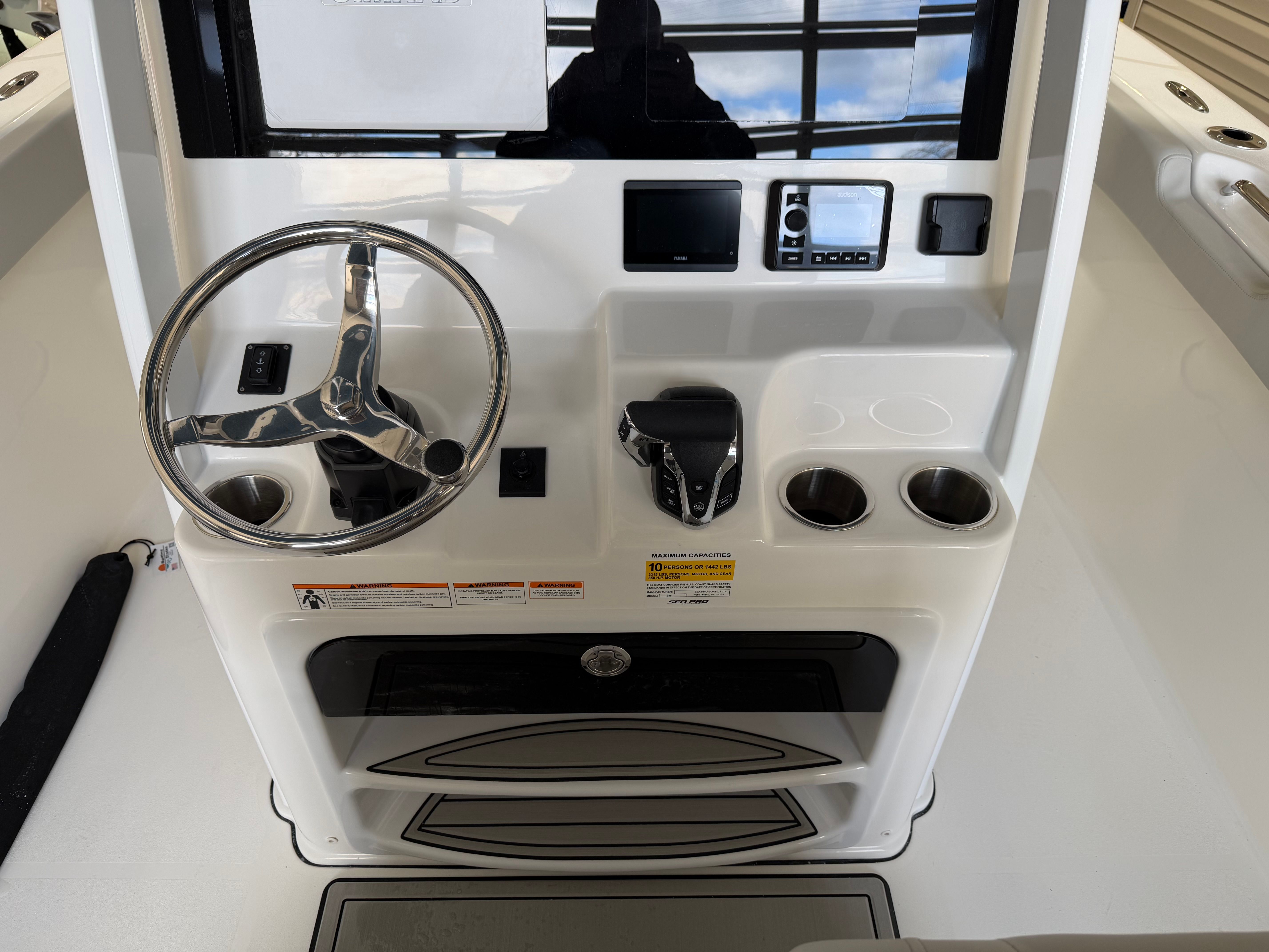 Practicality meets luxury in the Sea Pro 245 Flxr. The efficient Yamaha F300XSB2 engine provides excellent fuel economy, reducing operating costs and extending your time on the water. The Lewmar Thru-Hull Windlass Pro-Fish 1000 simplifies anchoring, making it easy to stop and enjoy your favorite spots without hassle. The Center Console layout offers generous storage for gear, tackle, and personal items, keeping the deck organized and clutter-free.Docking and maneuvering are straightforward thanks to the boat’s responsive handling and well-designed helm station. The Sun Shade Bow ensures comfort during hot days, while the durable upholstery and helm pad withstand the rigors of marine environments. The VHF Radio RS20 adds an extra layer of safety, keeping you connected with other boaters and emergency services when needed. Every aspect of the Sea Pro 245 Flxr is engineered for convenience, reliability, and peace of mind.