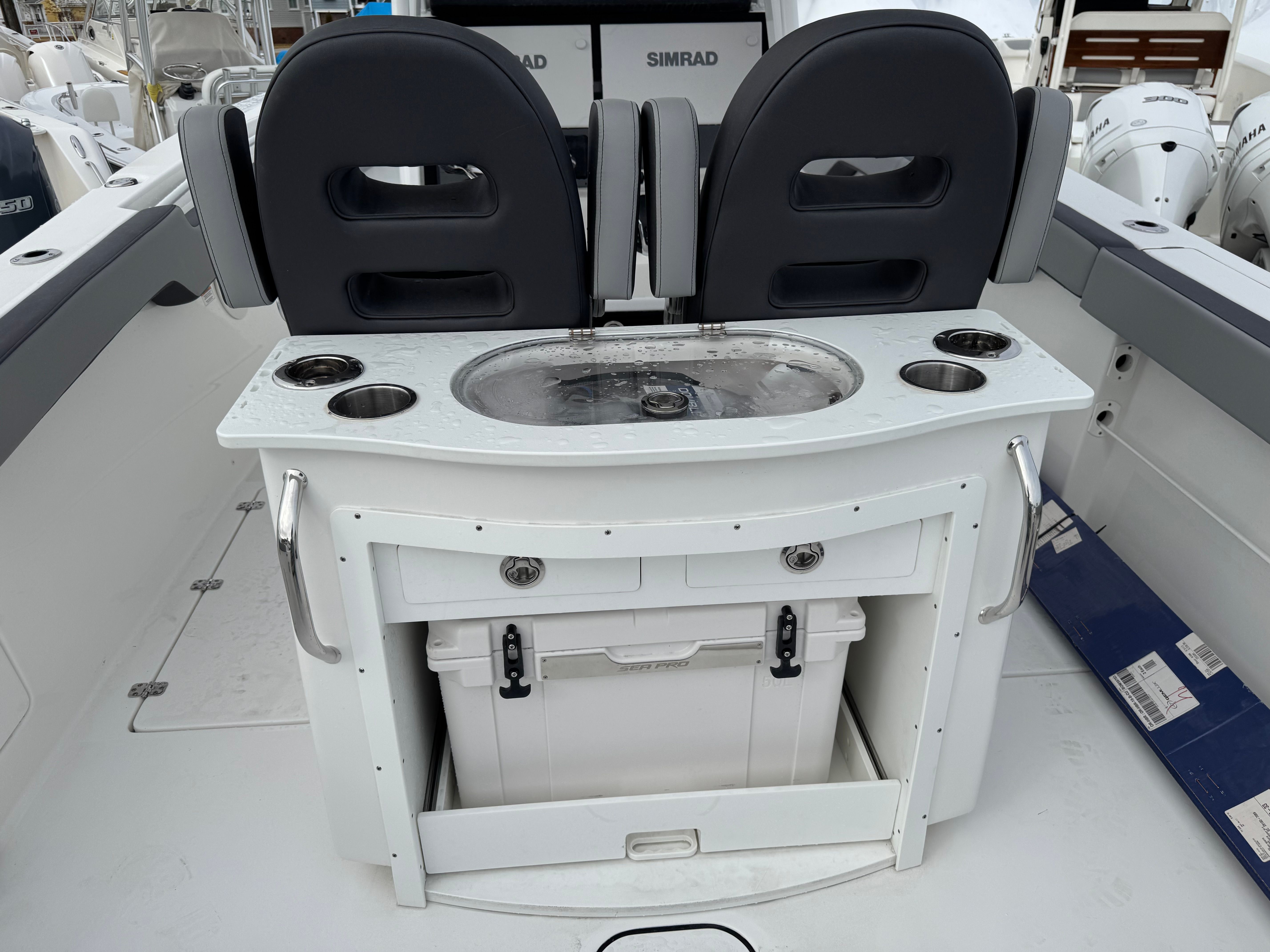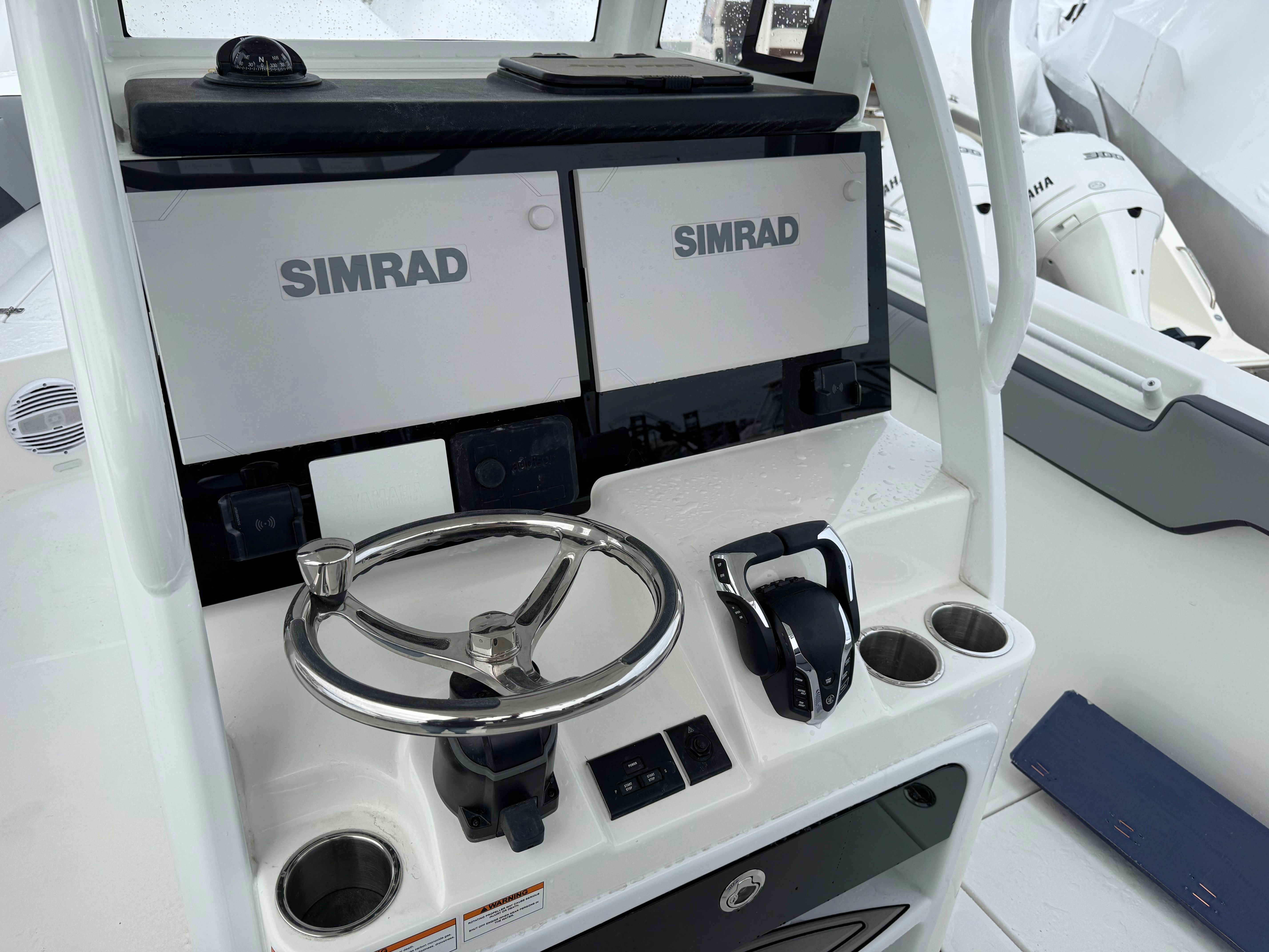 The 2026 Sea Pro 292 DLX comes loaded with premium features designed to enhance your time on the water. For anglers, the boat is equipped with a set of stainless steel cup/rod holders (4) and additional stainless steel rod holders (4), ensuring you have plenty of space for your fishing gear and beverages. Outriggers by Gemlux expand your fishing capabilities, making it easier to target a variety of species and maximize your catch.Convenience and comfort are at the forefront of the Sea Pro 292 DLX’s design. The side entry door ladder provides easy access for swimmers and divers, while the pump out head with overboard discharge adds a level of comfort and practicality for longer trips. The helm is outfitted with a light bar for the hard top, ensuring excellent visibility during early morning or late evening excursions. A wireless phone charger and holder keep your devices powered and secure, so you can stay connected and capture every moment on the water.Navigation and communication are made effortless with the Simrad NSS16 unit and VHF Radio RS20, offering advanced technology for safe and efficient travel. The included console cover helps protect your investment from the elements, keeping your boat looking pristine season after season.