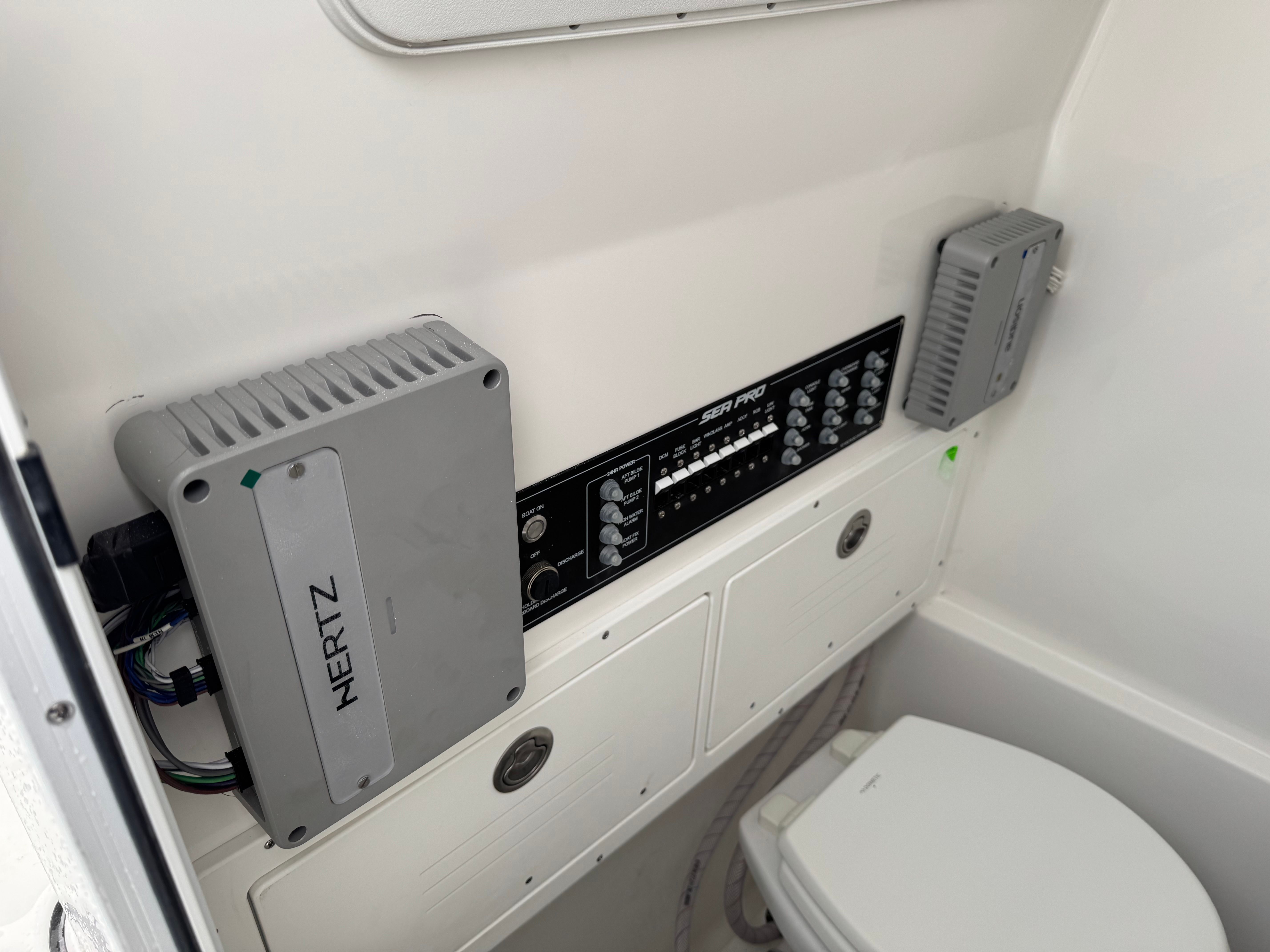Practicality is at the heart of the Sea Pro 292 DLX’s design. The side entry door ladder makes boarding and disembarking a breeze, especially for swimmers, snorkelers, or anyone with mobility concerns. The pump out head with overboard discharge adds convenience for longer outings, eliminating the need for frequent stops at marinas.Storage is plentiful, with dedicated spaces for rods, gear, and personal items, keeping the deck uncluttered and organized. The stainless steel cup/rod holders and additional rod holders provide flexibility for both fishing and leisure activities. The wireless phone charger ensures your devices are always ready for navigation, communication, or entertainment.Docking and maneuvering are simplified thanks to the boat’s responsive handling and well-designed helm, making it easy to enjoy spontaneous trips or quick stops at your favorite waterfront destinations. The console cover protects your electronics and controls, reducing maintenance and preserving the boat’s value over time.