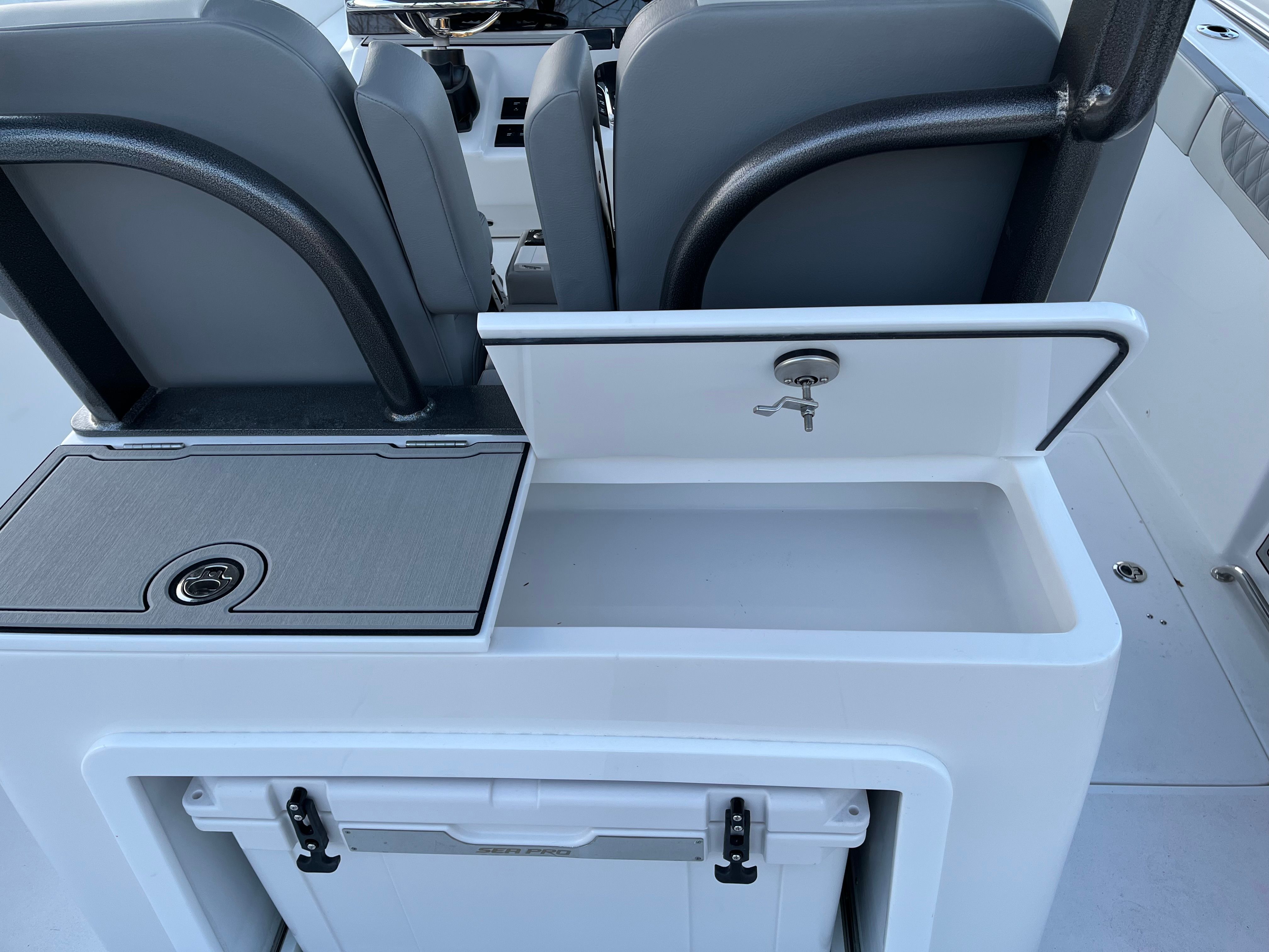 The versatility of the Sea Pro 322 DLX center console boat makes it perfect for a wide range of activities and adventures. For families, the spacious deck and comfortable seating create the ideal setting for weekend outings, picnics, and water sports. Anglers will appreciate the stability and maneuverability provided by the twin Yamaha engines, as well as the ample space for casting and reeling in the catch of the day.If you love entertaining, the sandbar table and stylish finishes make the 322 DLX the ultimate party platform, perfect for hosting friends and making memories on the water. The easy-access side entry door ladder is ideal for swimmers and divers, while the robust construction and advanced controls ensure a safe and enjoyable experience for all. Whether you are planning a relaxing day at the sandbar, an action-packed fishing trip, or a luxurious coastal cruise, this Sea Pro boat for sale is ready to deliver.