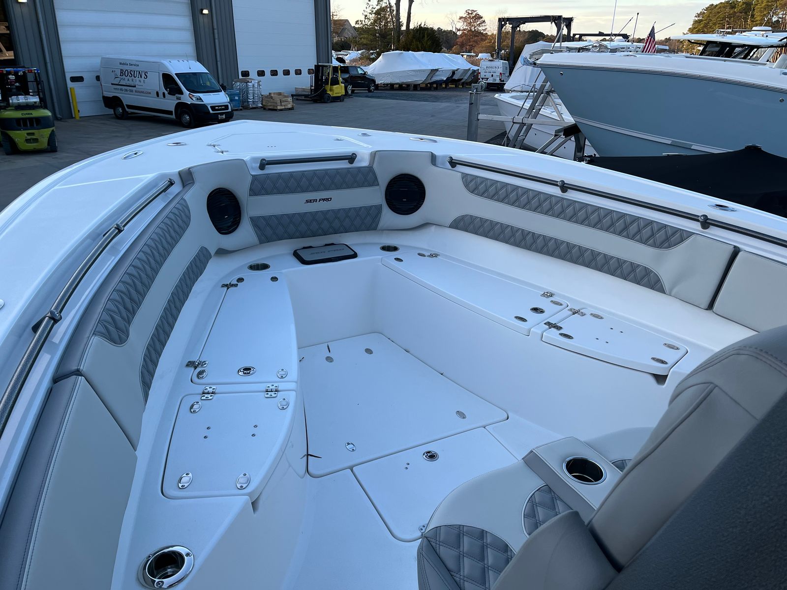 Owning the Sea Pro 322 DLX center console boat opens up a world of fun and excitement on the water. The spacious deck layout provides plenty of room for friends and family to spread out and enjoy the ride, whether you are fishing, sunbathing, or simply cruising along the coastline. The comfortable Platinum upholstery invites you to relax in style, while the robust construction ensures a safe and stable platform for all your adventures.The powerful twin Yamaha engines deliver the speed and agility needed for offshore excursions, while the advanced rigging and controls make piloting the boat a breeze. The combination of luxury finishes and practical features means you can entertain guests in comfort, host memorable gatherings at the sandbar, or embark on extended trips with confidence. With its blend of performance, style, and versatility, the Sea Pro 322 DLX is the ultimate choice for boaters who want it all.