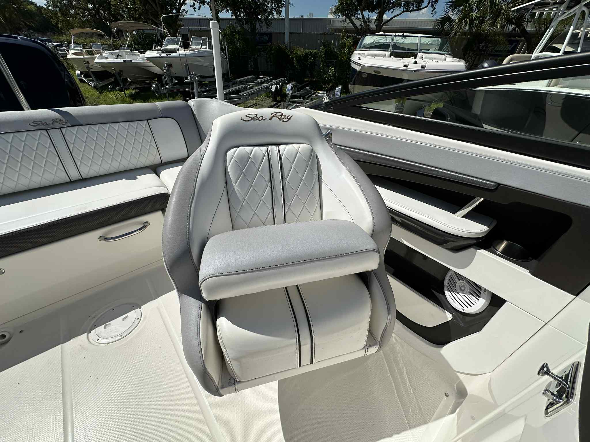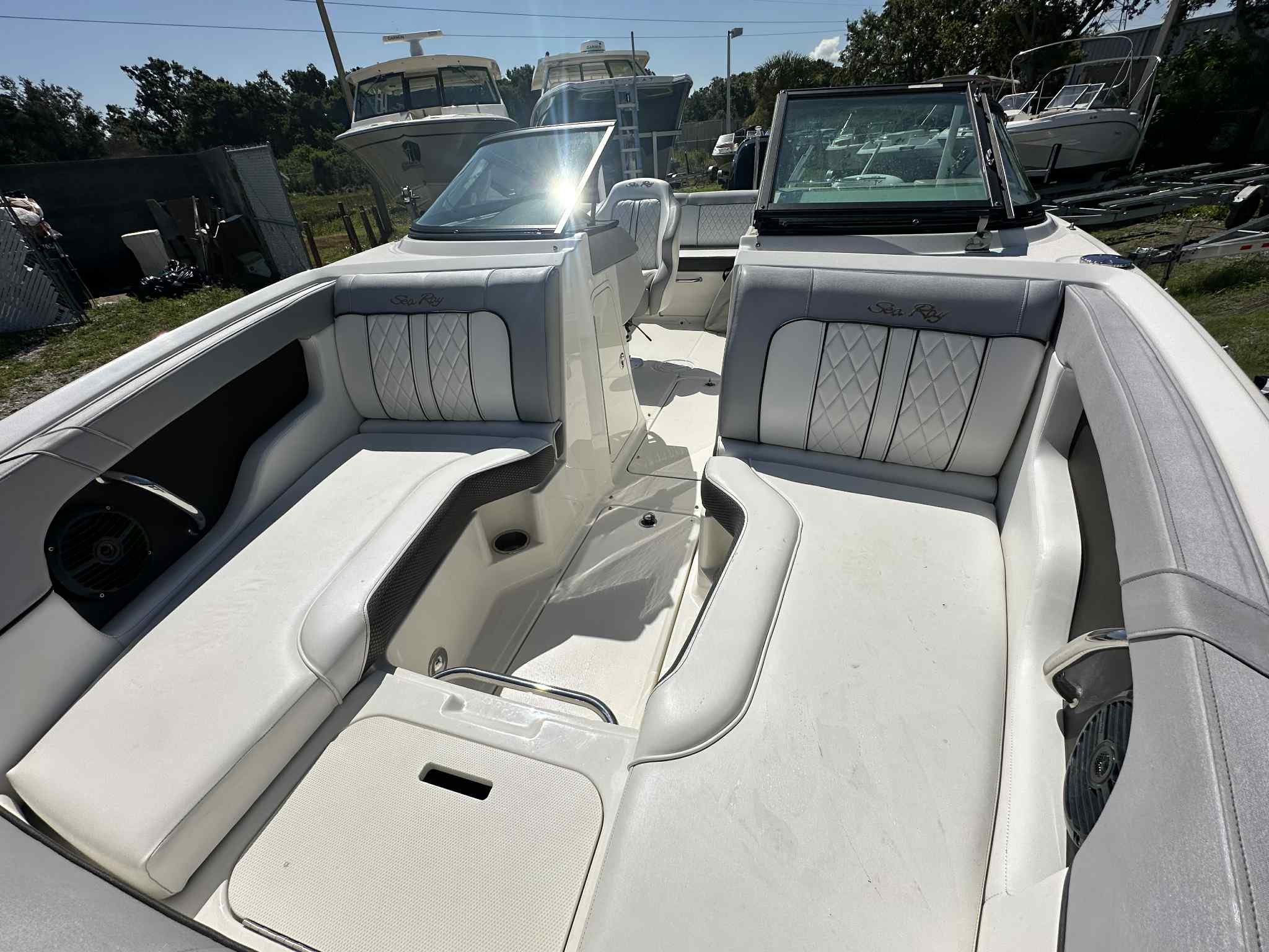 This Sea Ray boat for sale is as versatile as it is stylish, making it suitable for a wide range of activities. The generous storage compartments are perfect for stowing life jackets, water toys, and picnic supplies, keeping the deck clutter-free and ready for fun. The swim platform and easy boarding ladder make it simple to enjoy swimming, snorkeling, or just lounging by the water’s edge. When it’s time to dock, the SDX 220’s responsive handling and compact footprint make maneuvering in tight spaces a breeze.Fuel efficiency is another highlight of this bowrider, allowing you to spend more time on the water and less time at the pump. The thoughtful design also makes cleaning and maintenance straightforward, so you can focus on what matters most—enjoying your time on the water.