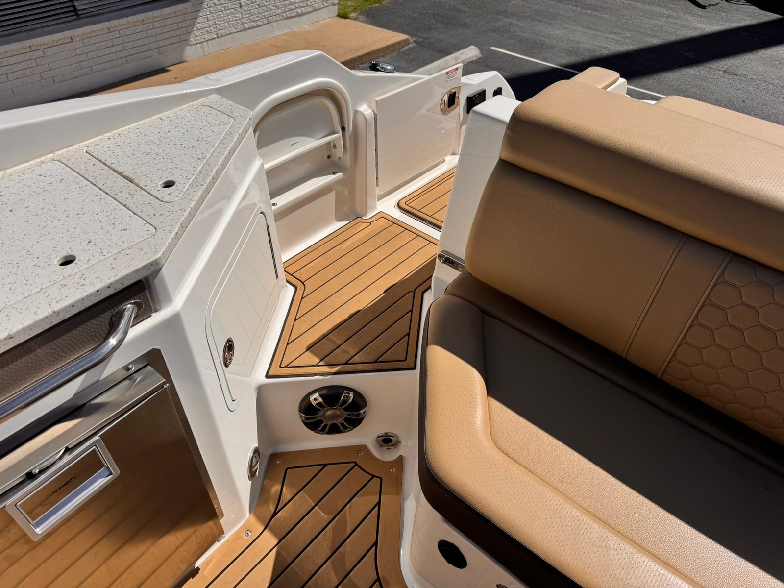The Sea Ray 290 SDX is designed with comfort and convenience in mind, featuring a spacious layout that accommodates family and friends with ease. The open Bowrider configuration allows for flexible seating arrangements, making it perfect for social gatherings, sunbathing, or simply enjoying the view. The 29-foot length provides ample deck space, ensuring everyone has room to relax and move about freely. The boat’s ergonomic design includes well-placed storage compartments, allowing you to stow away gear, refreshments, and personal items without cluttering the deck. The quality materials and finishes throughout the vessel reflect Sea Ray’s commitment to luxury and durability, ensuring a premium experience every time you step aboard.