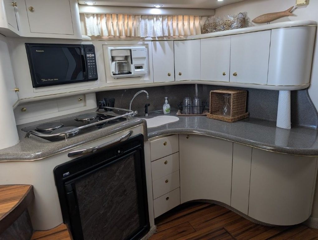 Powered by twin 7.4L MerCruisers with around 750 hours, this Sea Ray delivers dependable performance for cruising and entertaining. A Westerbeke 7.0 kW generator allows you to run systems while away from the dock, and dual air conditioning units keep the cabin comfortable during the warmer months. The cockpit offers plenty of seating for relaxing with friends and family, and the updated taller radar arch found on the later 1998 and 1999 models provides improved headroom in the cockpit.