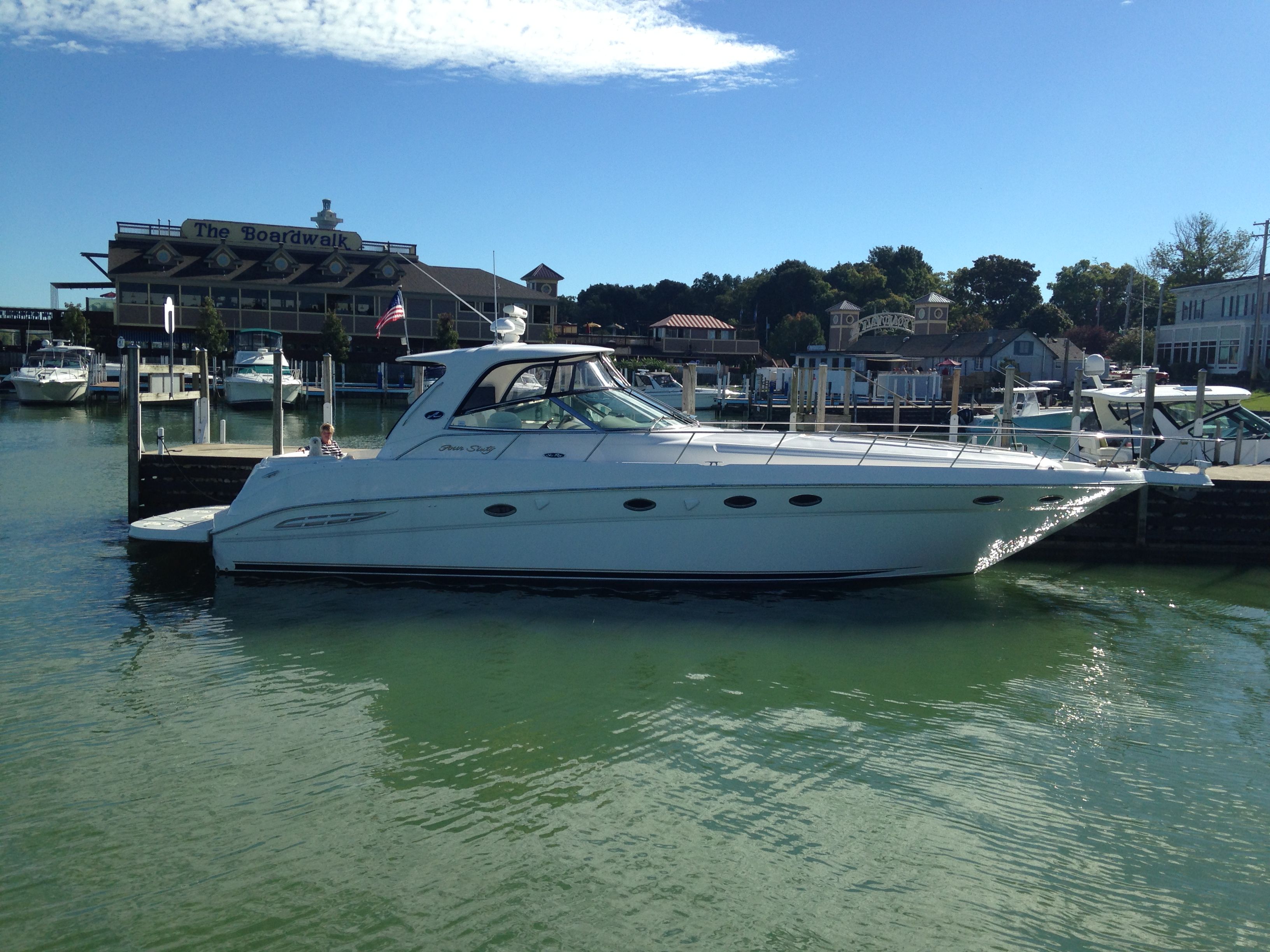 The Sea Ray 460 Sundancer shines in a variety of scenarios. It is the perfect companion for family outings, offering plenty of space for kids and adults to relax, play, and explore. The extended swim platform and foredeck sun pad make it ideal for sunbathing, swimming, and water sports. If you love entertaining, the spacious cockpit and comfortable seating create a welcoming environment for social gatherings, sunset cruises, or casual dinners on the water.For those who enjoy fishing, the boat’s open layout and easy access to the water make it a great choice for casting a line and reeling in the day’s catch. The hard top and helm AC ensure that everyone stays comfortable, even during long days on the water. Whether you are seeking adventure, relaxation, or a bit of both, this Sea Ray boat for sale is ready to deliver unforgettable experiences.