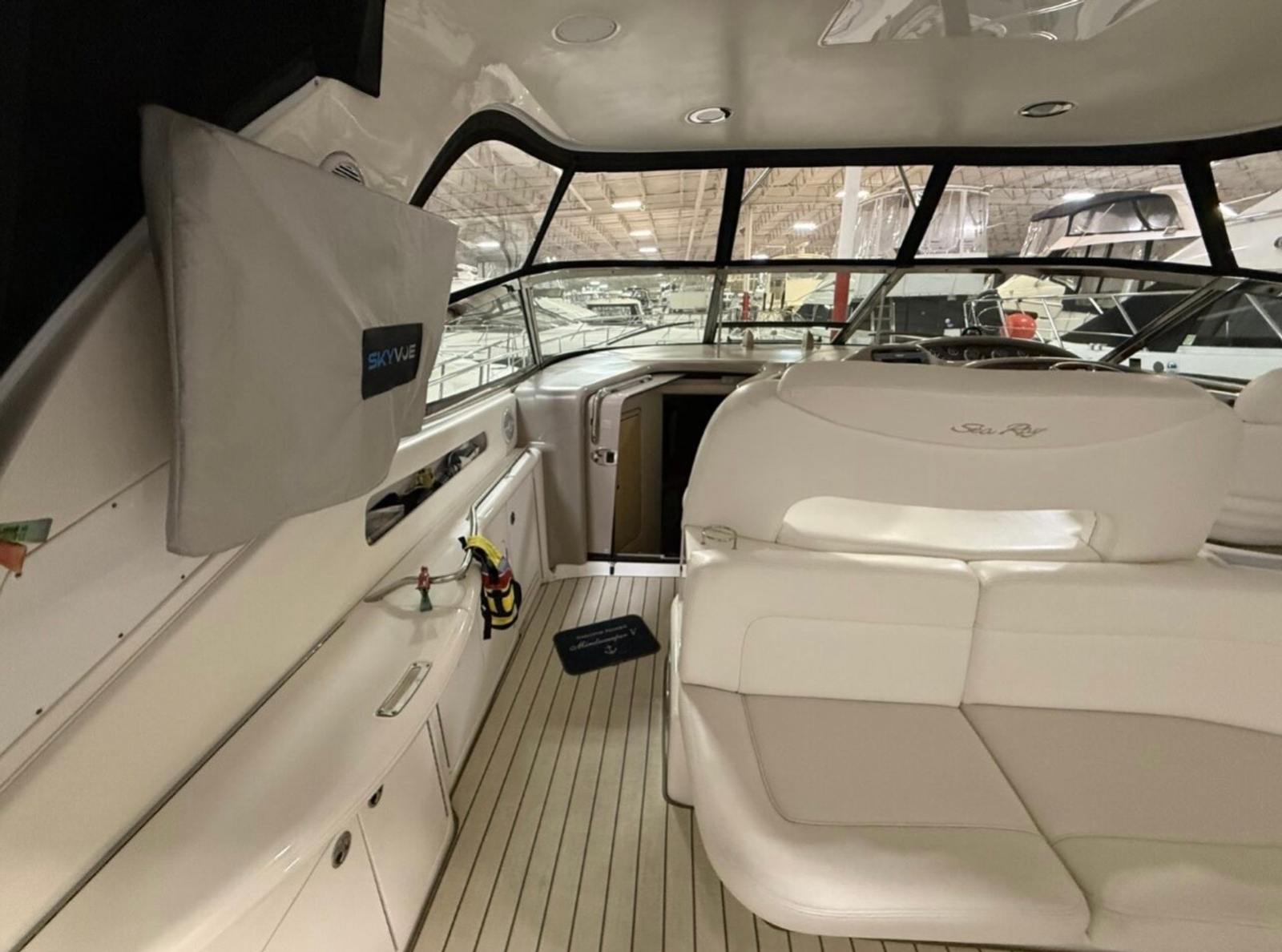 Under the hood, the Sea Ray 460 Sundancer is powered by twin engines, delivering a combined 900 horsepower. With only 825 engine hours, these engines promise reliable performance and plenty of life left for future adventures. The robust powertrain ensures smooth acceleration, responsive handling, and the ability to cruise effortlessly across the water. Whether you are navigating open waters or exploring hidden coves, this bowrider boat for sale offers the kind of exhilarating performance that Sea Ray is known for.