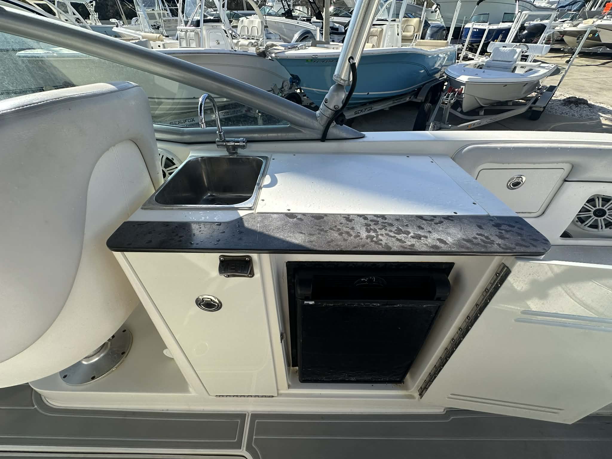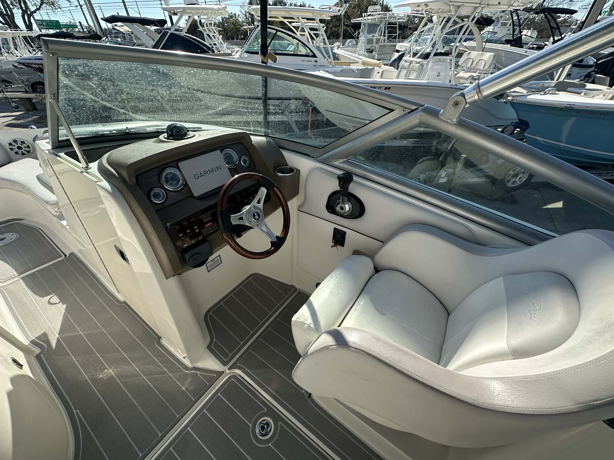 The 2012 Sea Ray Sundeck 300 Bowrider boasts a generous length of 29.5 feet, offering ample space for relaxation and recreation. With its sleek lines and modern design, this used Bowrider boat is sure to turn heads at the marina or on open water. The Sundeck 300’s layout is thoughtfully crafted to maximize comfort and functionality, making it an ideal choice for boaters who value both aesthetics and practicality. Its spacious deck provides plenty of room for guests, while the open Bowrider configuration ensures easy access to the water and unobstructed views.