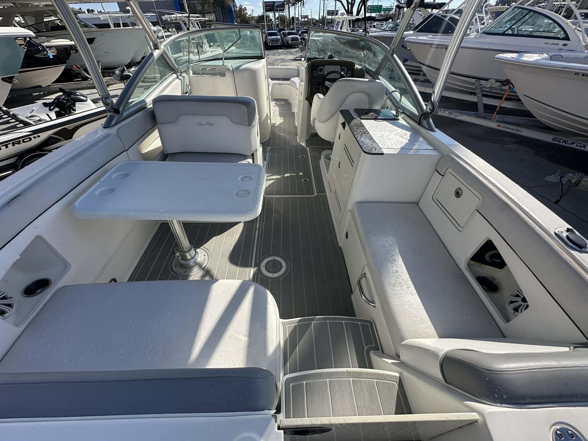 The Sea Ray Sundeck 300 Bowrider is not only about fun—it’s also designed with practicality in mind. Its ample storage options make it easy to keep the deck clutter-free, allowing you to bring along everything you need for a day on the water. The boat’s length and layout make docking and maneuvering straightforward, even for those new to boating. With its efficient engine and low hours, this used Bowrider boat offers reliable performance and fuel economy, helping you make the most of every outing.The Sundeck 300’s versatility means it can adapt to a variety of uses. Whether you’re planning a relaxing day with family, a lively gathering with friends, or a solo adventure, this Sea Ray boat for sale is up to the task. Its spacious design and comfortable seating make it ideal for extended trips, while the Bowrider layout ensures easy access to the water for swimming or water sports.