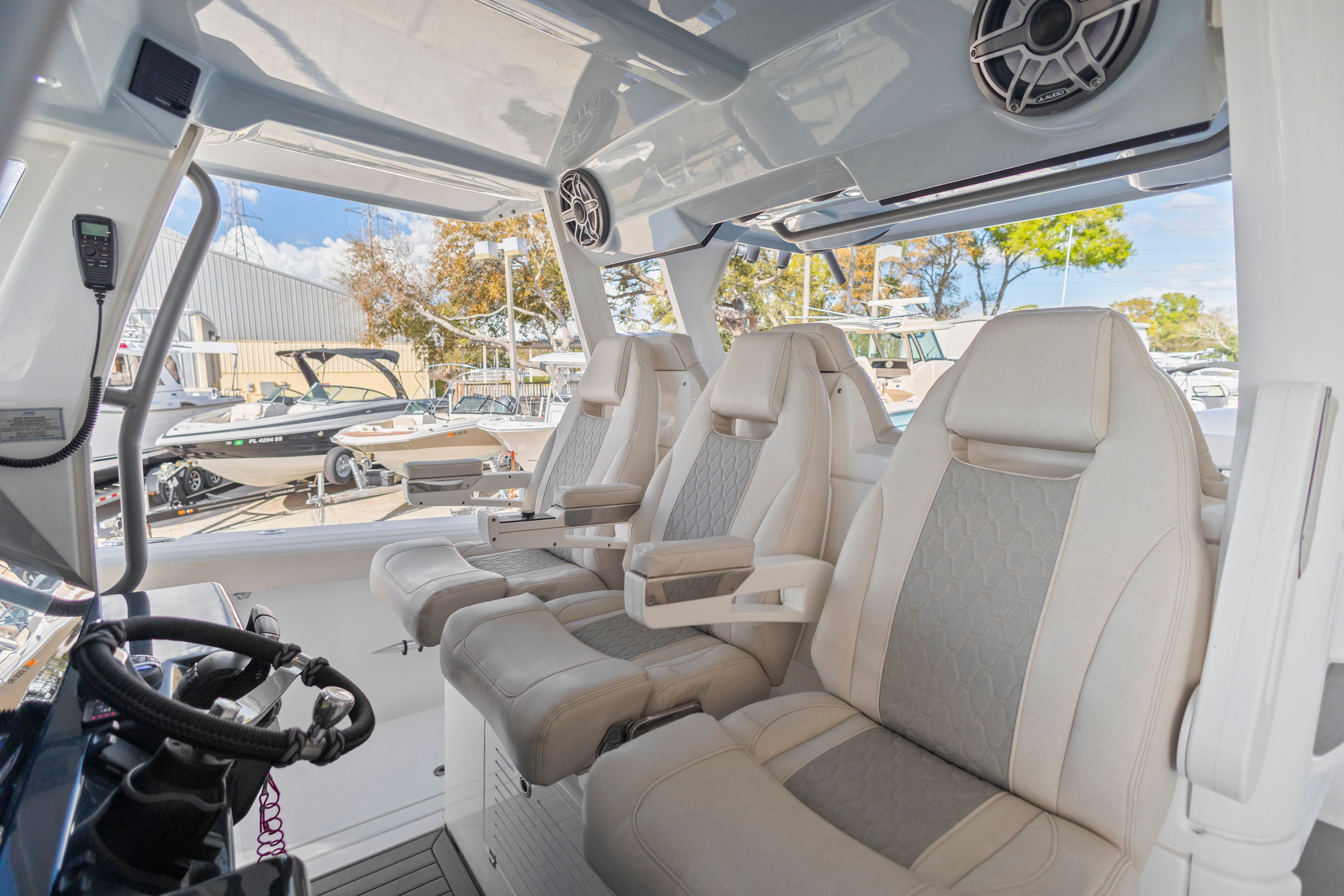 Owning the Solace 41 CS means embracing a lifestyle of fun, relaxation, and adventure. The spacious deck layout is perfect for social gatherings, allowing guests to move freely and enjoy panoramic views. The advanced stabilizer system and generous shade options ensure comfort during long days on the water, while the powerful triple engines provide the speed and agility needed for thrilling offshore excursions.The premium electronics package keeps you connected and informed, whether you’re navigating unfamiliar waters or tracking fish beneath the surface. The custom finishes and painted hull sides make a bold statement, ensuring your Solace boat for sale stands out wherever you go.