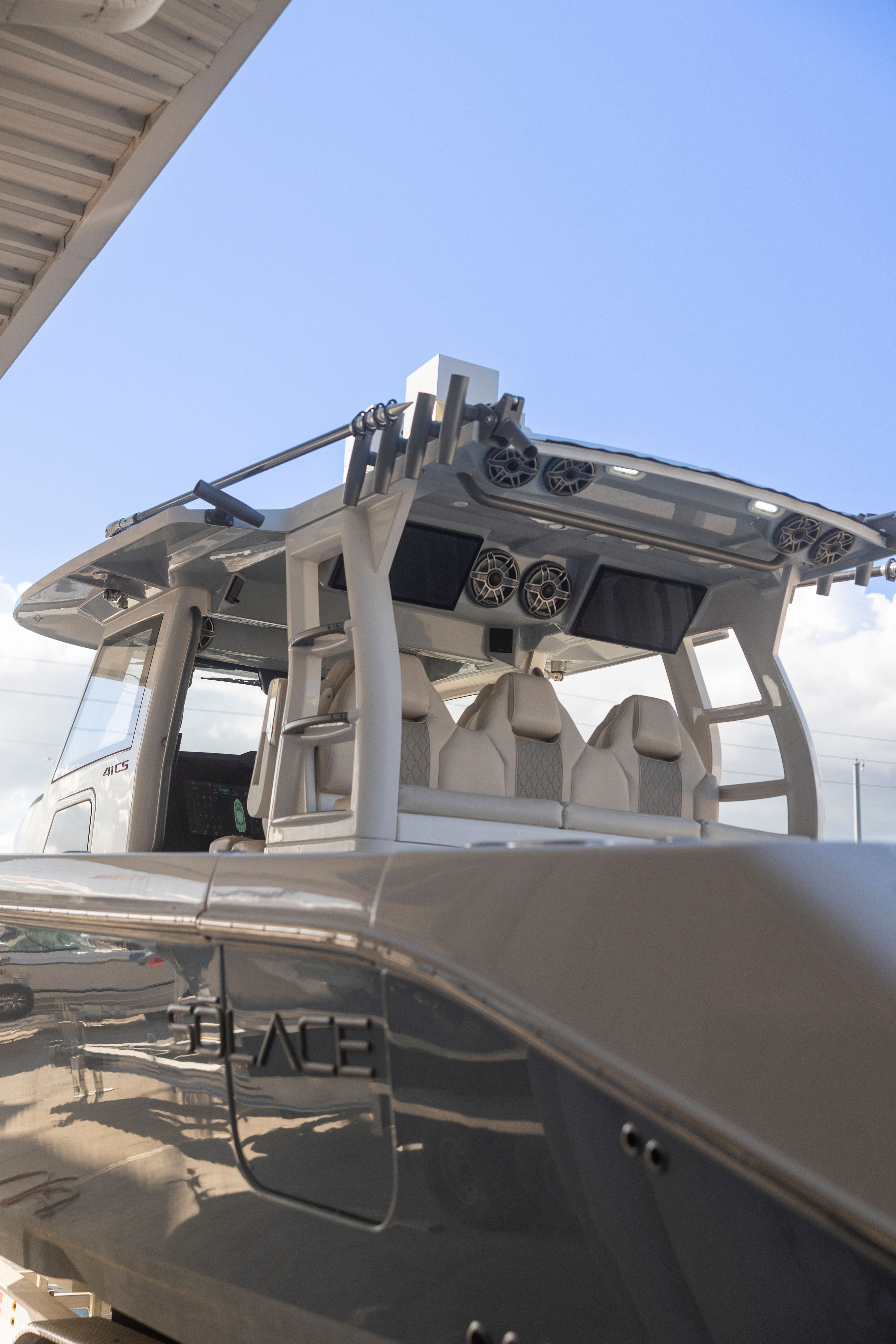 The Solace 41 CS is packed with innovative features and high-end specifications that set it apart from other Center Console boats. The Quick X7 MC2 DC stabilizer enhances onboard comfort by minimizing roll, ensuring a smooth ride even in choppy conditions. For fishing enthusiasts, the Gem Deluxe Outrigger with 22’ Carbon Fiber Poles offers professional-grade equipment for trolling and offshore angling.Aesthetically, the Hardtop Underside Painted Option and AWLGRIP Painted Hull Sides (available in any non-metallic color) provide a custom, eye-catching look that reflects your personal style. The SŌLACE exclusive Transom Power Tilt Boat Shade, patent pending, delivers shade and comfort at the touch of a button, transforming the aft deck into a luxurious retreat.The electronics suite is second to none, featuring the Standard Package with dual Garmin 8622 Multifunction Displays, dual Garmin VHF radios with remote mount microphones, a Garmin Fantom 24” 4KW Radar Dome, Airmar 500 CHIRP Transducer with Side Vu/Clear Vu, Garmin GSD 25 Sounder Module, dual 21.5" LED repeater screens, and a Garmin Grid Remote MFD Controller. These advanced systems provide comprehensive navigation, communication, and fish-finding capabilities, making every trip safer and more enjoyable.Additional power and convenience come from the Mase 7.1 Diesel Genset and the upgraded 110V power supply, featuring a Mase 8.6 Variable RPM Diesel Genset with a 5000W inverter/charger. The custom oversized hardtop (single station) offers protection from the elements and adds to the boat’s commanding presence.