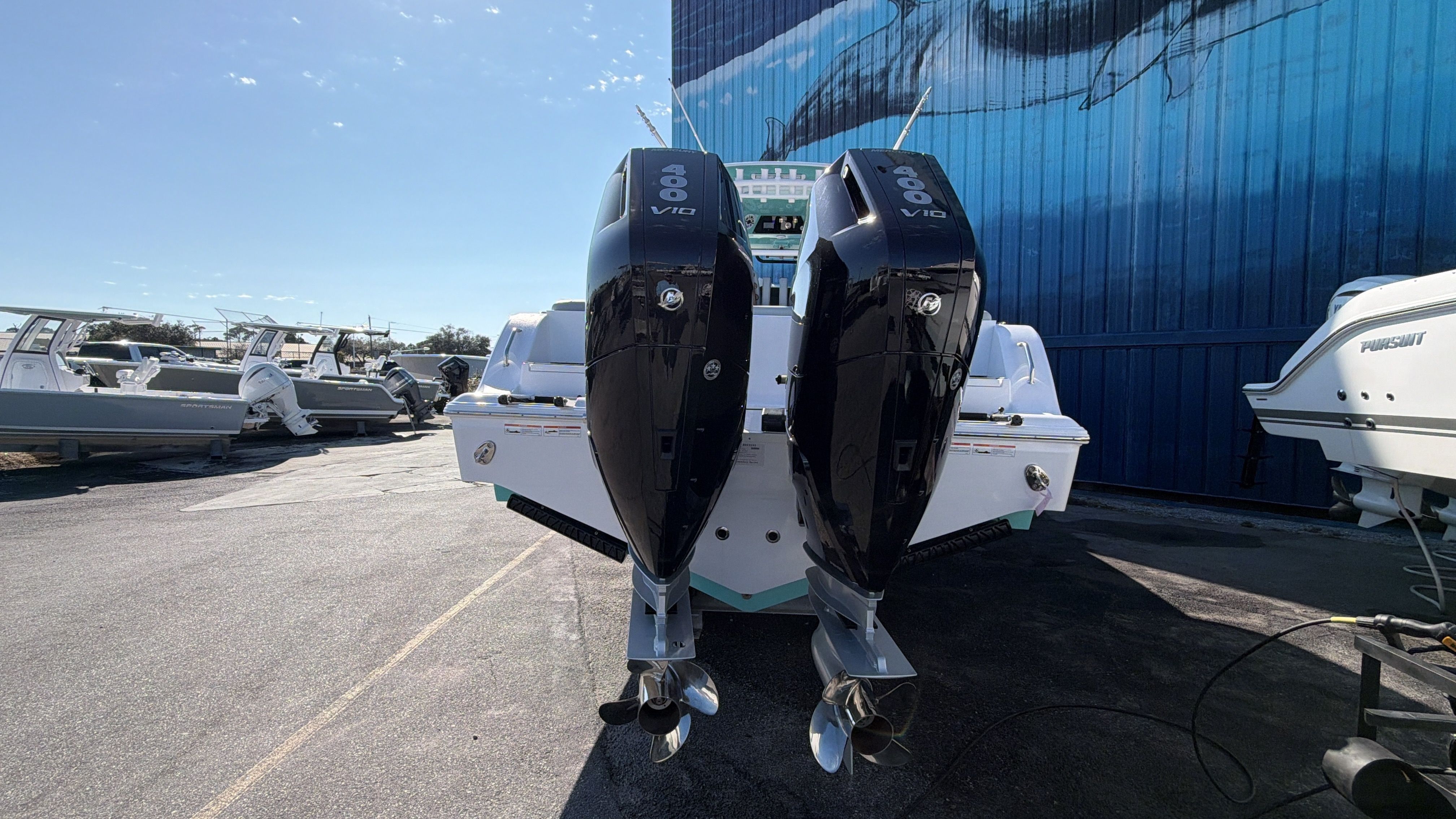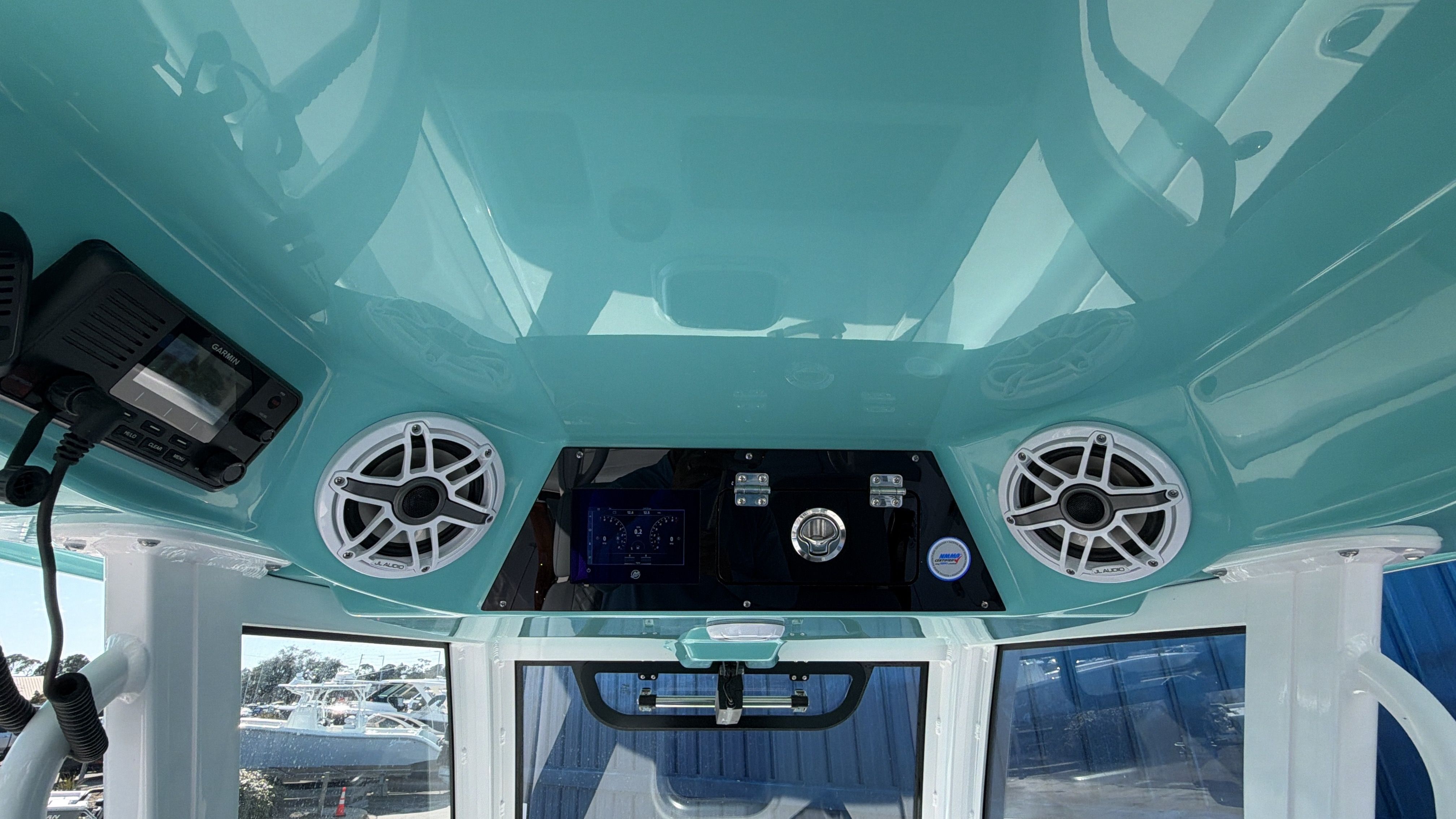 The Sportsman Heritage 321 is packed with premium features that elevate your boating experience. The twin Mercury 400 V10 engines in sleek black not only offer impressive power but also add a bold visual statement. The hull’s Snow White sides and Sea Glass Green bottom and HardTop underside create a unique and eye-catching color combination, while the Smokey Gray upholstery provides comfort and durability for long days on the water. White powder coating throughout the boat adds a clean, polished finish.For added convenience and versatility, the Heritage 321 includes two Bow Ladder Receivers, making boarding and disembarking a breeze whether you’re at the dock or anchored in a secluded cove. The Edson 13” stainless steel Comfort Grip Steering Wheel with PowerKnob ensures precise handling and effortless control, even in challenging conditions. Navigational technology is top-notch, featuring the Garmin GMR™ 434 xHD3 Open Array radar for superior situational awareness and the Garmin GXM™ 54 SiriusXM® Weather Antenna to keep you informed of changing weather patterns. These advanced electronics make every journey safer and more enjoyable, whether you’re exploring new waters or heading out for a day of fishing.