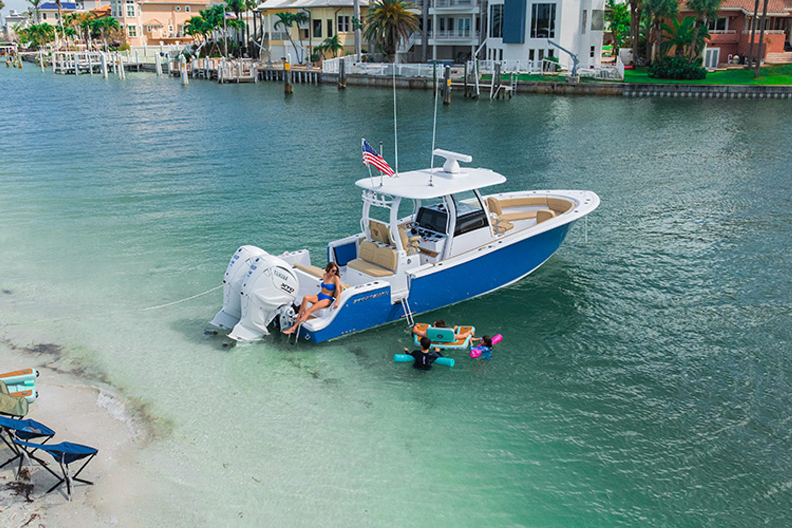 At the heart of the Sportsman Heritage 321 lies a powerhouse of performance. Equipped with twin Yamaha XF450 engines, this Center Console is capable of delivering a combined 900 horsepower, offering exhilarating speed and responsive handling. The Yamaha Helm Master EX system provides advanced control, making navigation effortless and docking a breeze. Whether you are cruising to your favorite fishing spot or embarking on a high-speed offshore run, the Heritage 321’s performance is both thrilling and reliable, giving you the confidence to tackle any waterway.