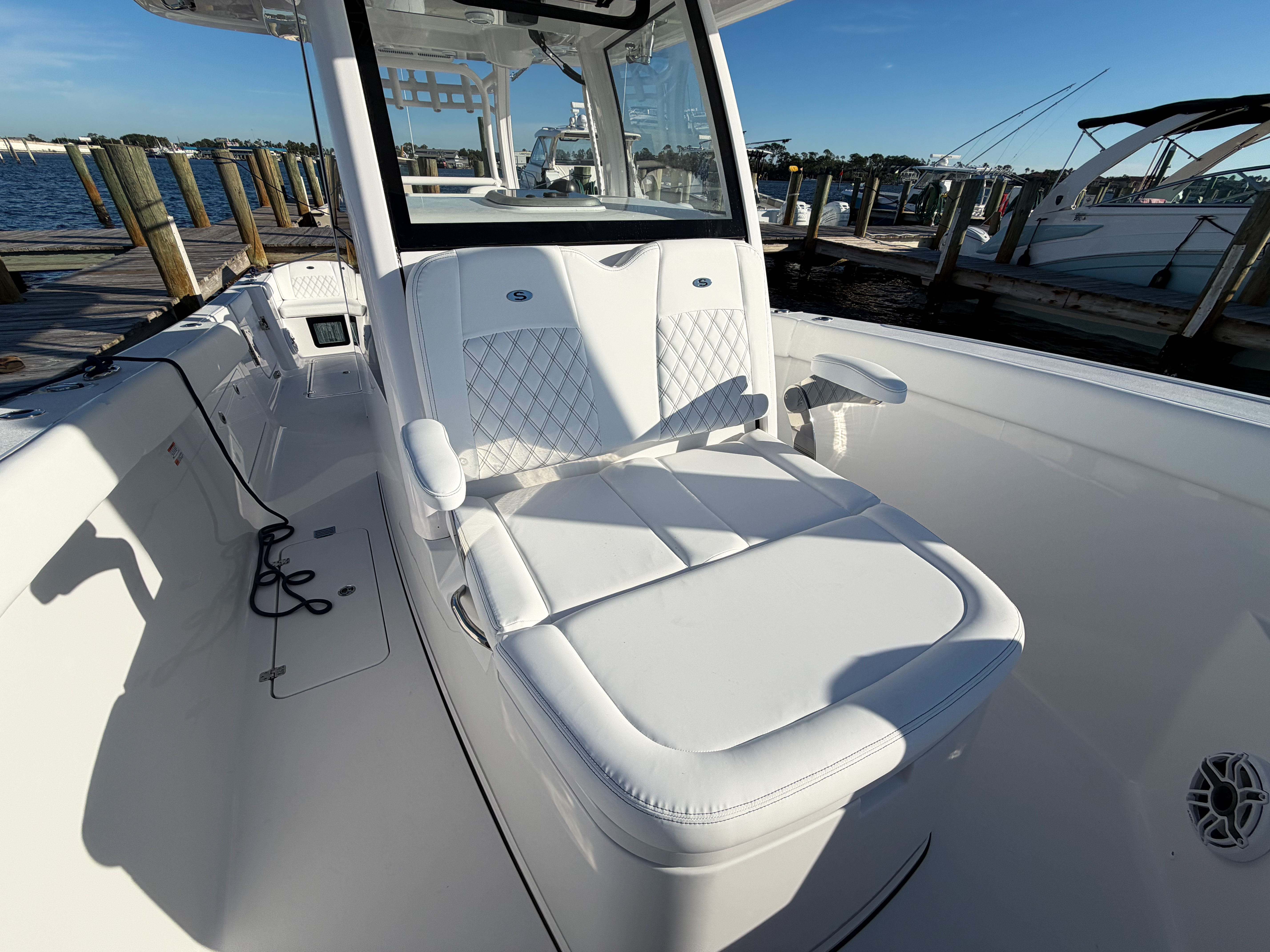 Powering the Sportsman Heritage 321 are twin Mercury 400 V10 engines, finished in elegant white. With a combined 800 horsepower, this Center Console boat delivers exhilarating speed and smooth handling, ensuring you reach your destination quickly and confidently. The advanced engine setup provides reliable performance for offshore excursions, coastal cruising, or spirited runs across the bay. Whether you’re chasing the horizon or enjoying a leisurely cruise, the Heritage 321’s robust powertrain guarantees a thrilling experience every time you take the helm.
