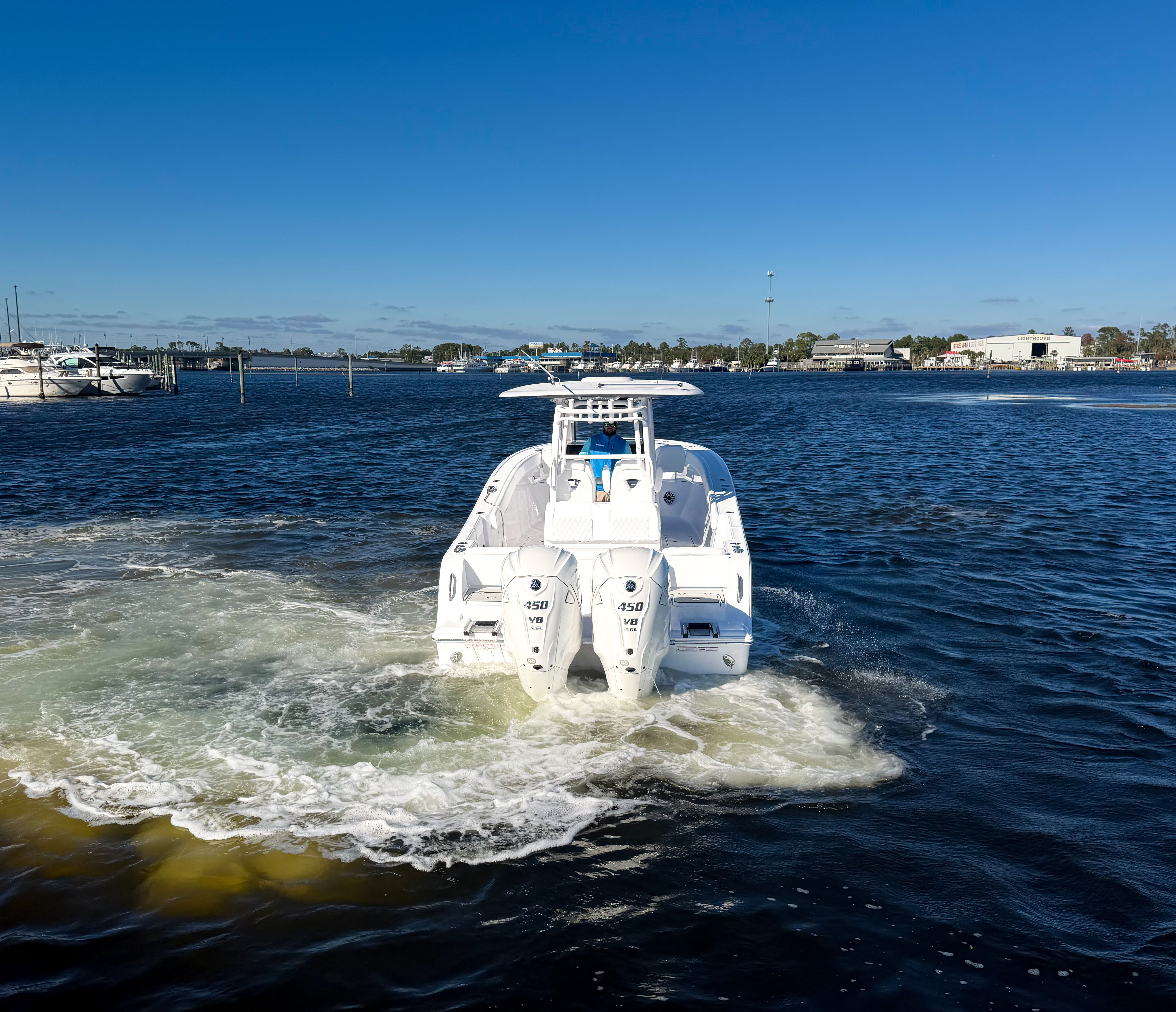 Power and precision are at the heart of the Sportsman Heritage 321. Equipped with twin Yamaha XF450 engines in a crisp white finish, this Center Console boat boasts a total of 900 horsepower. These engines are renowned for their reliability, smooth operation, and impressive fuel efficiency, ensuring you have the muscle to tackle rough seas or reach your favorite destinations quickly. The advanced engineering of the Yamaha XF450s delivers responsive acceleration and agile handling, making every outing both thrilling and safe. Whether you are chasing the horizon or maneuvering through tight marinas, the Heritage 321 offers a driving experience that is both exhilarating and confidence-inspiring.