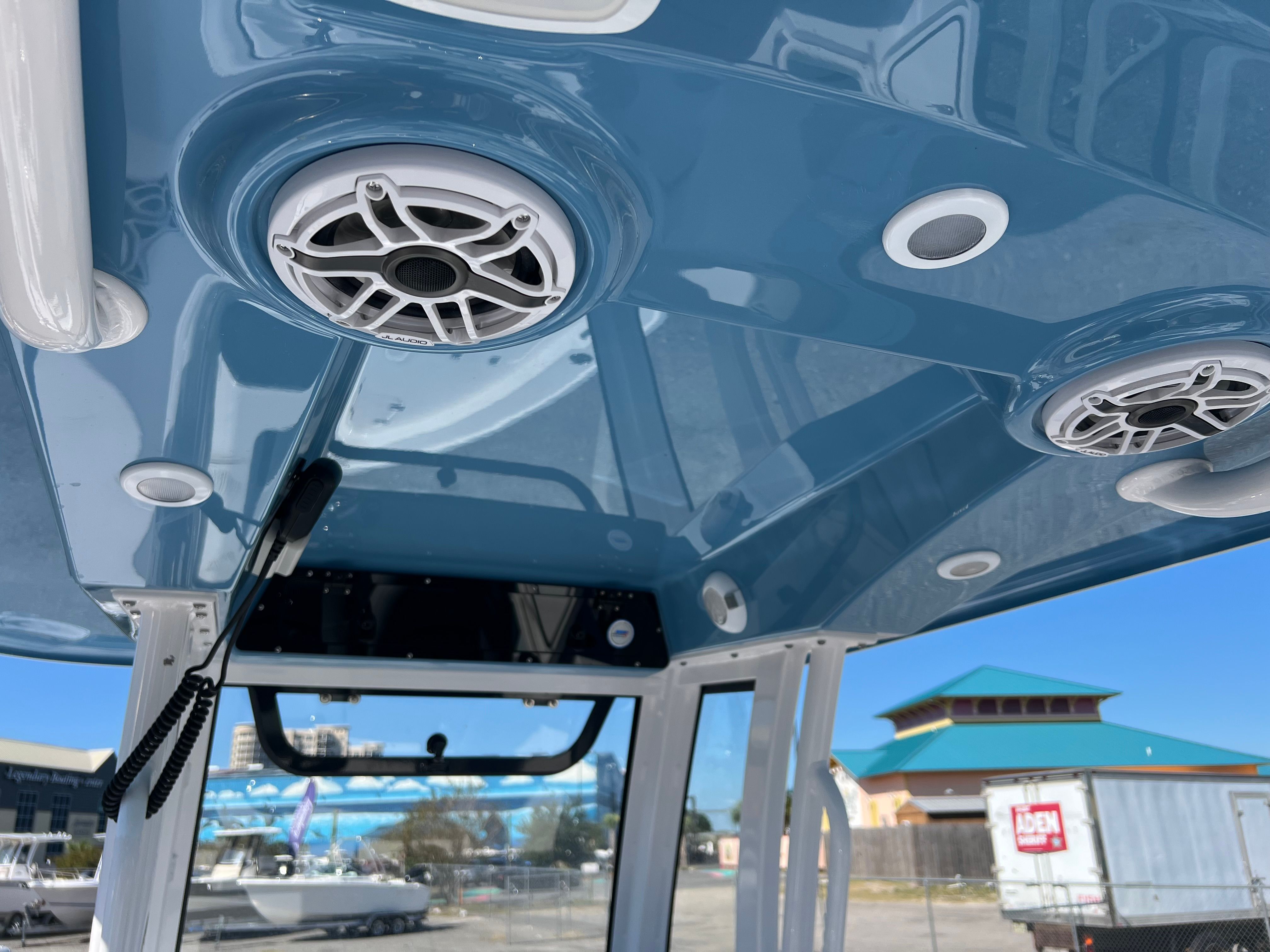 The 2026 Sportsman Masters 227 is packed with premium features that elevate your boating experience. The Edson 13” stainless steel Comfort Grip steering wheel with PowerKnob offers precise control and effortless maneuverability, making navigation a breeze even in challenging conditions. For anglers, the inclusion of two gunwale rod holders provides convenient storage and quick access to your fishing gear.One of the standout features is the Garmin Force Kraken Trolling Motor with a 75-inch shaft in white, offering advanced technology for precise boat positioning and quiet operation. This trolling motor is perfect for stealthy approaches in shallow waters, giving you a competitive edge during fishing trips. The Garmin Fusion/JL Audio Ultra Premium DSP Upgrade transforms your boat into an entertainment hub, delivering crystal-clear sound quality for your favorite tunes while you cruise or relax at anchor.The white powder coating on the hardware not only enhances durability but also adds a sleek, modern touch to the boat’s overall appearance. The thoughtful combination of colors and materials, from the Harbor Haze Blue hull bottom to the Smokey Gray upholstery, creates a cohesive and inviting atmosphere on board.