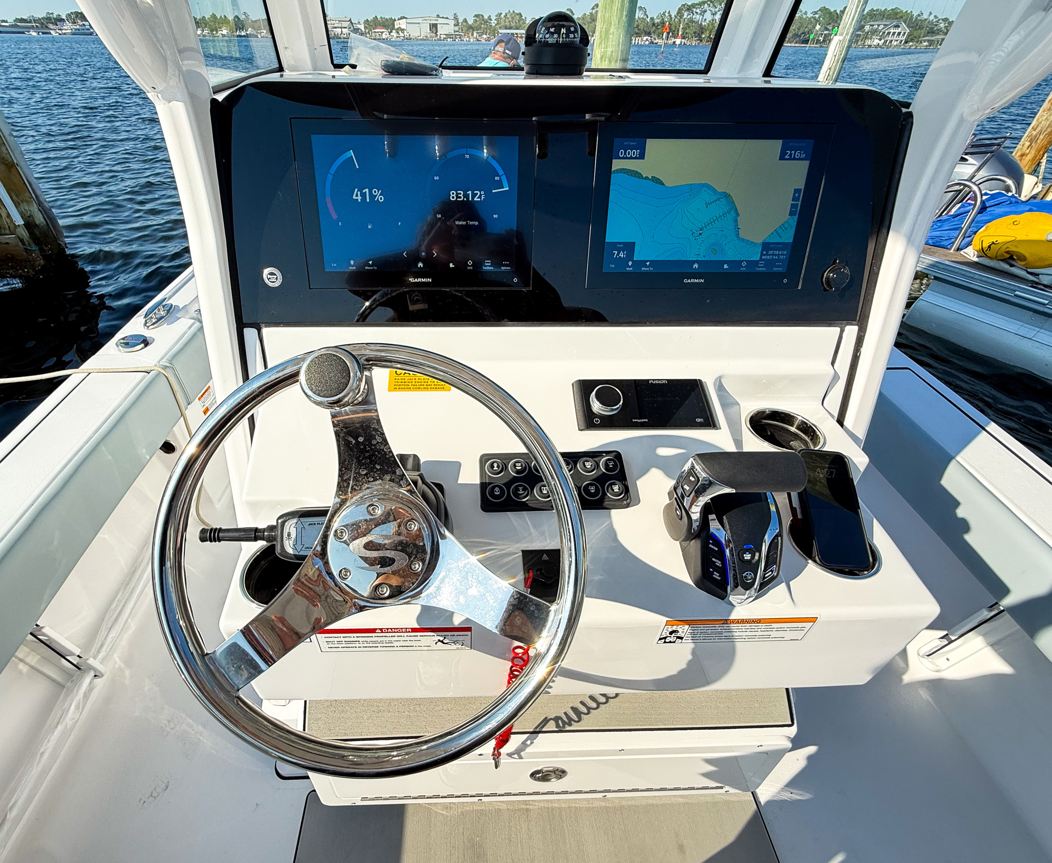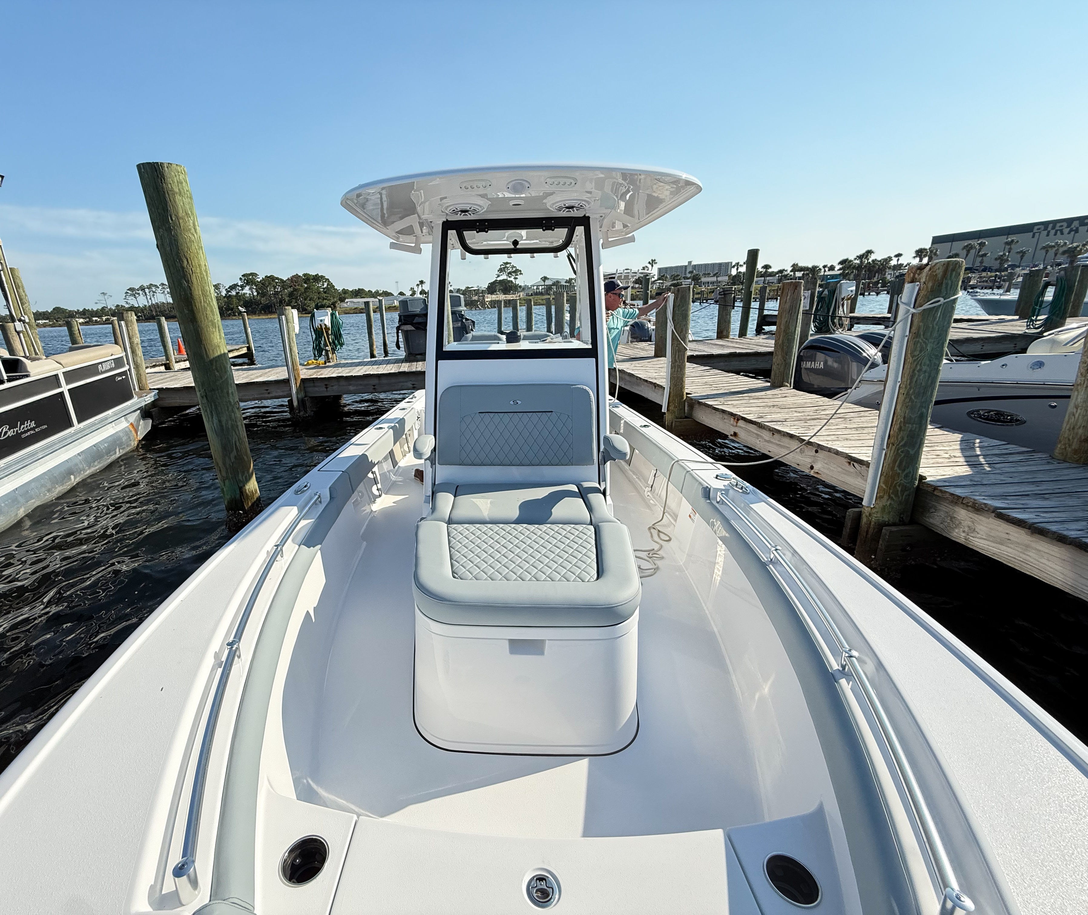 This bay boat is designed with practicality in mind, offering features that make ownership both enjoyable and hassle-free. The under leaning post tackle storage keeps your fishing equipment secure and organized, streamlining your setup for spontaneous trips. The advanced battery charger ensures your electronics and accessories are always powered, reducing downtime and increasing reliability. The efficient single-engine configuration simplifies maintenance and helps optimize fuel usage, making this bay boat boat for sale a cost-effective choice for frequent outings.Docking and maneuvering are effortless thanks to the boat’s responsive handling and well-balanced design. The slide-out track for the YETI® cooler adds convenience for storing refreshments, while the durable powder coating and premium upholstery ensure your investment stays looking great season after season. Whether you’re storing the boat at home or at a marina, its manageable size and thoughtful features make it easy to care for and enjoy.
