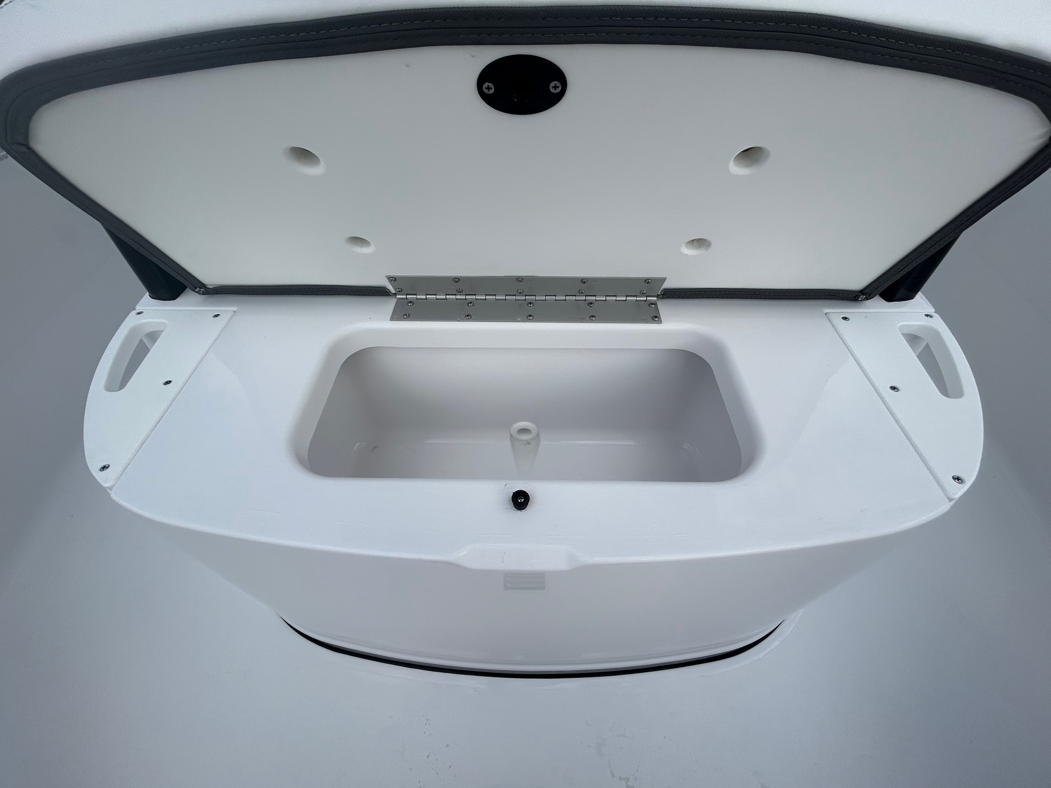 The Sportsman Open 212 is packed with features designed to enhance your time on the water. The removable bow sundeck/table with cushion transforms the bow area into a versatile space for sunbathing, dining, or socializing. The ProMariner ProTournament Elite 3 battery charger (2-bank) ensures your boat’s electrical systems are always ready for action, while the under leaning post tackle storage keeps your gear organized and accessible.The Shadow Gray hull color and matching hard top underside create a sophisticated and modern look, complemented by black powder coating for a sleek, cohesive finish. The hard top is equipped with LED lighting, providing excellent visibility and ambiance for evening cruises or early morning fishing trips. The console features a comfortable footrest and ample storage, making it easy to keep your essentials close at hand and your deck clutter-free.