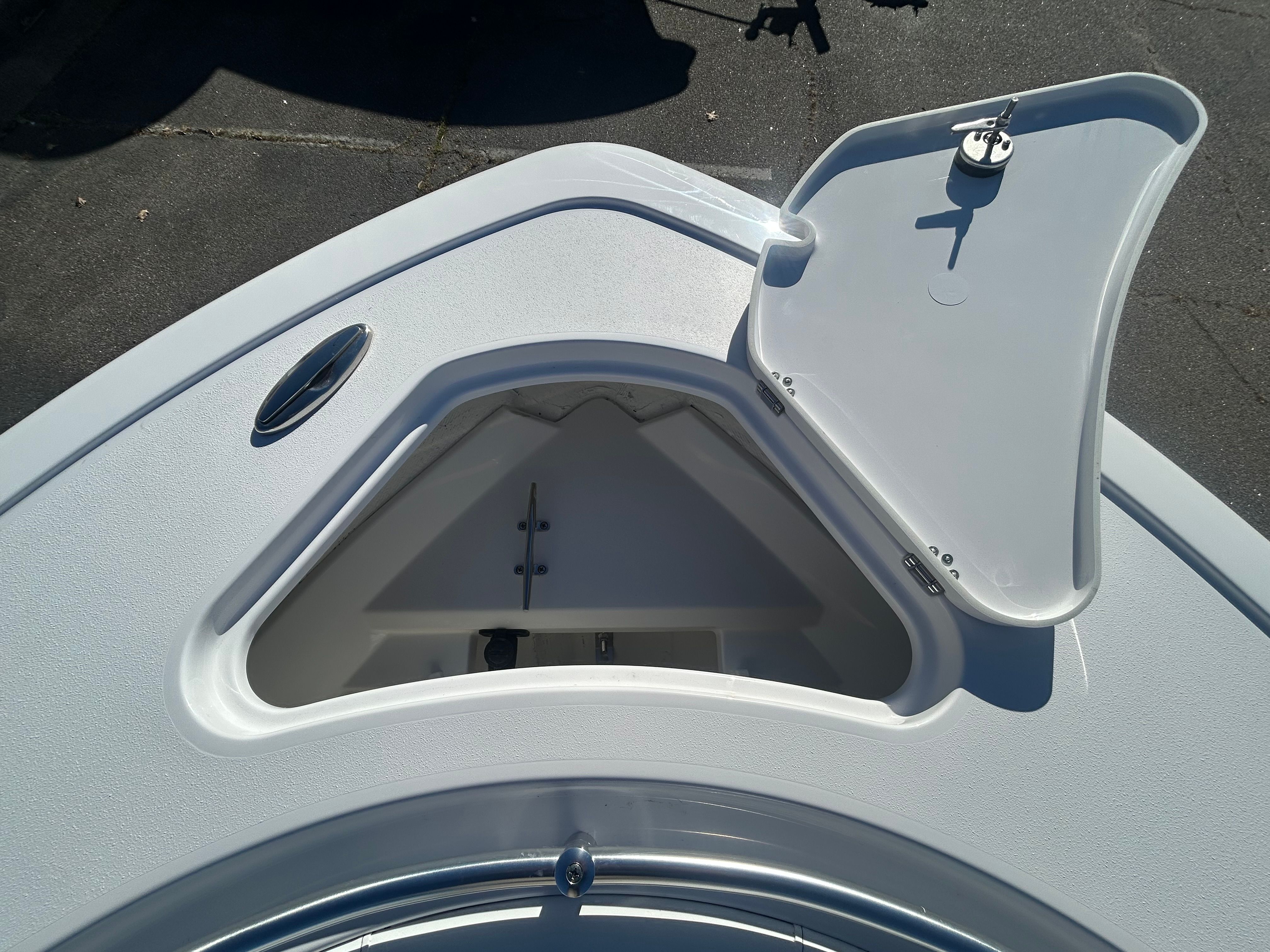 The 2026 Sportsman Open 232 is loaded with premium features that enhance both comfort and functionality. The removable Bow Sundeck/Table with Cushion offers a versatile space for sunbathing, relaxing, or sharing a meal with friends and family. The Edson 13” Stainless Steel Comfort Grip Steering Wheel with PowerKnob provides precise control and a luxurious feel at the helm, making navigation effortless.For anglers, the Trolling Motor Plug, Harness, and Adapter add convenience and flexibility, allowing for easy integration of your preferred trolling motor setup. The console is thoughtfully designed with a footrest and ample storage, keeping your essentials organized and within reach. Overhead, the Hard Top with LED Lighting not only provides shade and protection from the elements but also creates a vibrant atmosphere for evening cruises. The Hardtop Underside in Explorer Blue and the White Powder Coating add to the boat’s cohesive and stylish appearance.The Serenity Sileather Icecap White Upholstery offers a plush, durable, and easy-to-clean seating surface, ensuring comfort for all passengers. Every detail of the Open 232 is crafted to deliver a premium boating experience, from the hull’s striking color scheme to the ergonomic layout of the console and seating areas.