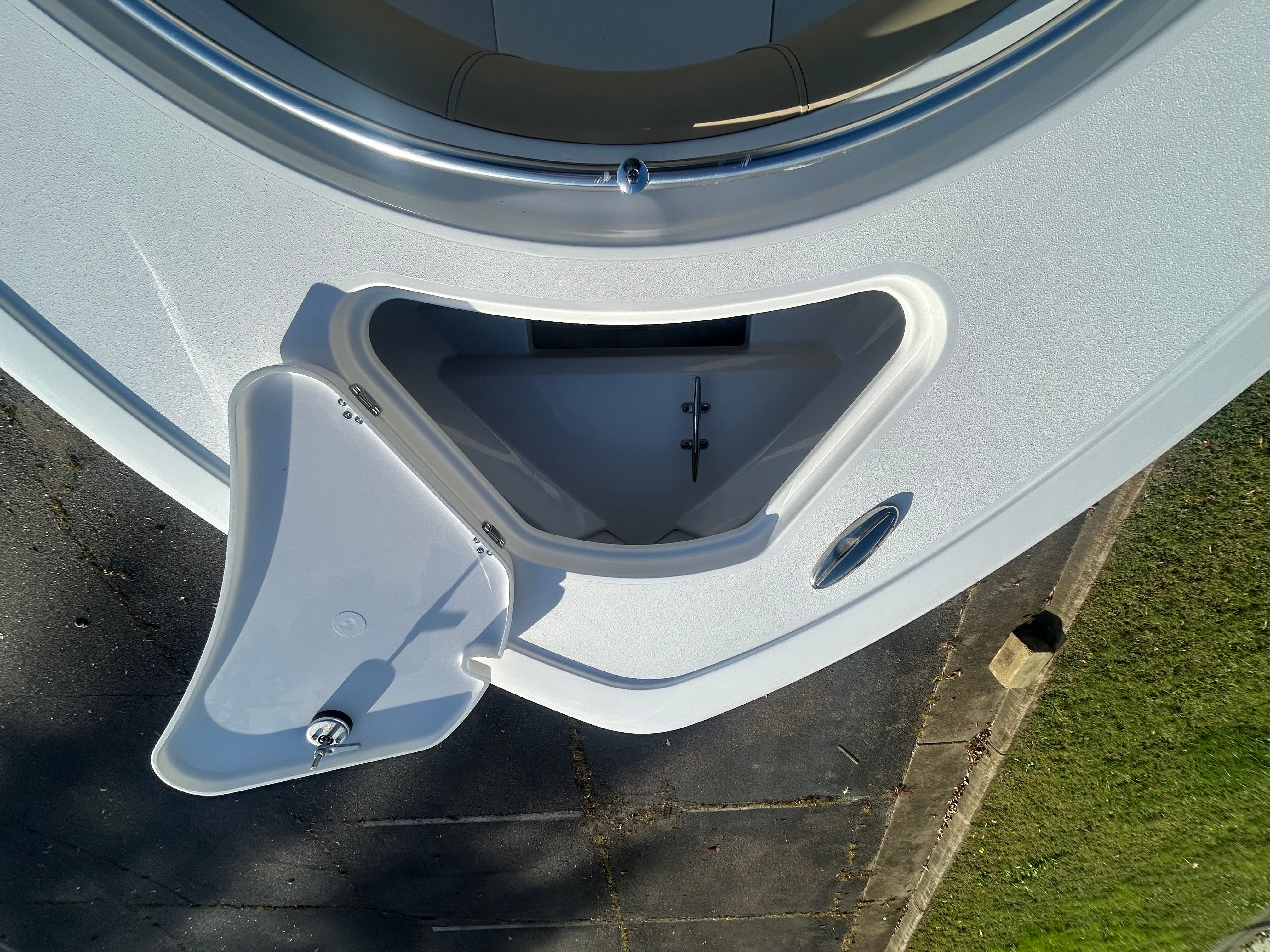 The Sportsman Open 232 is packed with premium features designed to enhance your time on the water. The console is thoughtfully equipped with a footrest and ample storage, providing both comfort and practicality for long days at sea. The hard top, complete with integrated LED lighting, offers shade and protection from the elements while illuminating the deck for evening adventures. The white powder coating and hardtop underside color create a cohesive and stylish look throughout the boat.Step aboard and you will immediately notice the luxurious Serenity Sileather Coastal Beige upholstery, offering both durability and a soft, inviting feel. The bow sundeck/table with a removable cushion transforms the front of the boat into a versatile space for sunbathing, socializing, or enjoying a meal with friends and family. The premium dual chair leaning post with flip-up bolsters provides ergonomic support and flexibility, allowing you to switch between standing and seated positions with ease.Navigation is a breeze with the advanced Garmin 12-inch GPS screen, featuring built-in Wi-Fi for seamless connectivity and access to the latest charts and updates. This state-of-the-art system ensures you always know your position and can plan your routes with confidence, whether you are fishing offshore or exploring new waterways.